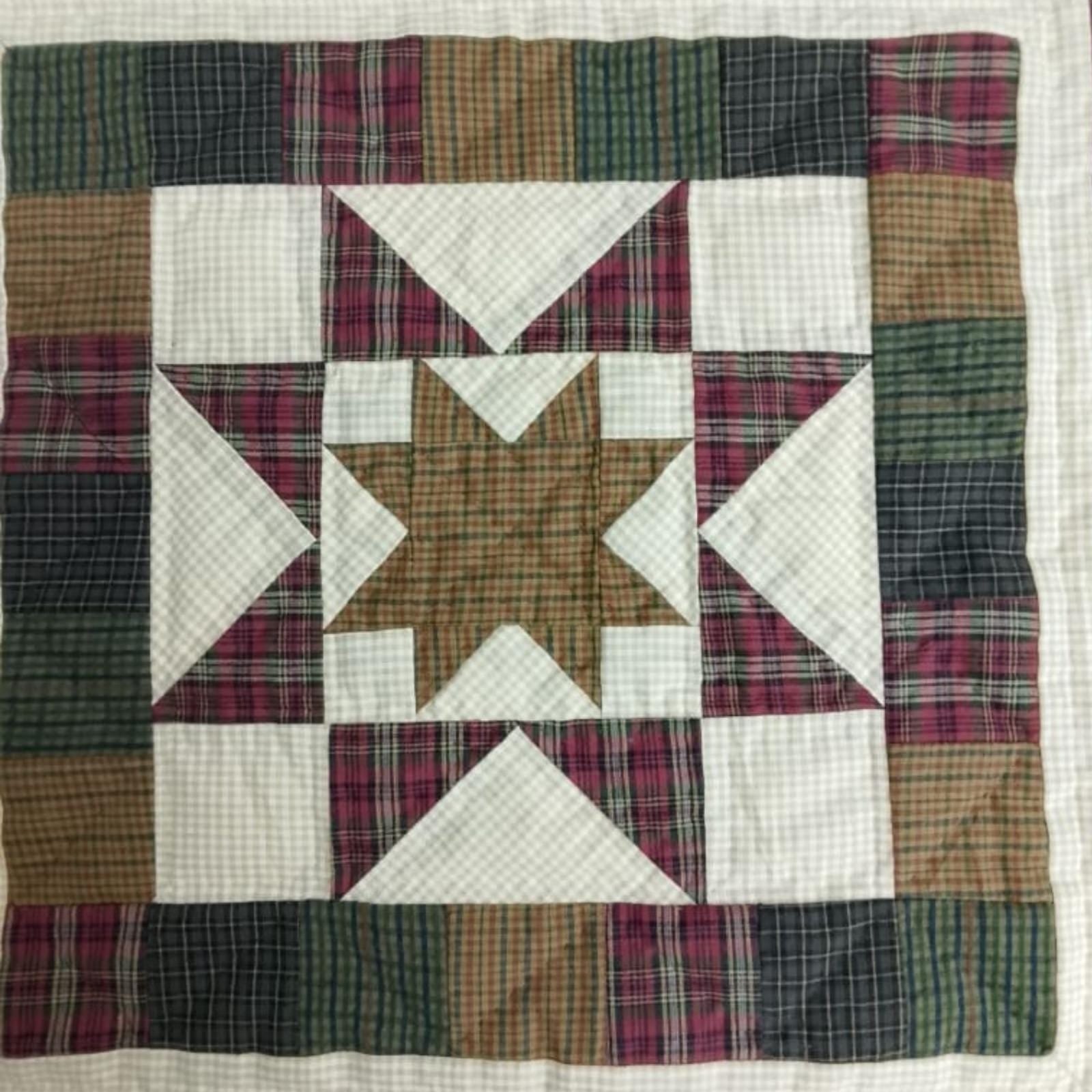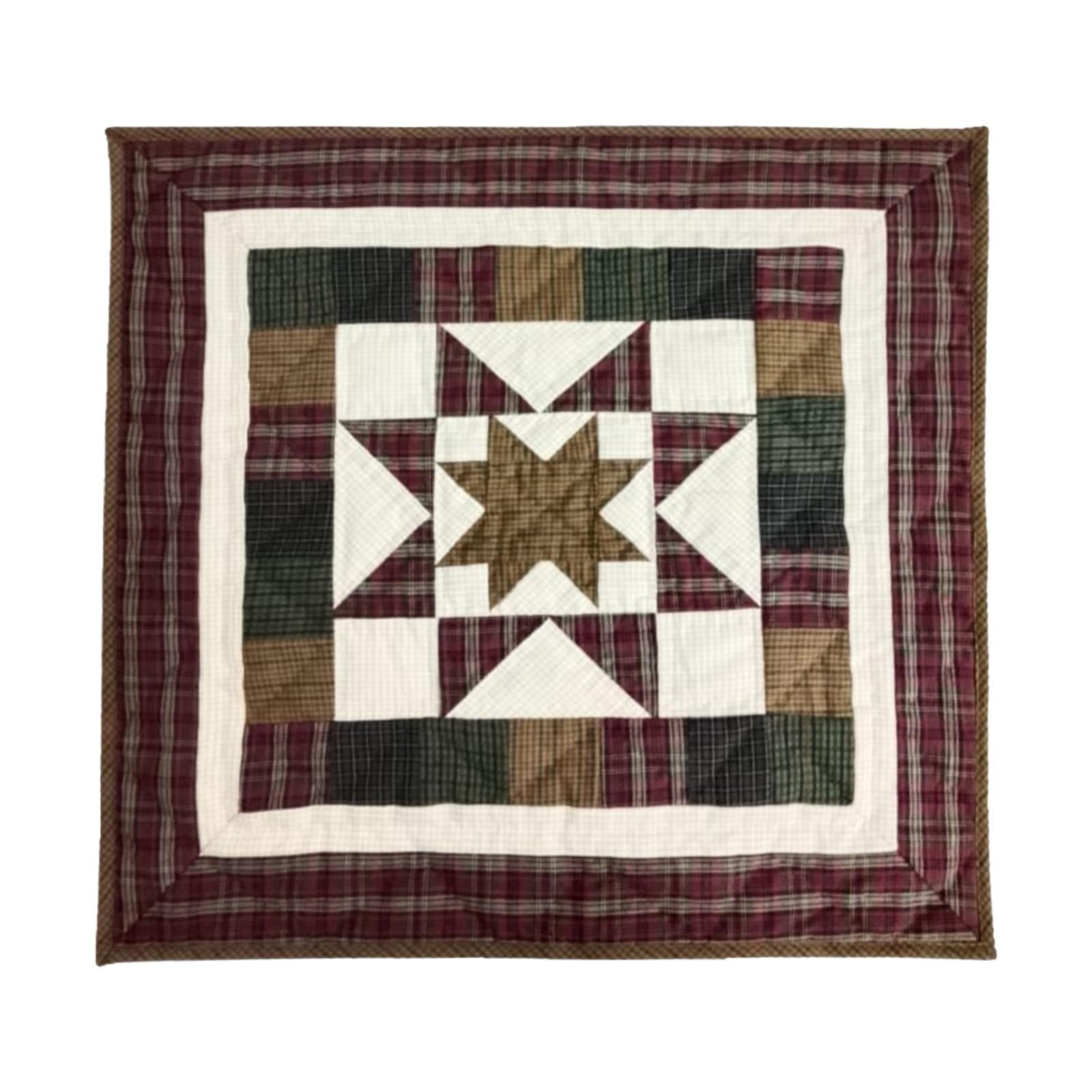 Barn star quilted 19"X19" hand crafted block square quilt, small quilt, Table Topper calico fabric by Home Heart brands (Made in India)