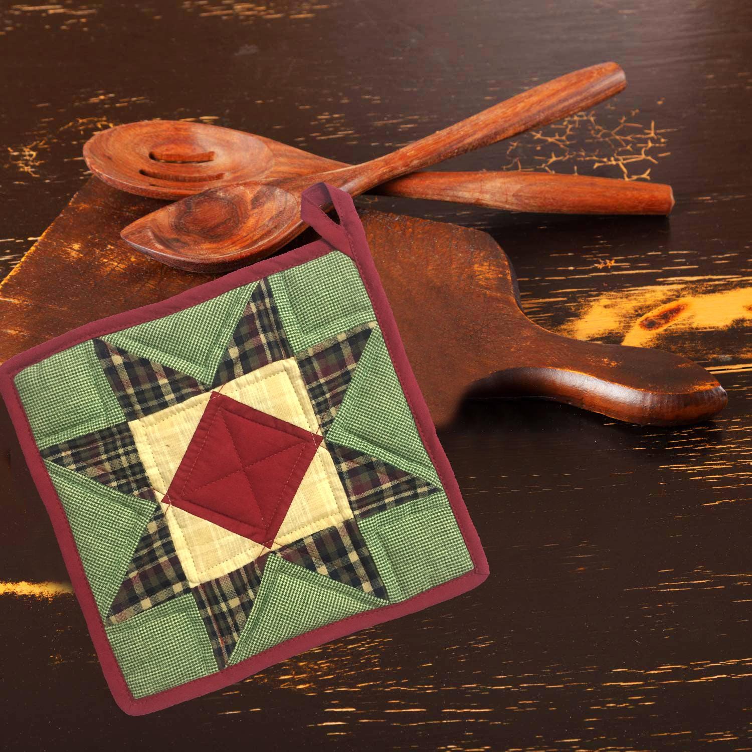 MATERIAL:100% high quality cotton plaid fabric. PREMIUM CONSTRUCTION: Potholders are built to last for years to come with durable machine-stitched and 100% absorbent cotton for safe handling of hot pans. Easily hang this pot holder with attached fabric loop.