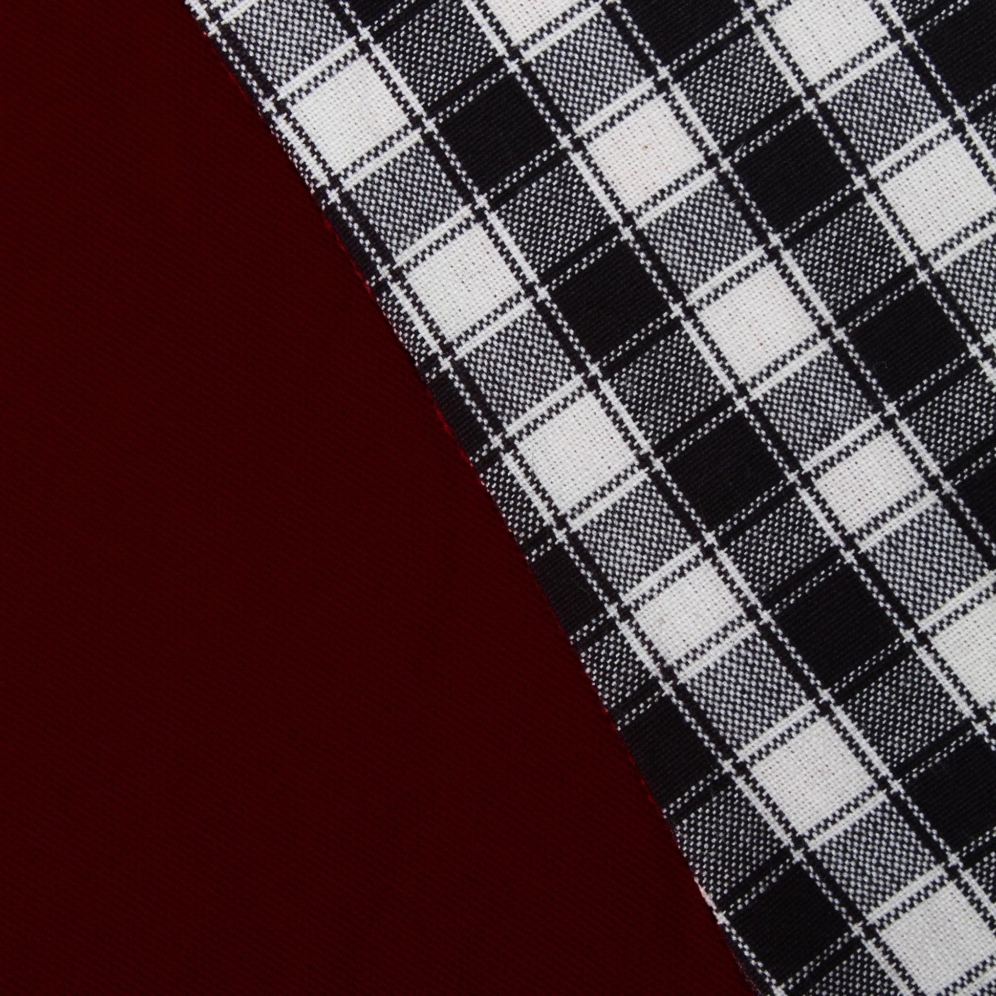 100% Dk Red Burgundy Cotton Duck Fabric with applique black & white buffalo plaid border.