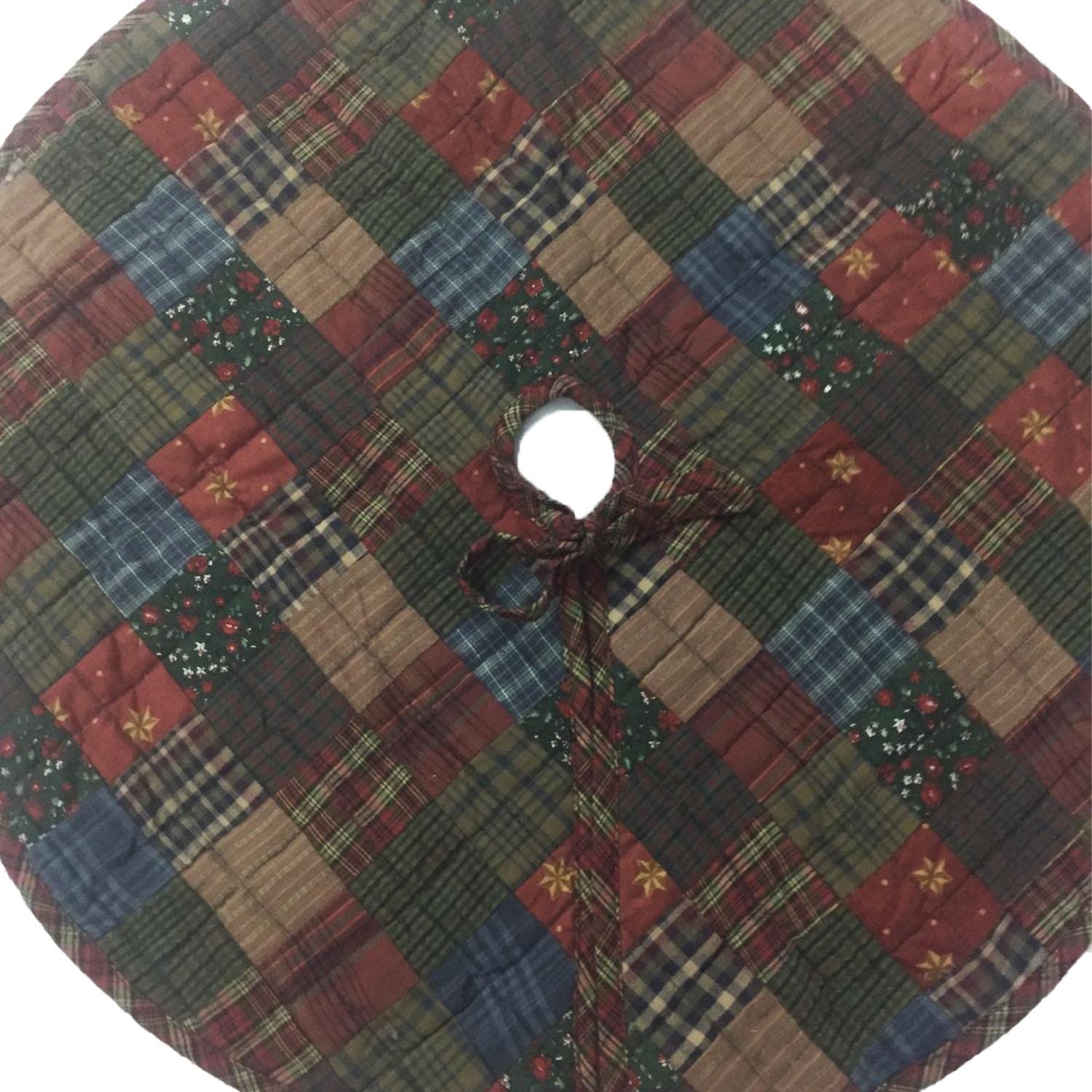Christmas tree skirt 24 inch patchwork quilted Dazzling star assorted plaid Heirloom Quality tree skirt by HOME HEART Brands( Made in India)