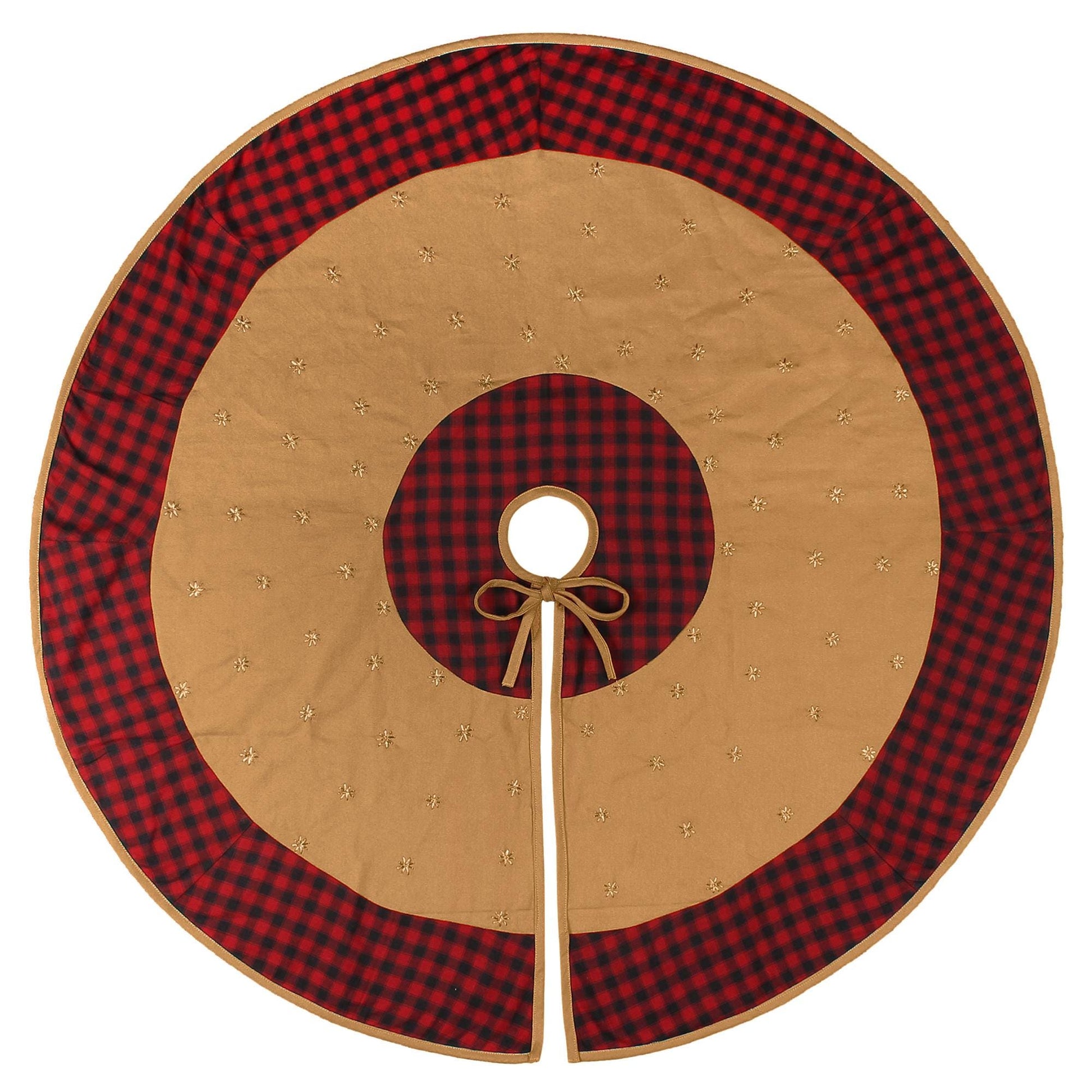 Christmas tree skirt Cotton Sturdy beige Duck Fabric & red black plaid border with star stitch jari hand Embroidered by HOME HEART Brands