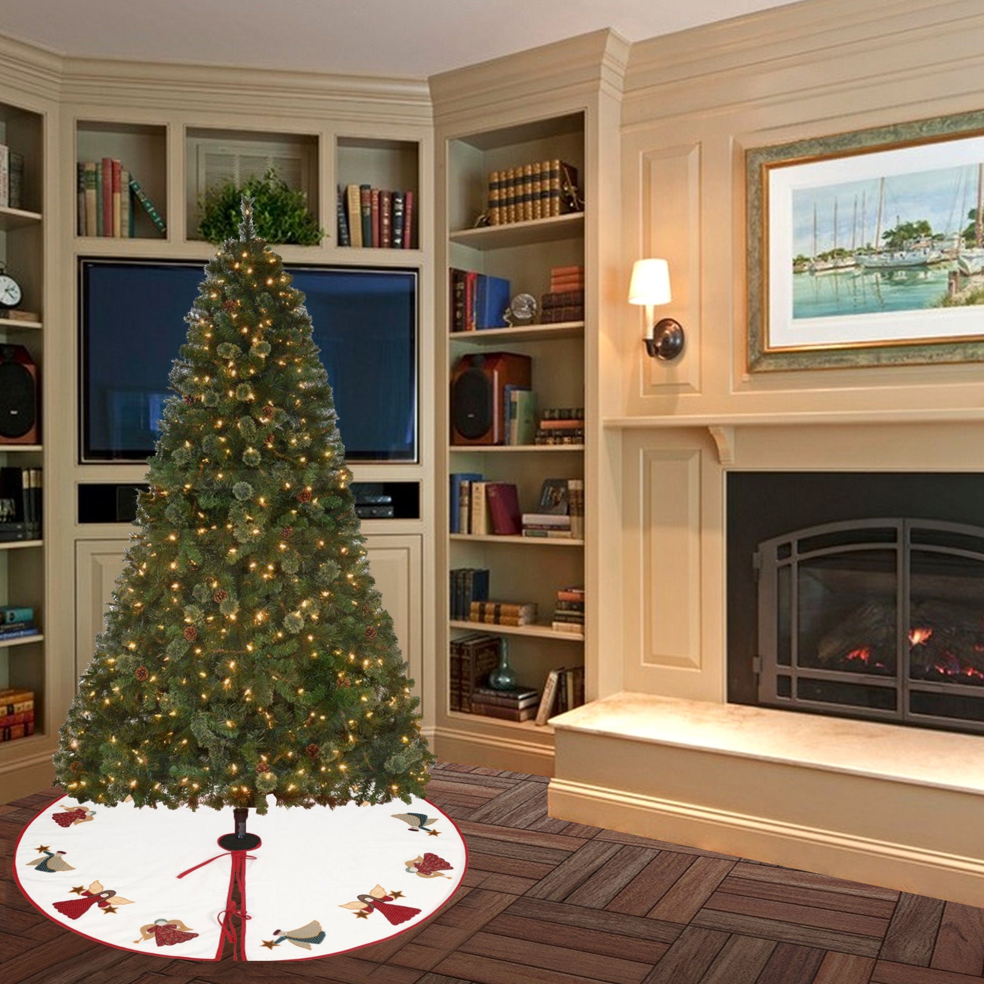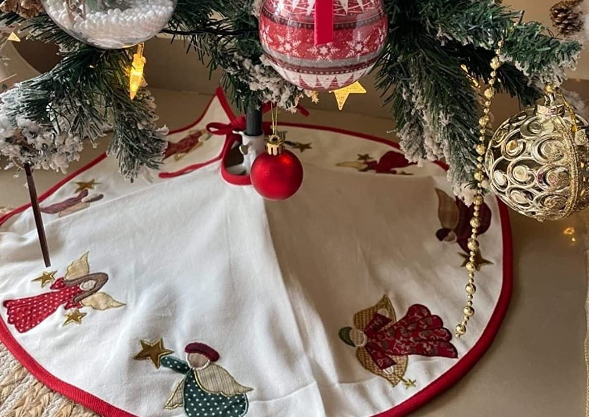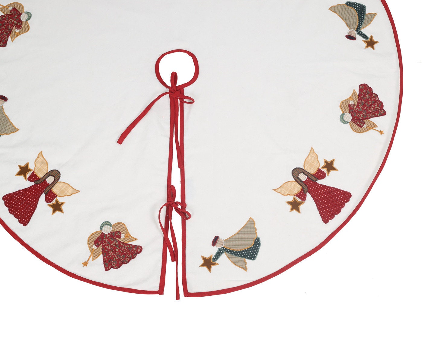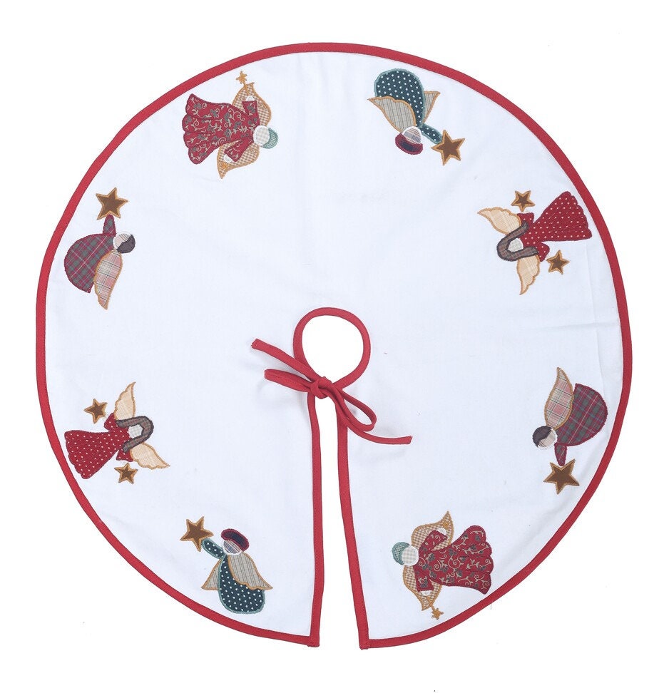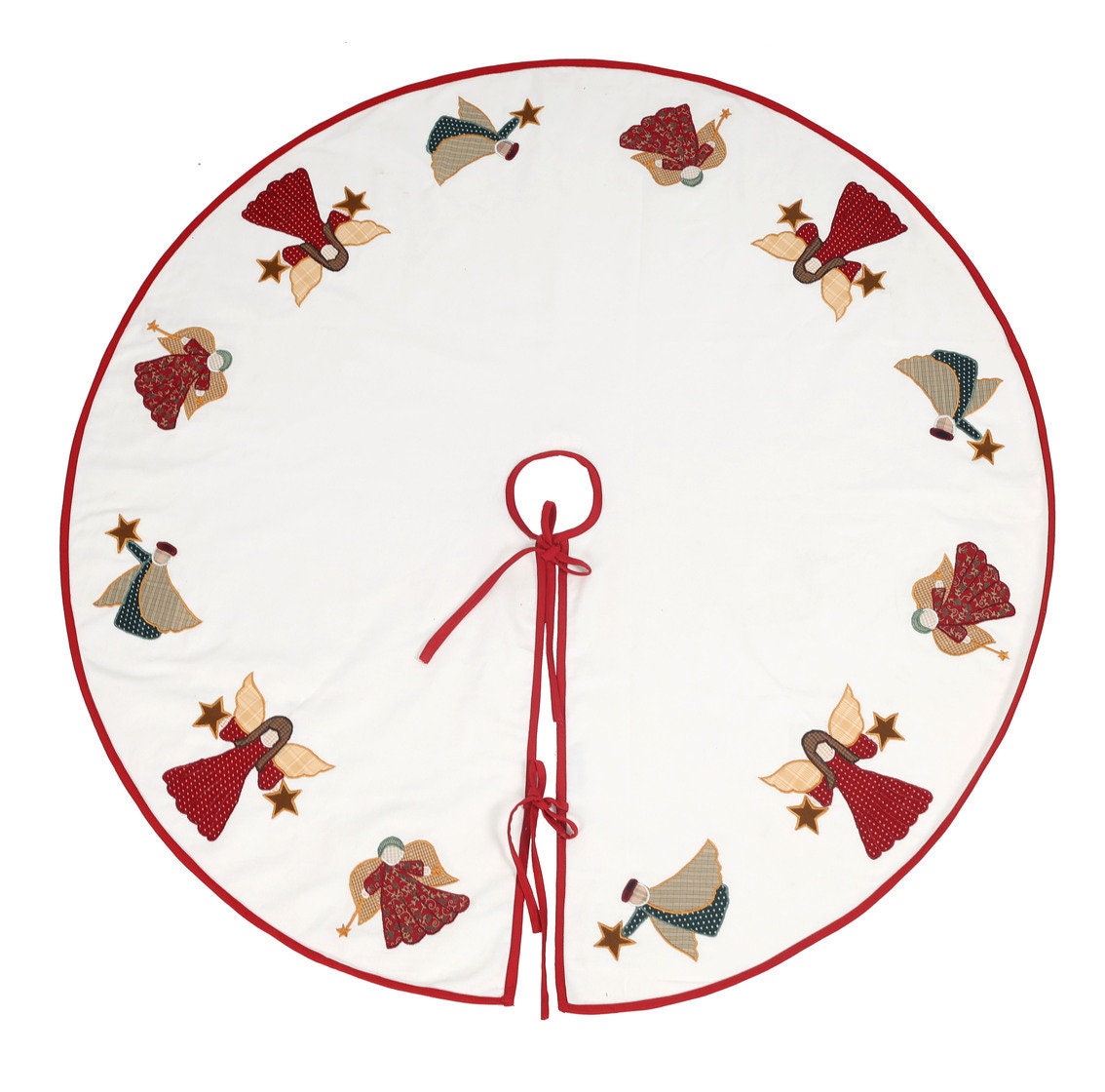 Christmas tree skirt Cotton Sturdy ivory Duck Fabric & multi colour Angel Applique style by HOME HEART Brands