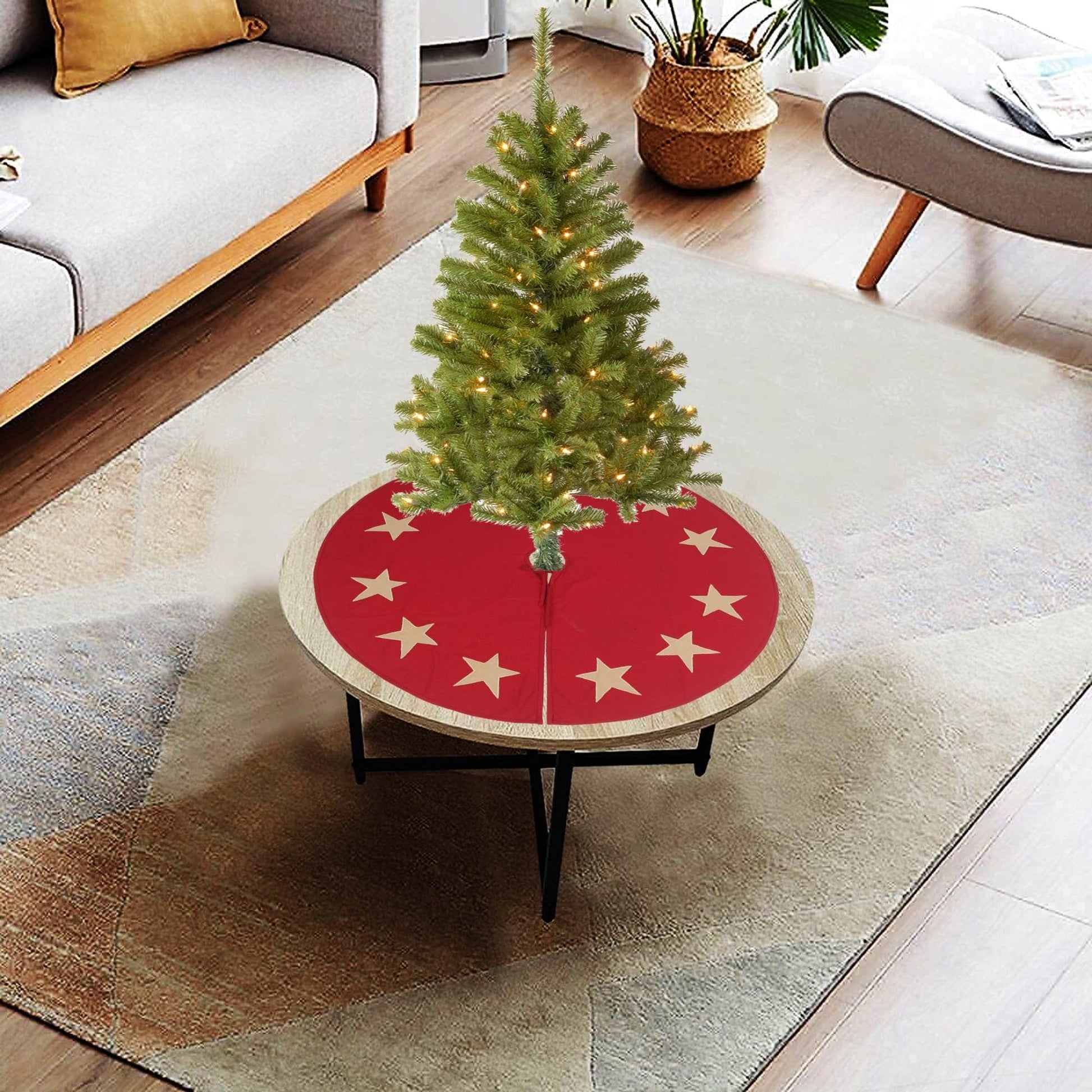 Christmas tree skirt Cotton Sturdy red Duck Fabric & beige Star Appliqued Embroidered by HOME HEART Brands
