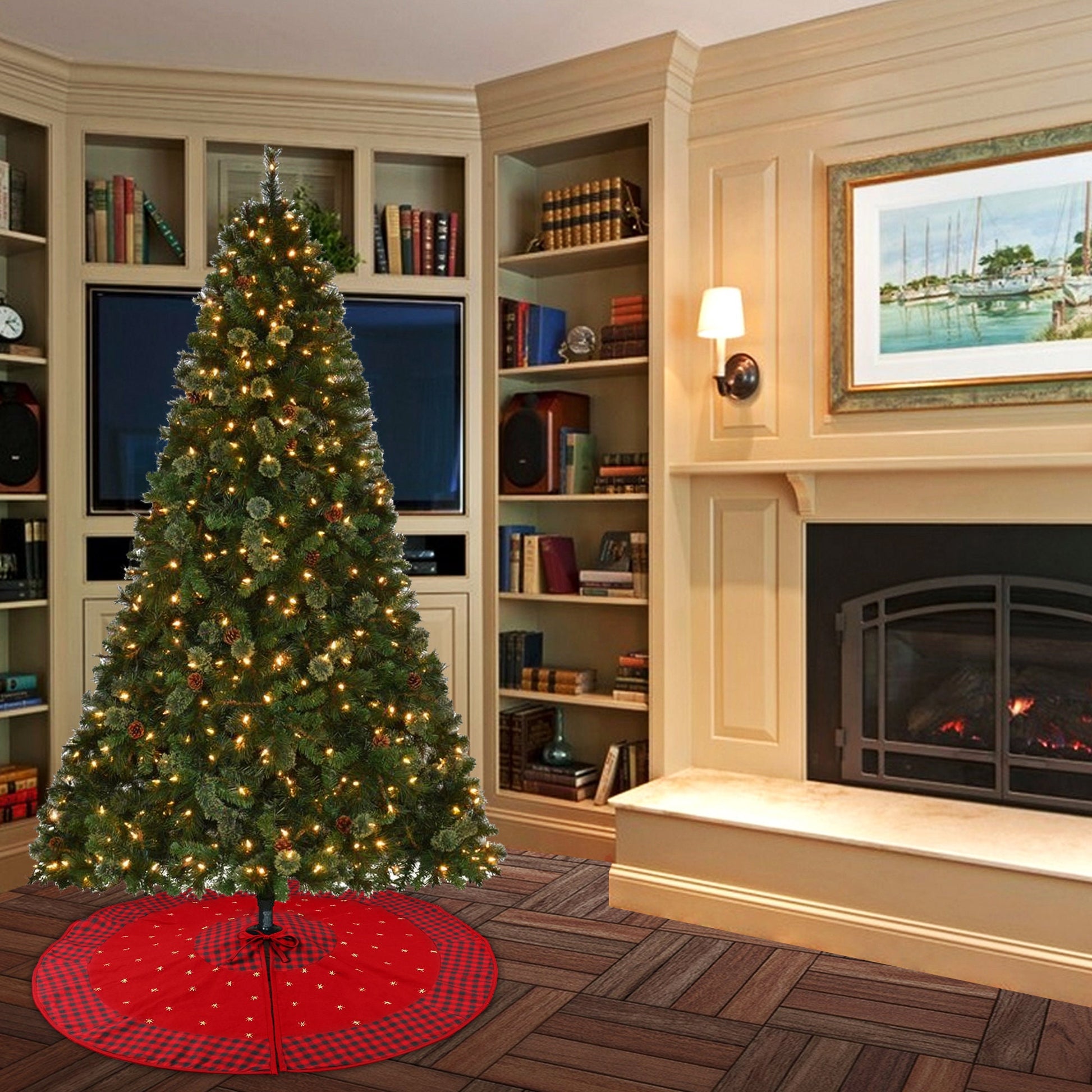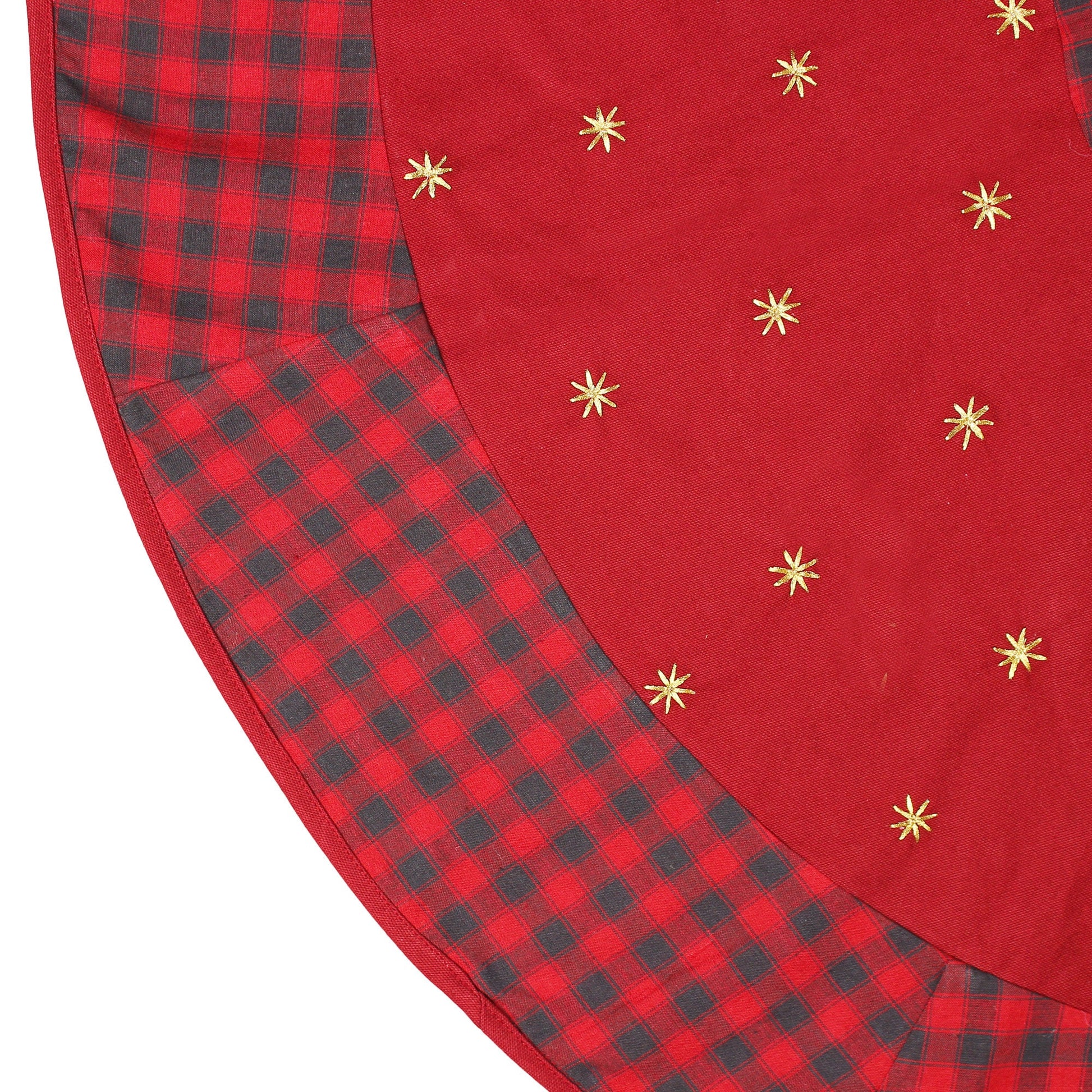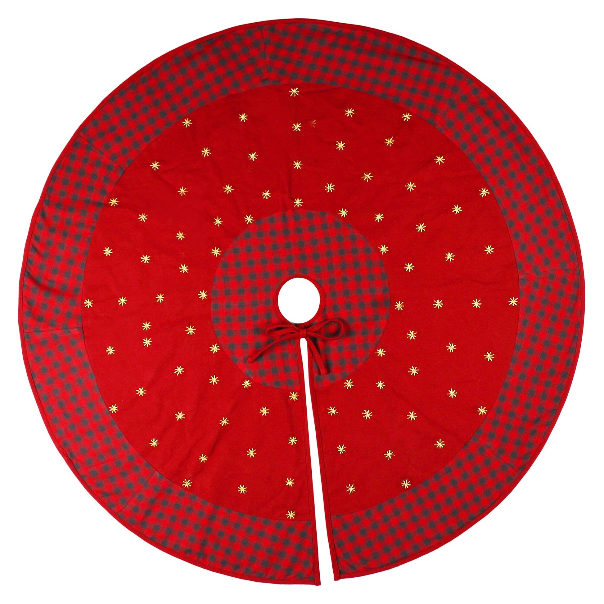 Christmas tree skirt Cotton Sturdy red Duck Fabric & golden Embroidered style by HOME HEART Brands