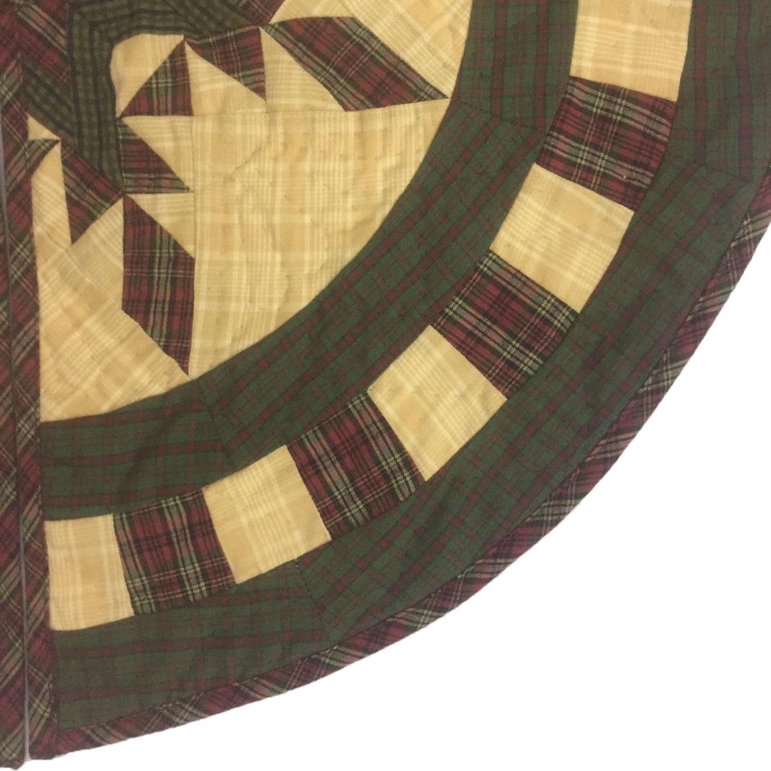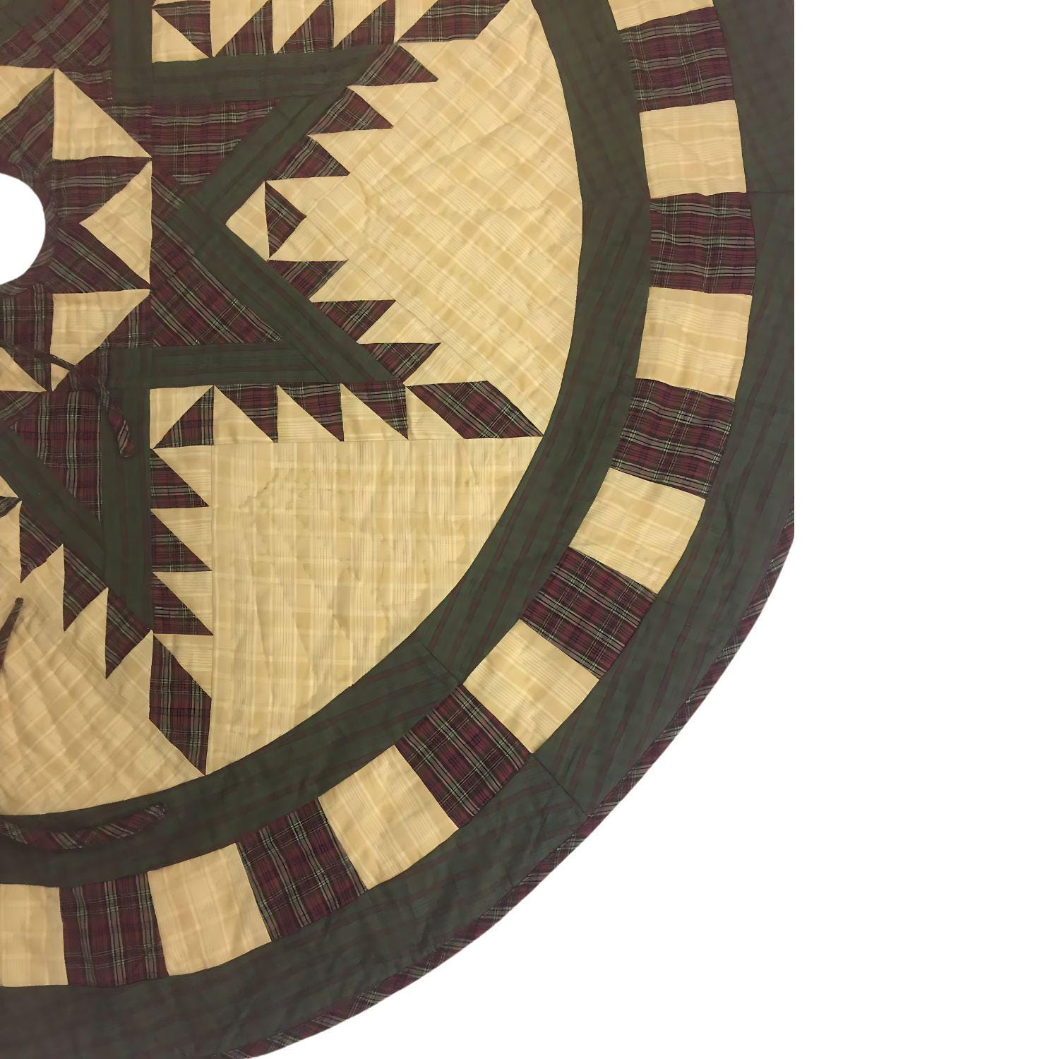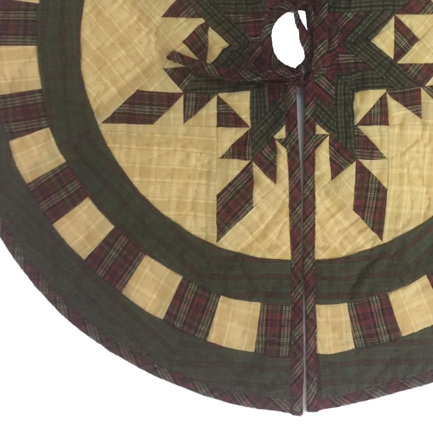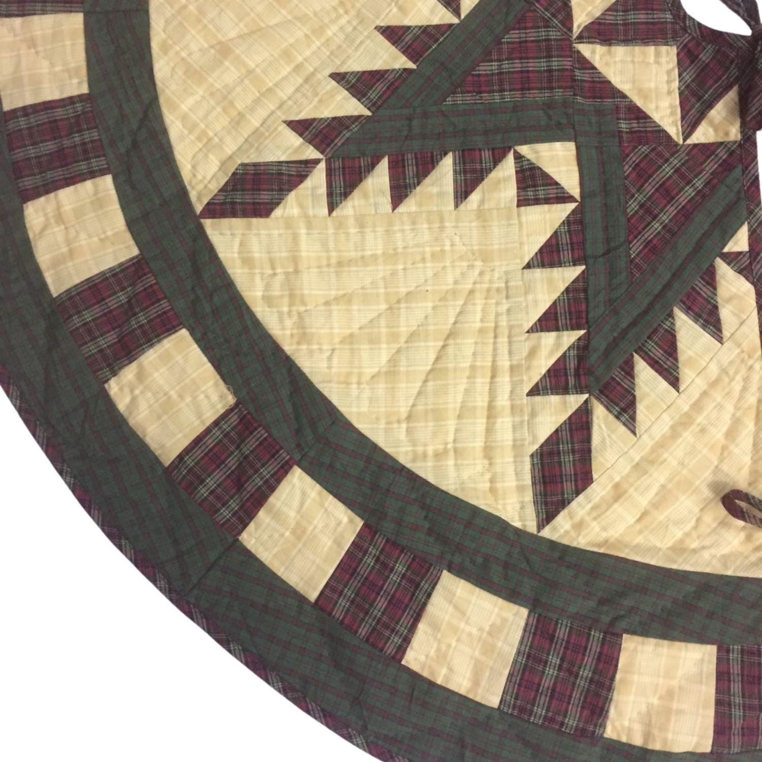 Christmas tree skirt hand made hand quilted Feathered Star plaid thick Double Layer Heirloom Quality by HOME HEART Brands( Made in India)
