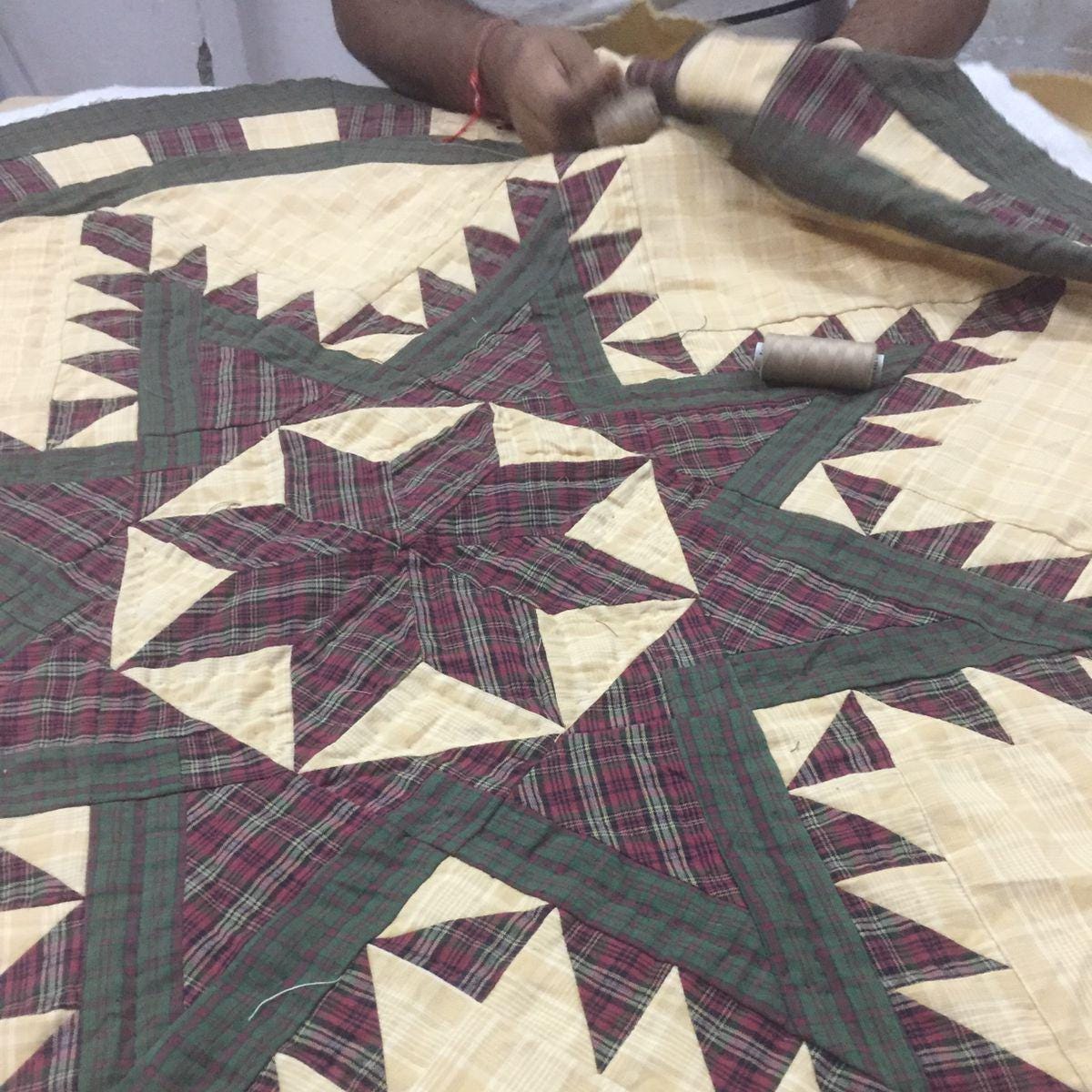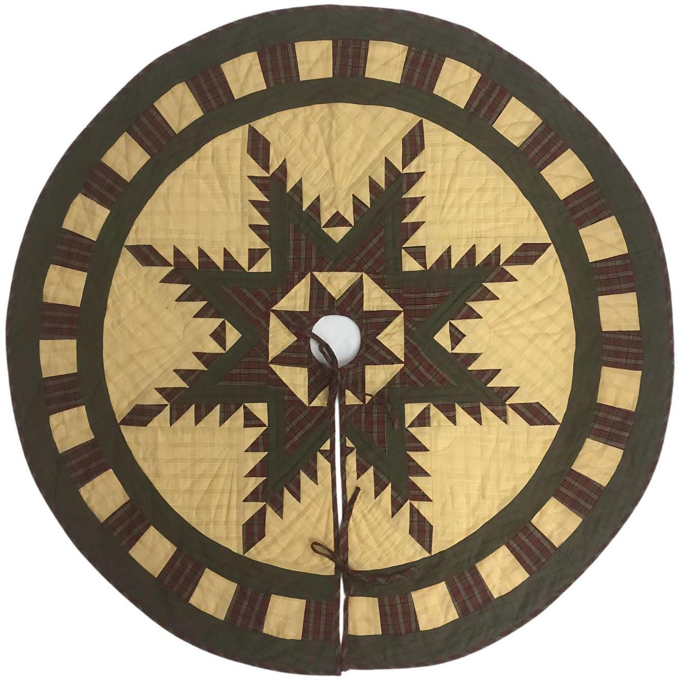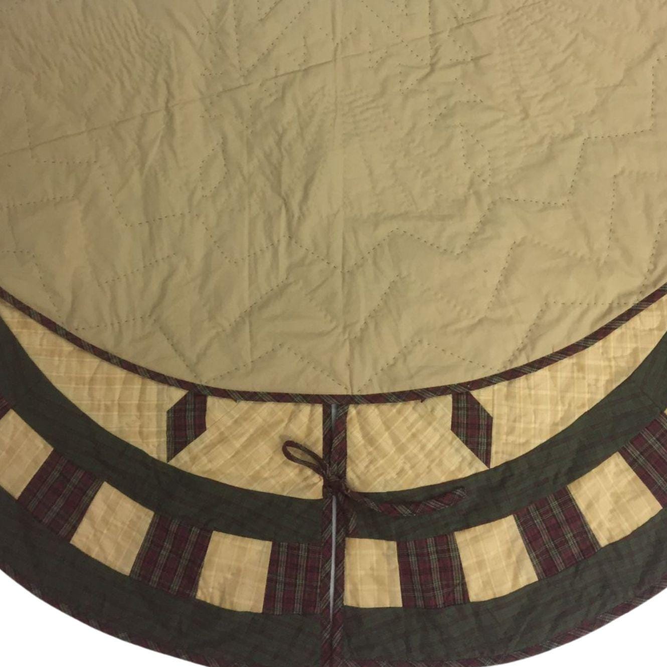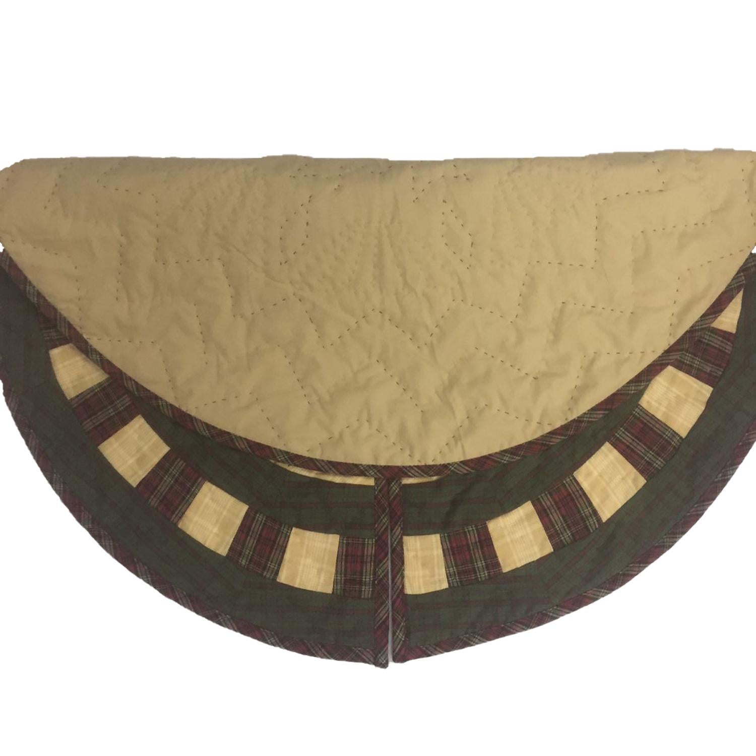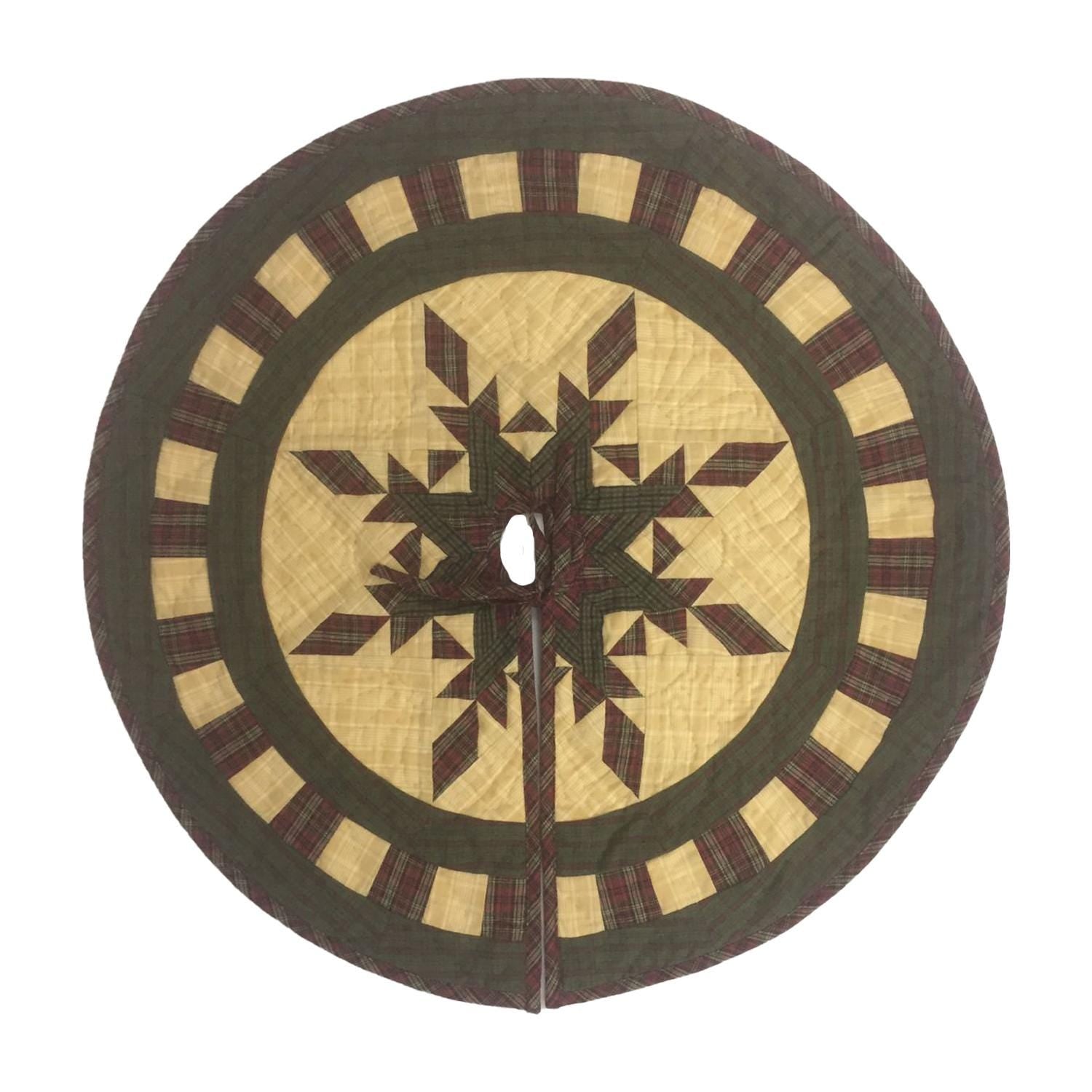 Christmas tree skirt hand made hand quilted Feathered Star plaid thick Double Layer Heirloom Quality by HOME HEART Brands( Made in India)