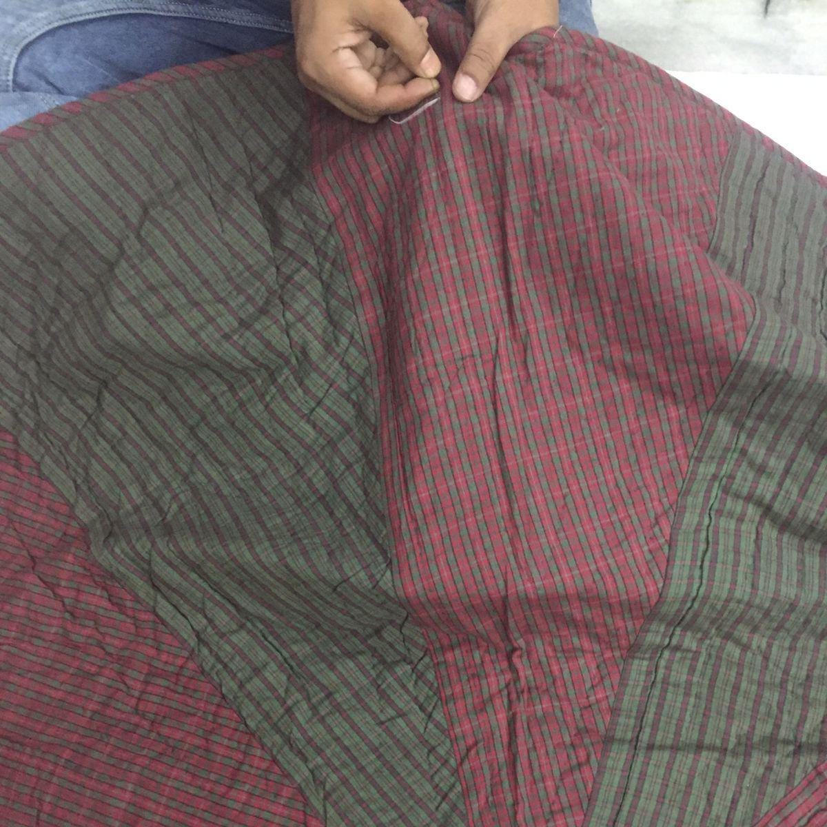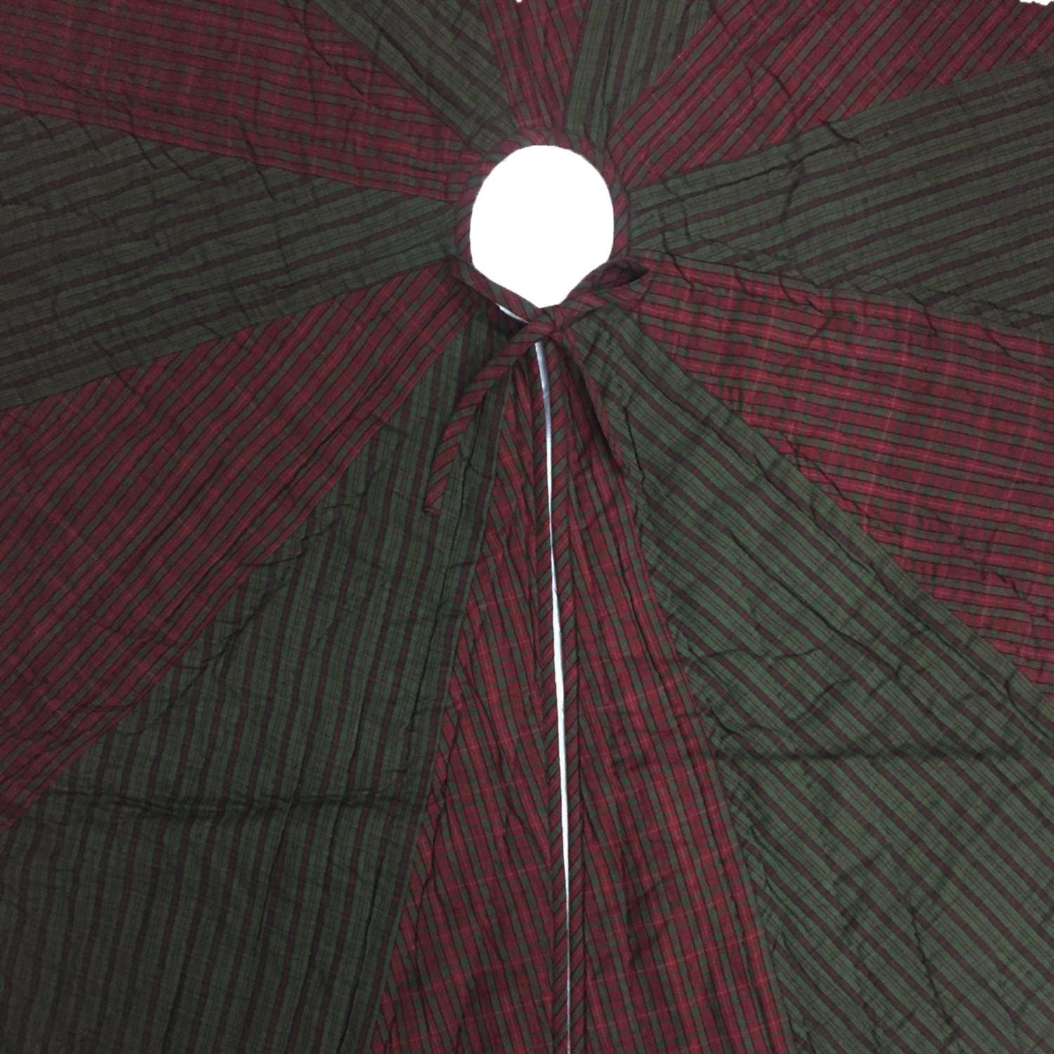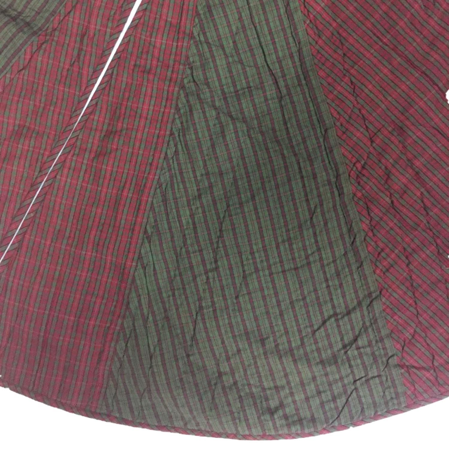 Made of double-layer cotton red-green stripe plaid fabric, with hand-quilted on it. The tree skirt features a beautiful handmade double tie. A cotton layer inside the tree skirt enhances the look with attractive intricate hand quilting.