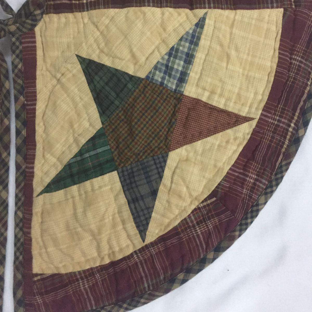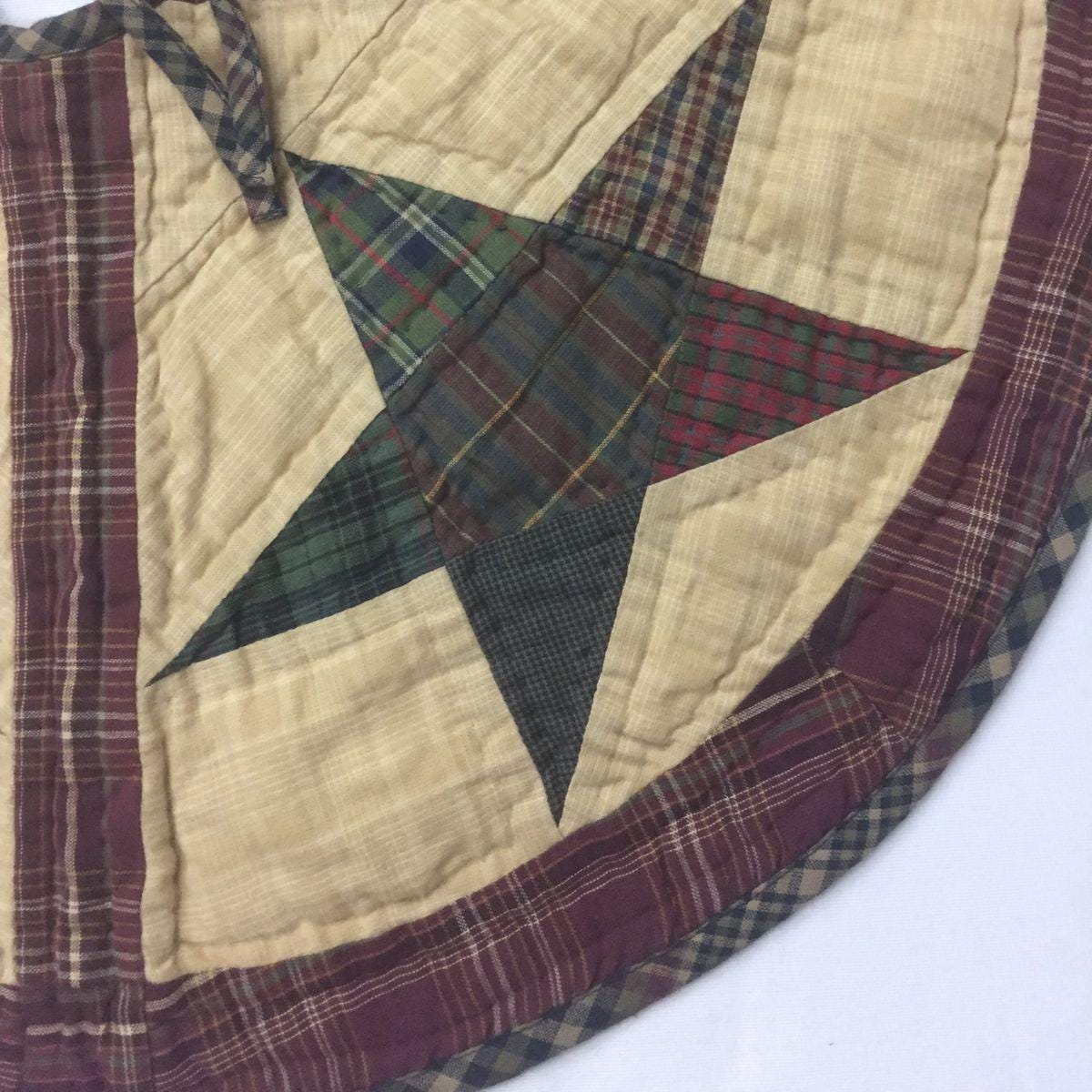 Christmas tree skirt hand made hand quilted Wishing star plaid patchwork Heirloom thick Quality by HOME HEART Brands (Made in India)