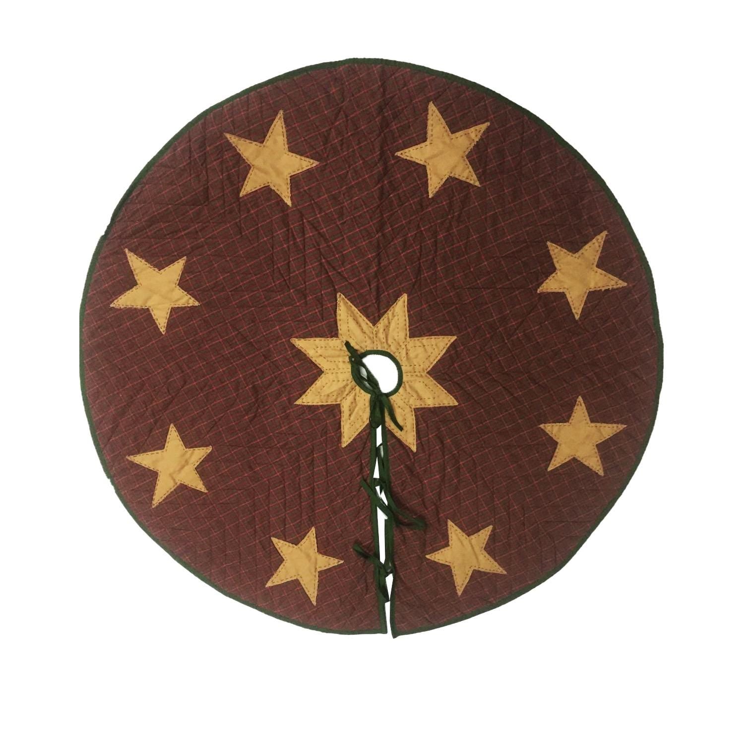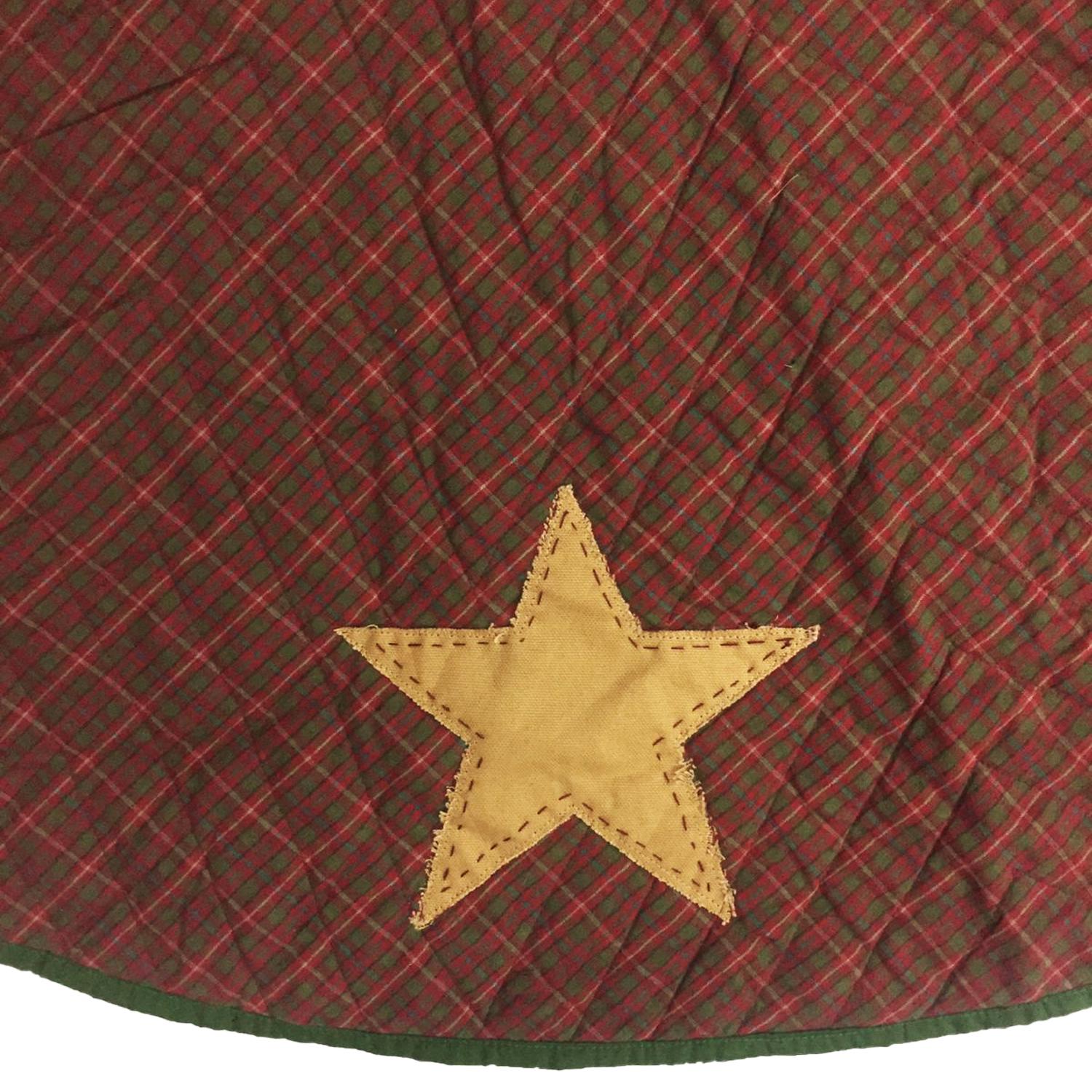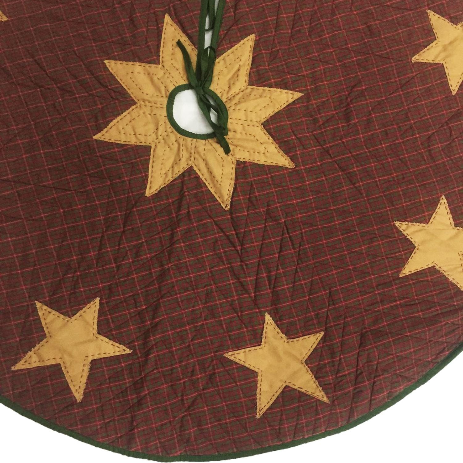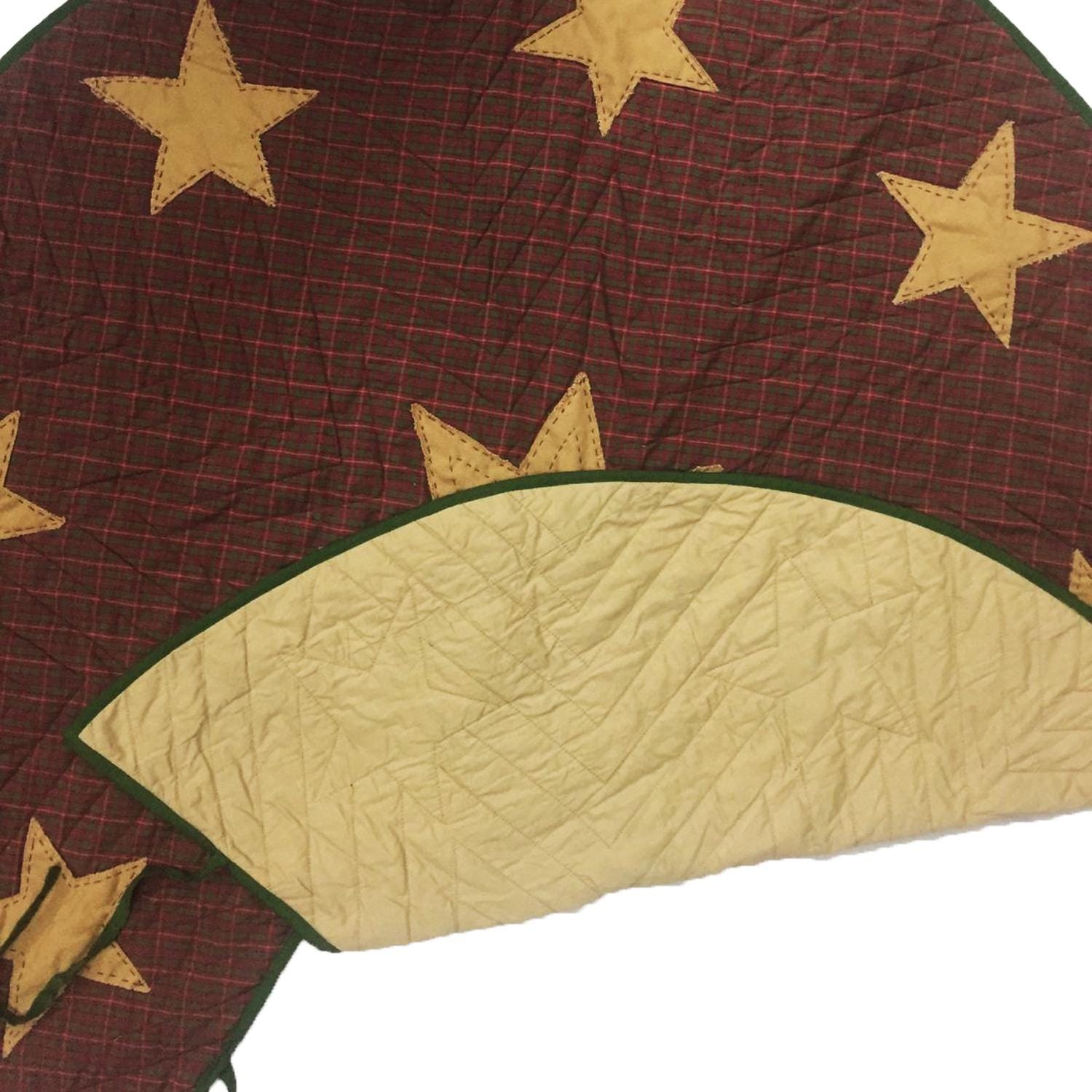 Christmas tree skirt hand quilted applique beige star Country Christmas red green plaid thick Double Layer quilt by HOME HEART Brands