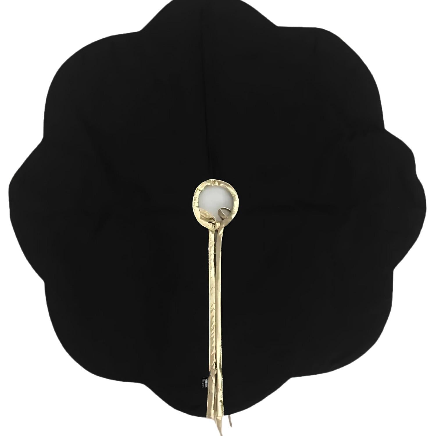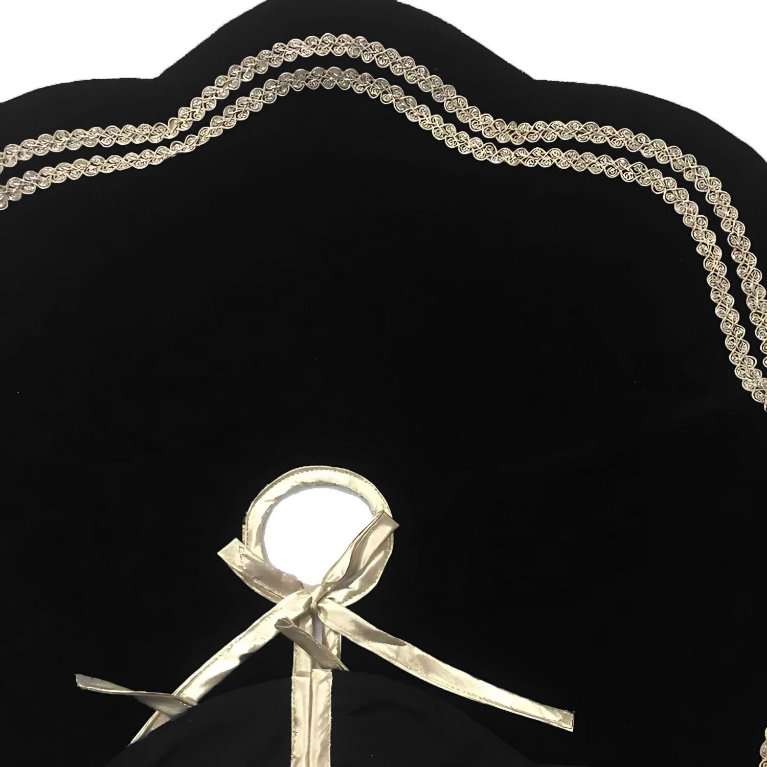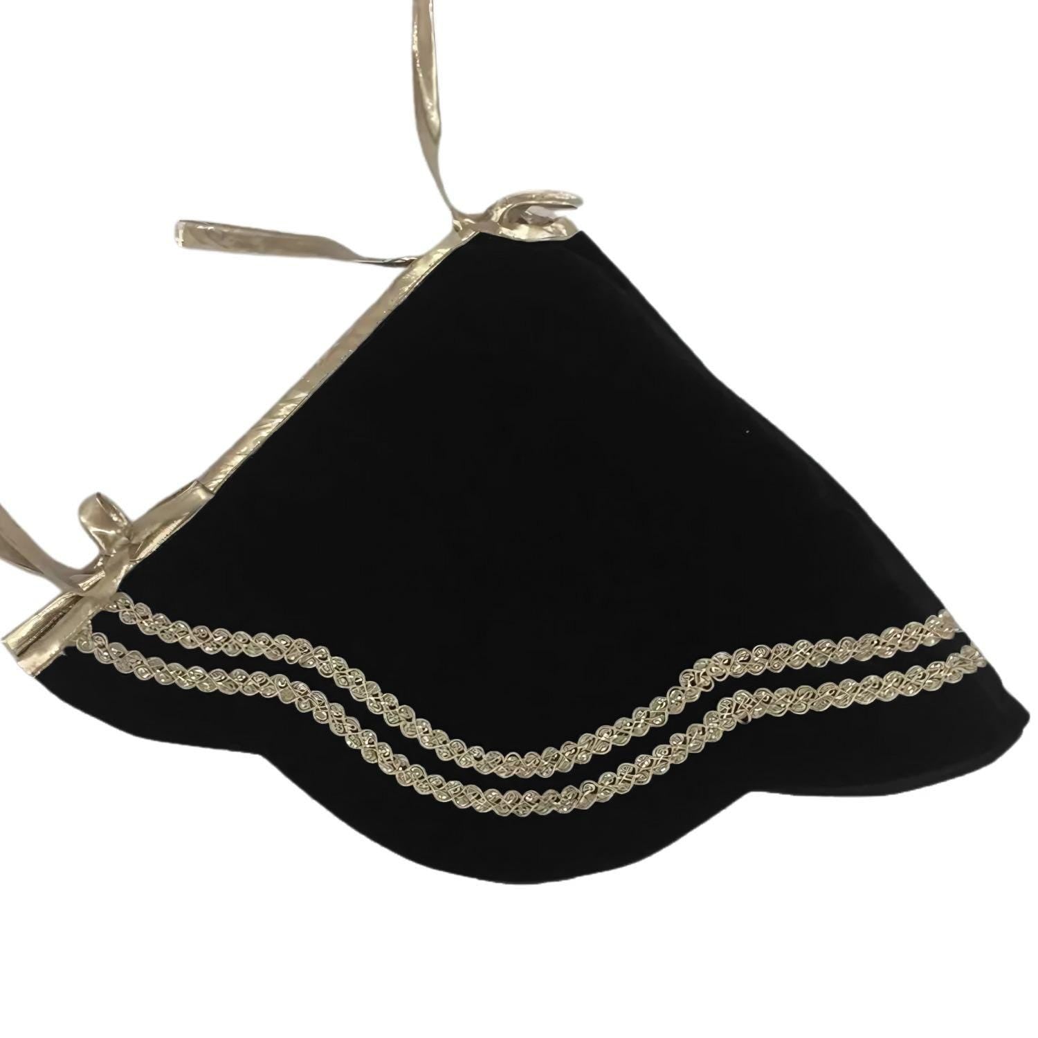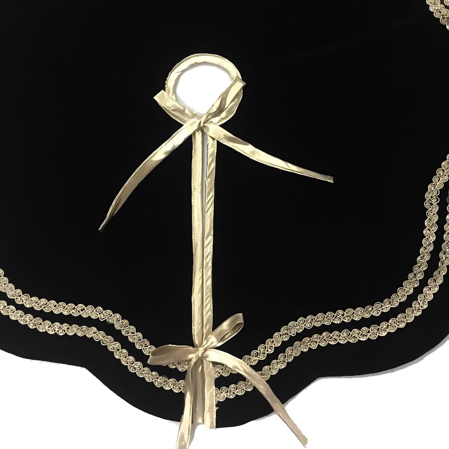 Add a touch of elegance to your holiday décor with this exquisite, handcrafted Christmas tree skirt. Made from rich, luxurious black velvet, it features a stunning scalloped edge, adorned with a sophisticated gold trim and border that elevates its festive appeal. Backing is satin feel soft fabric.