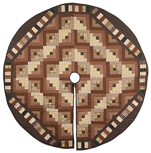 Christmas tree skirt large 60" round hand quilted Country log cabin patchwork Heirloom Quality Thick by HOME HEART Brands (Made in India)