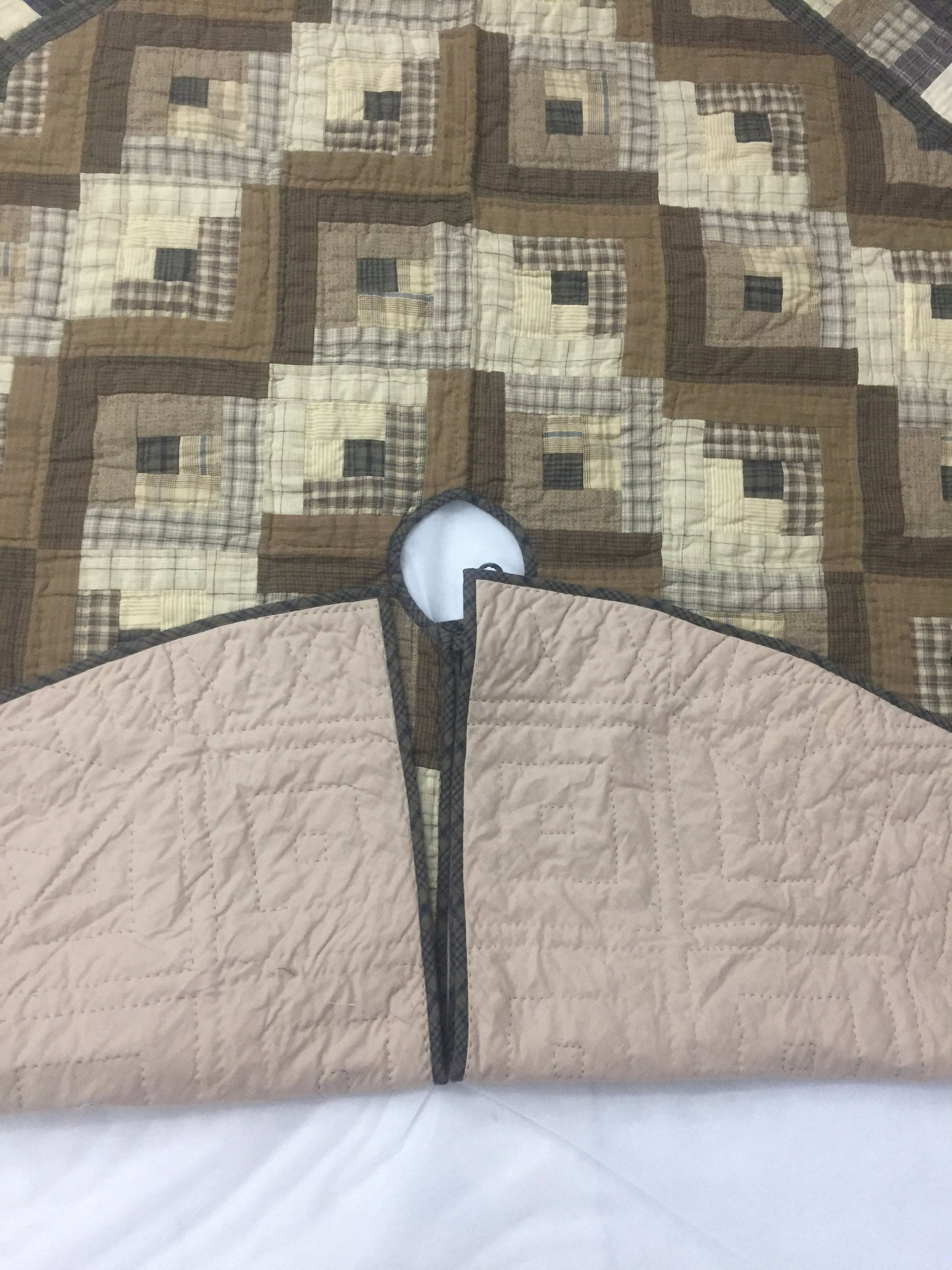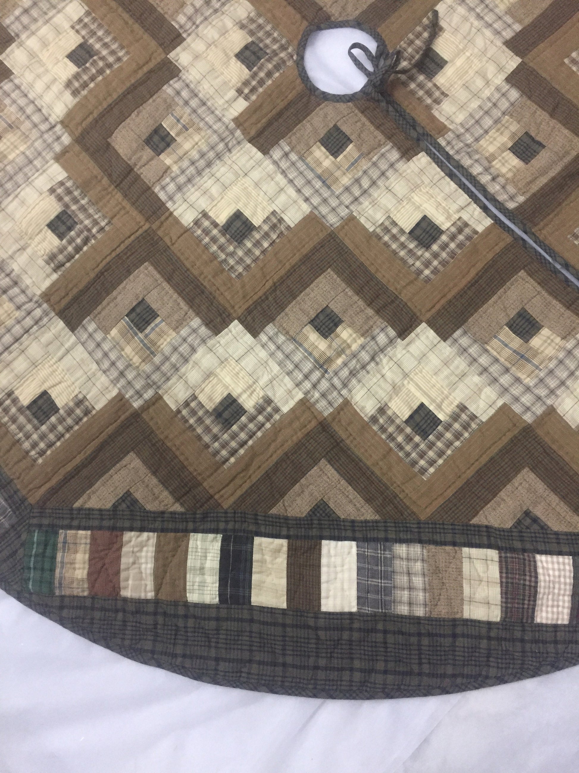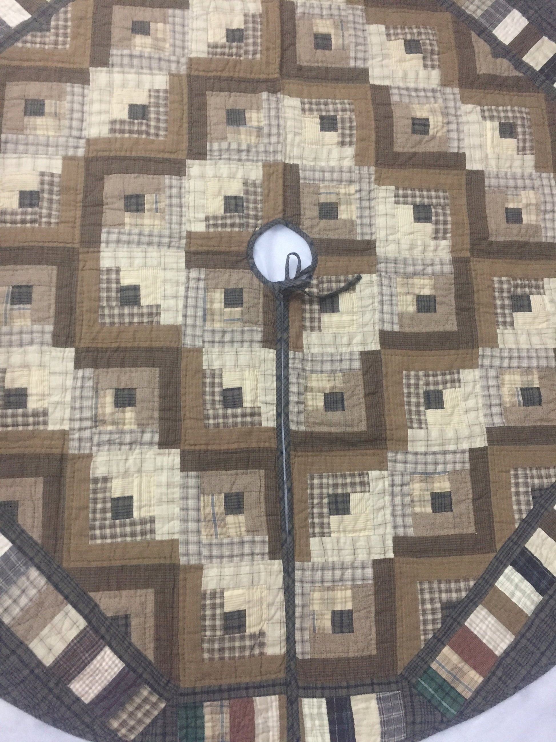[Christmas Tree Skirts] Made of Patchwork Brown Tone plaid fabrics, creating a Log Cabin design.