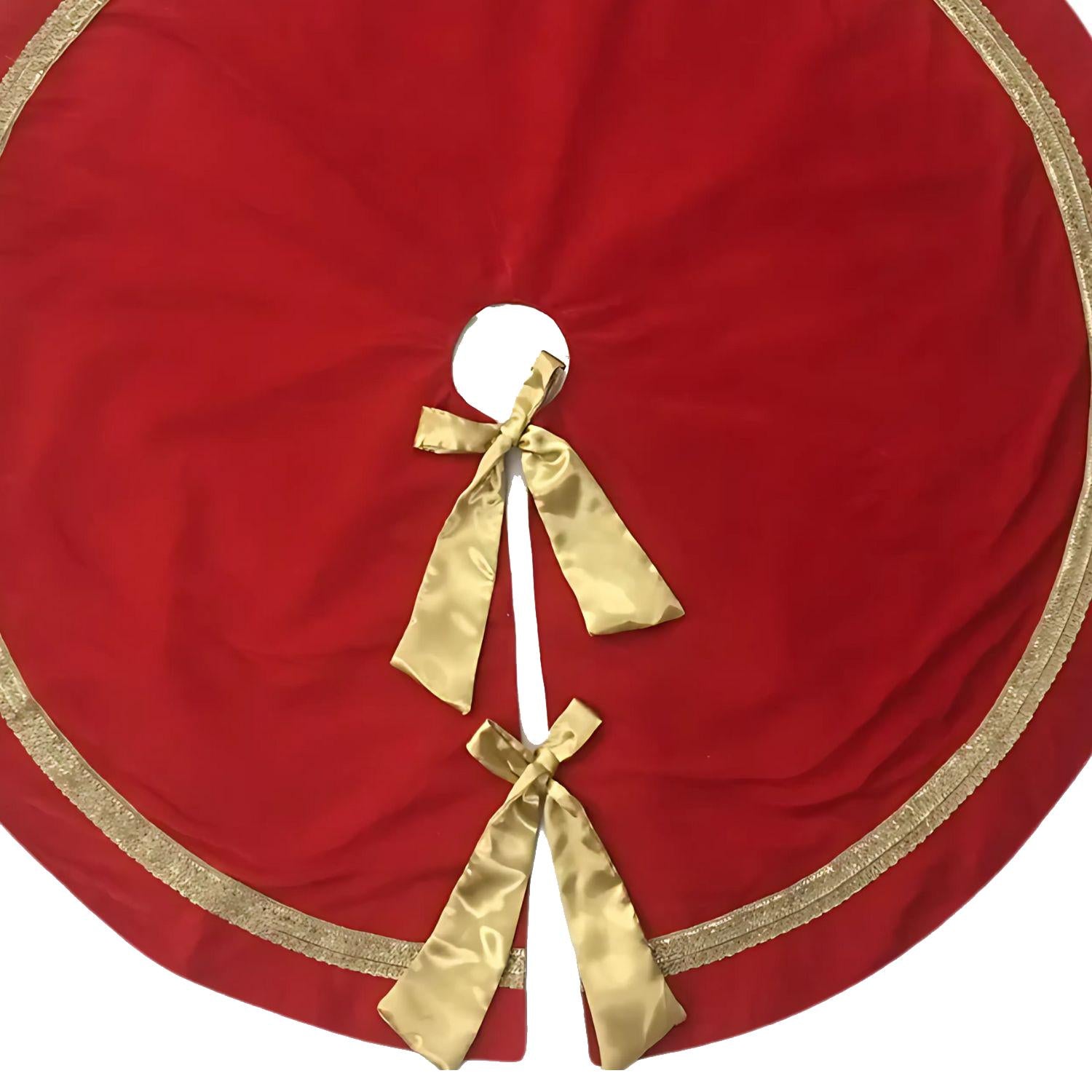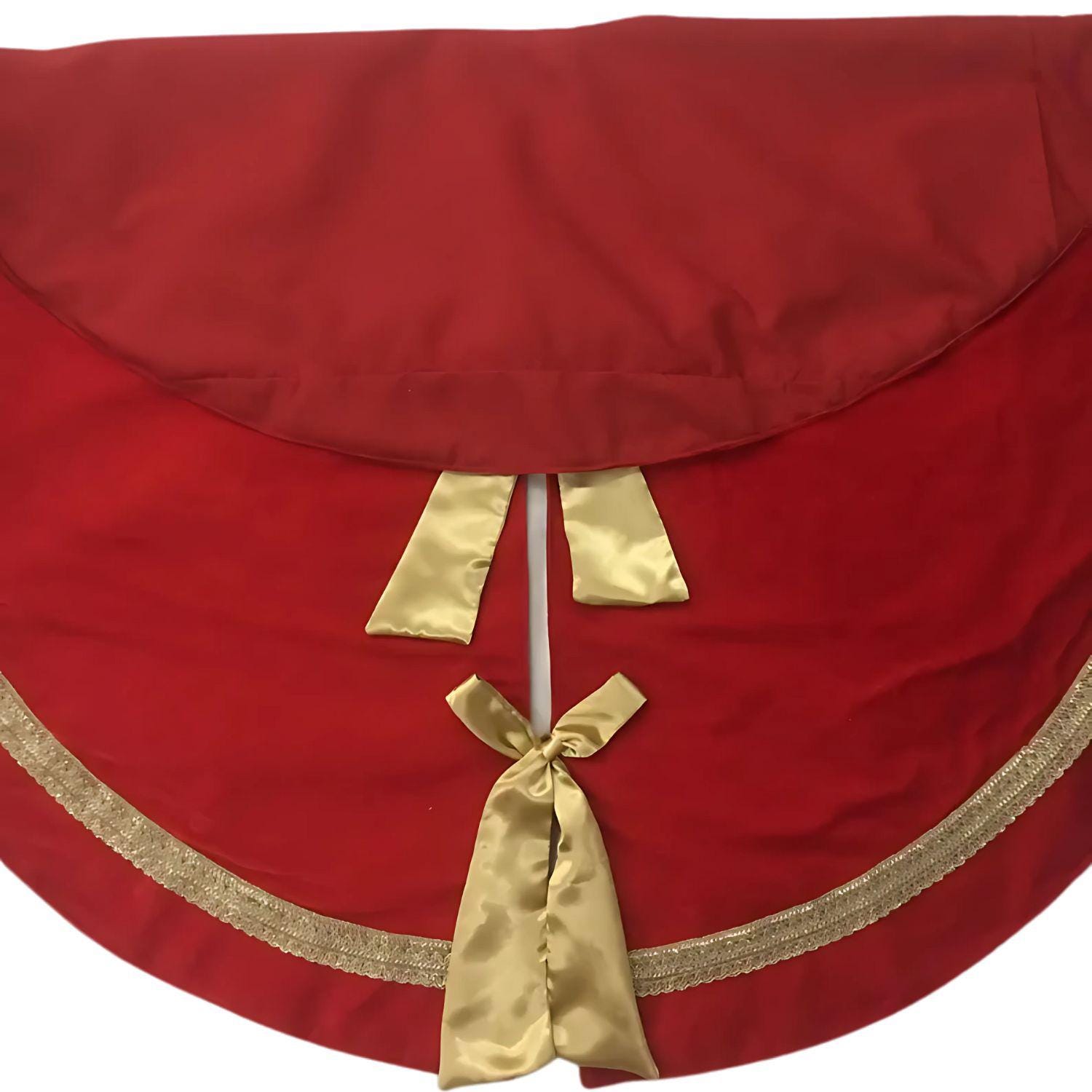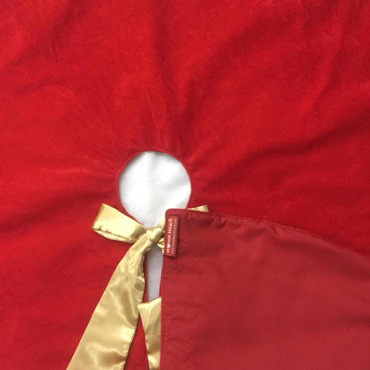 Made of double layer classic christmas red Velvet fabric and gold border fabric. Tree skirt with beautiful hand made satin bow tie.