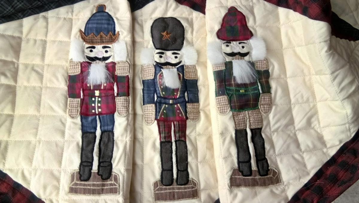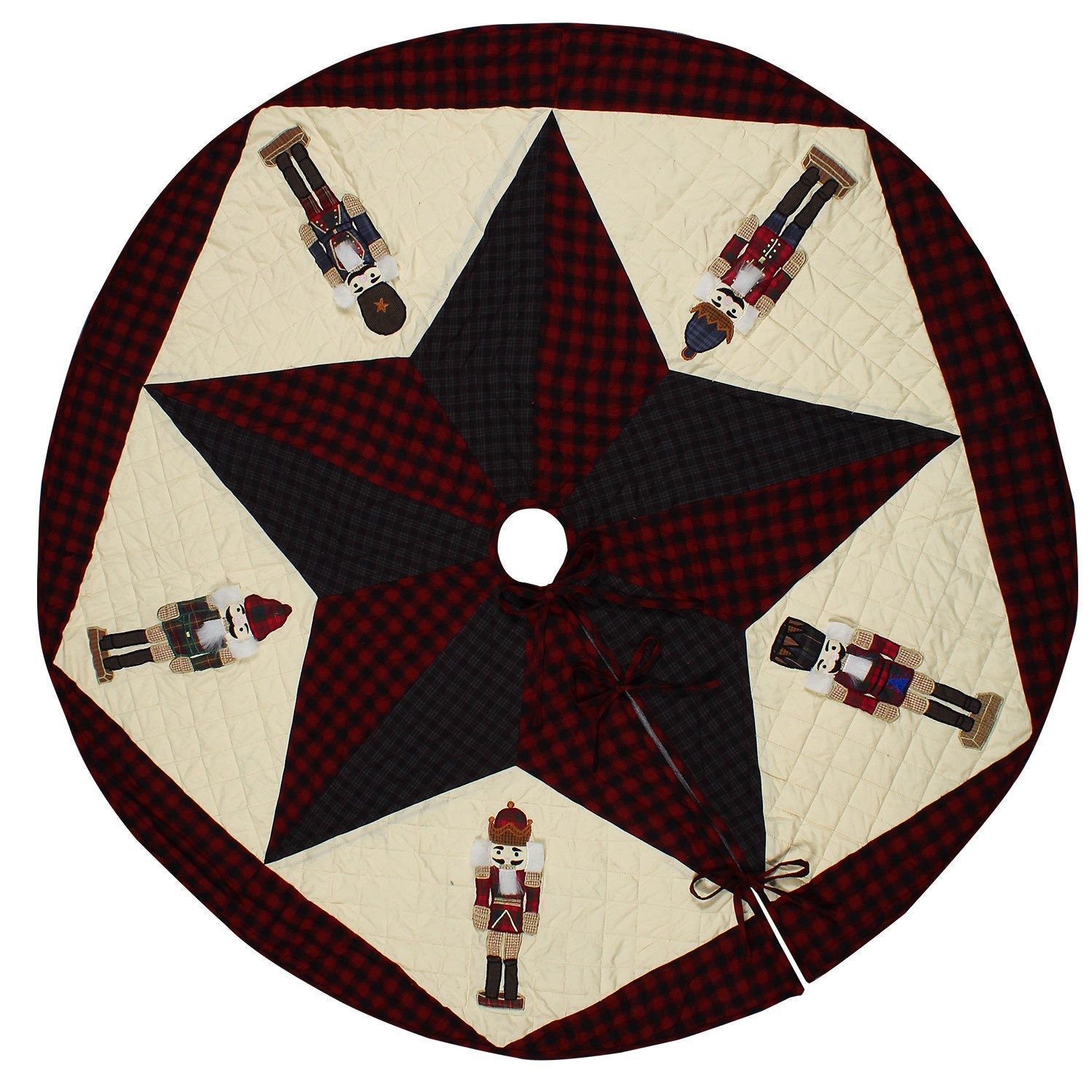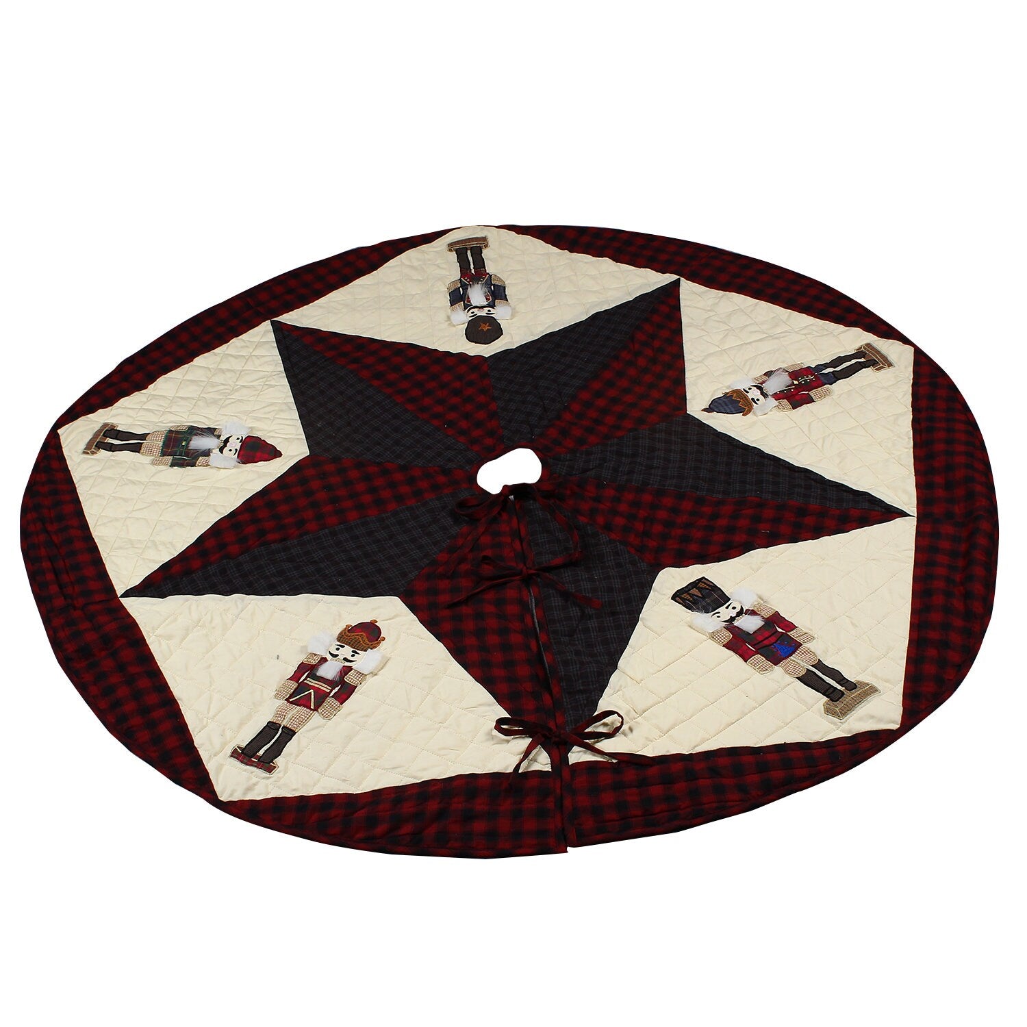 Christmas tree skirt NUTCRACKER Plaid Quilted 46" round patchwork embroidered Cotton Thick Double Layer by HOME HEART Brands(Made in India)
