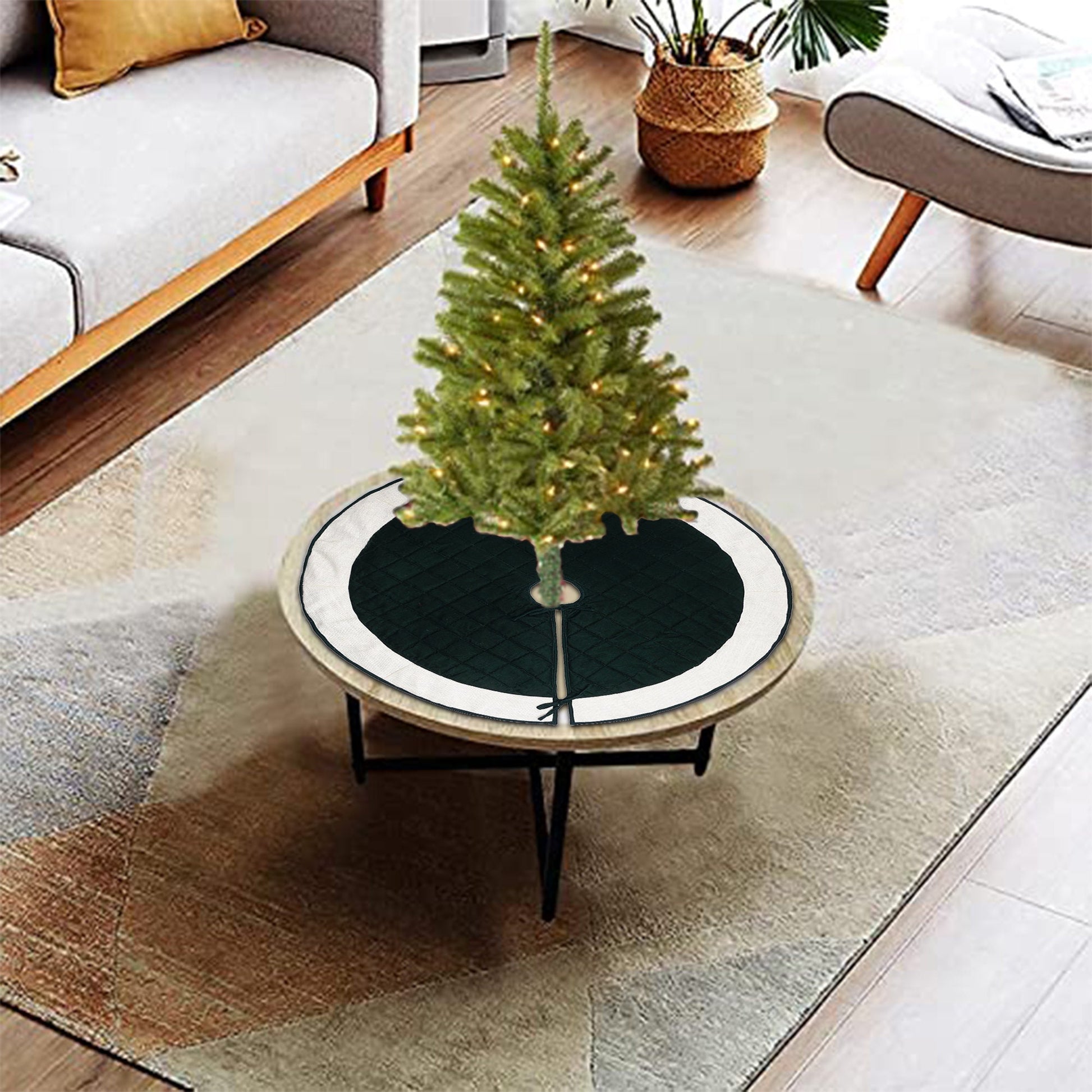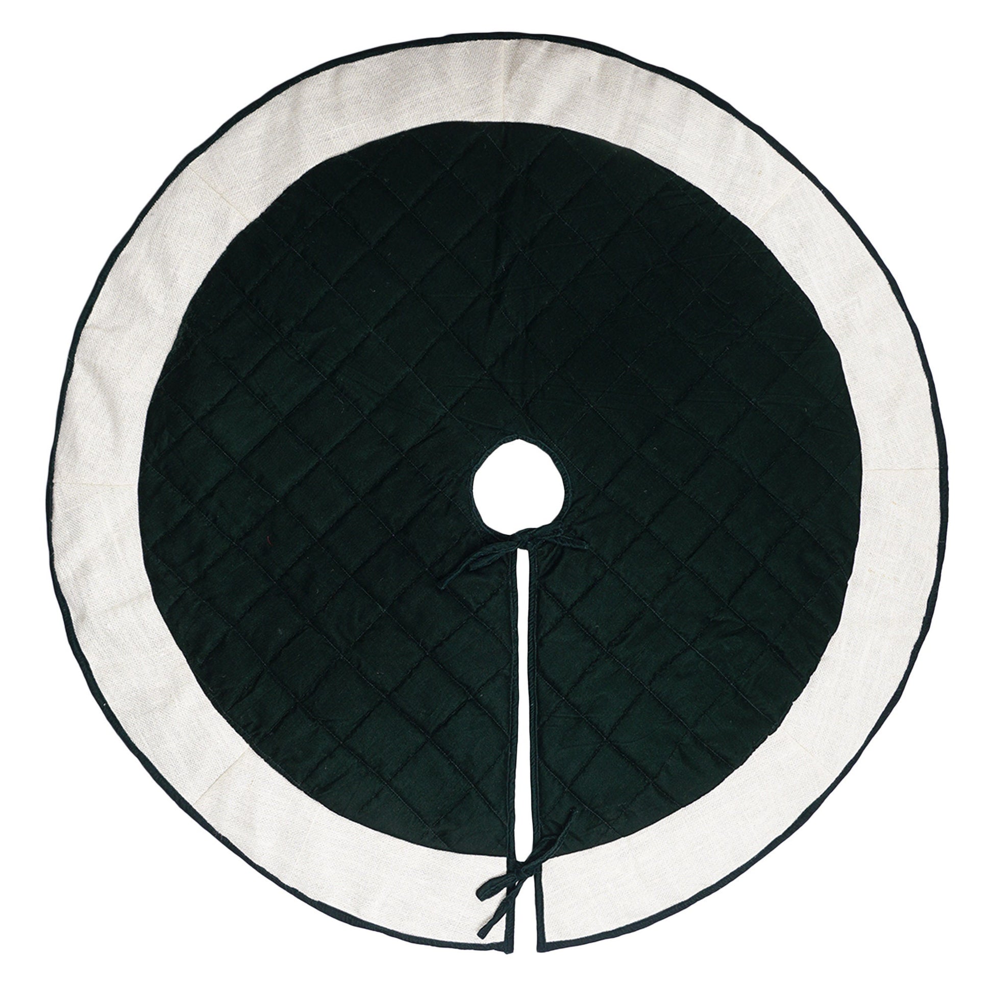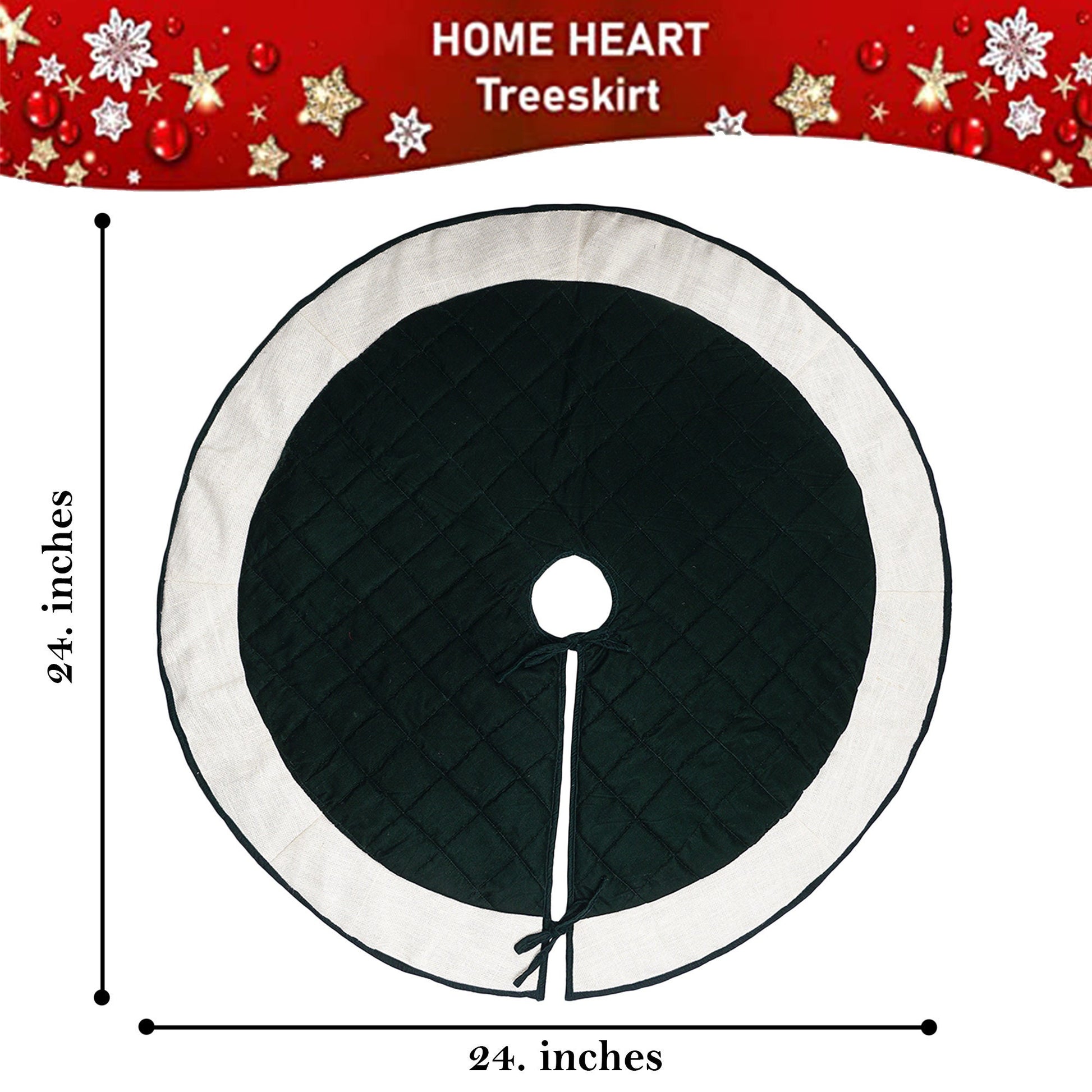 Christmas tree skirt quilted classic green micro Velvet and lurex jute Thick Double Layer by Home Heart Brands(Made in India)