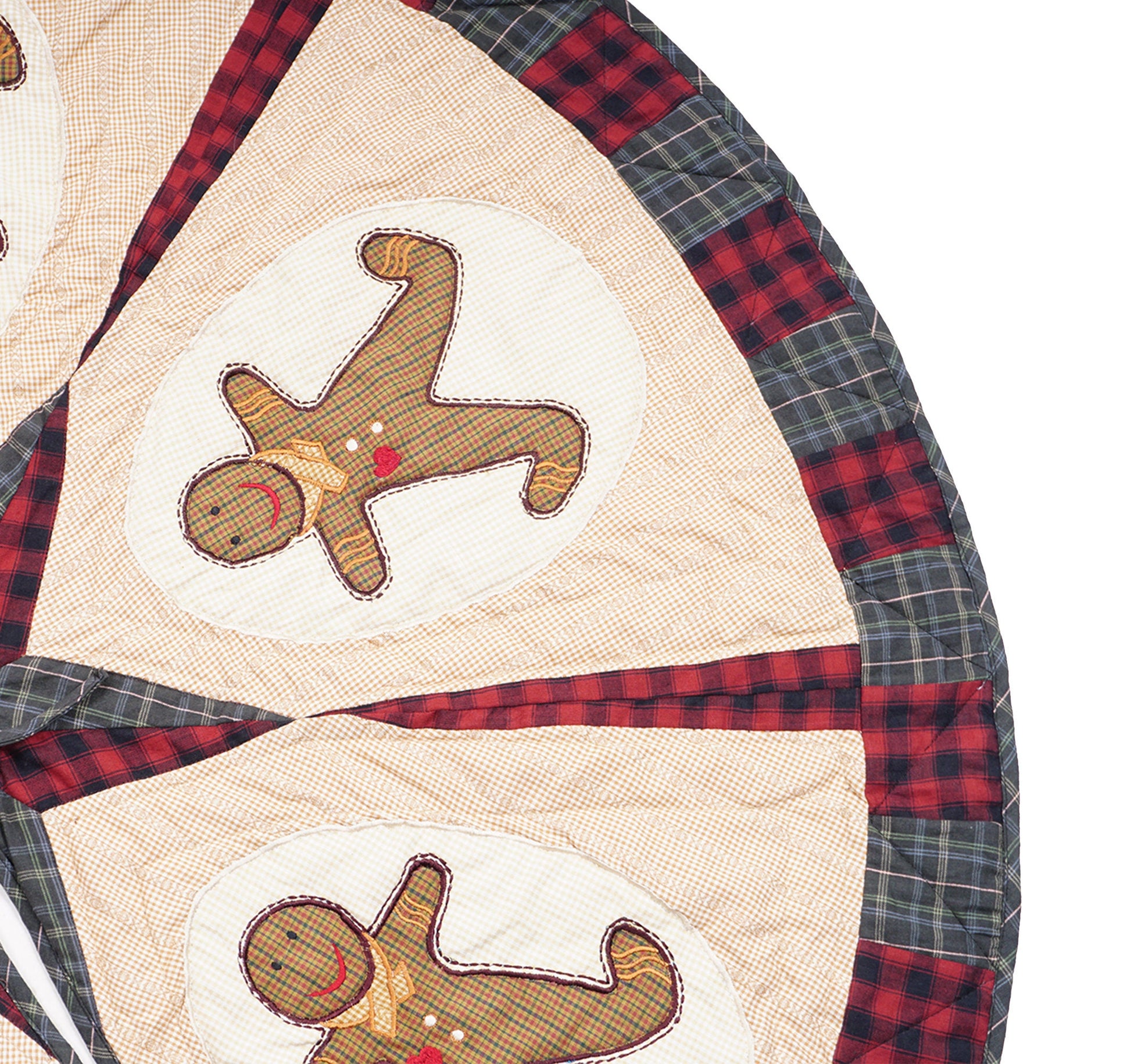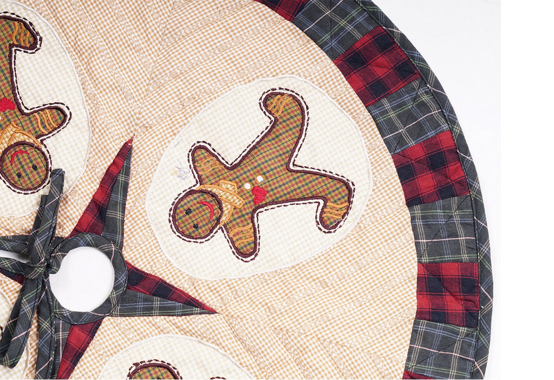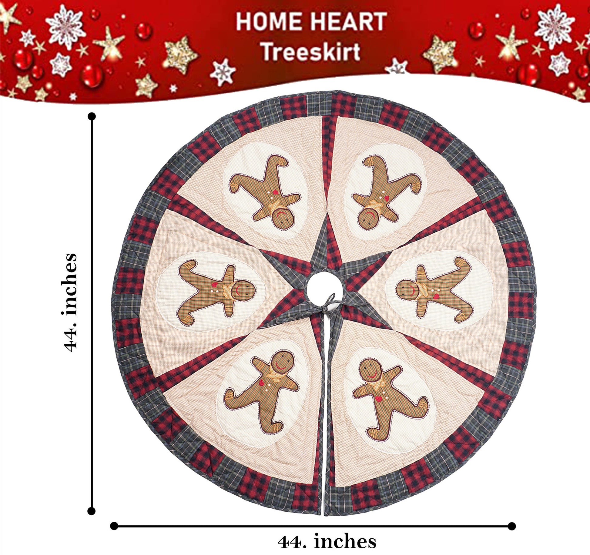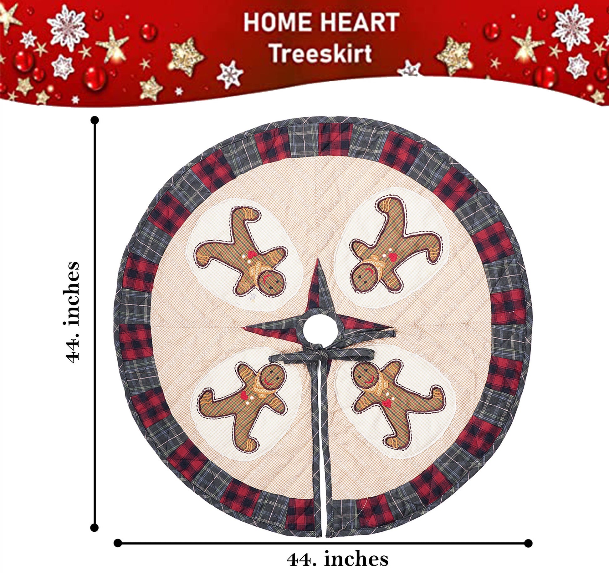 Christmas tree skirt quilted patchwork embroidered Ginger bread plaid thick Double Layer Heirloom by HOME HEART Brands(Made in India)
