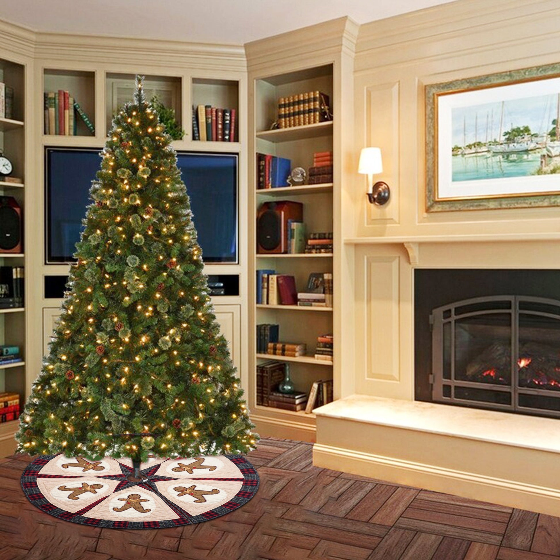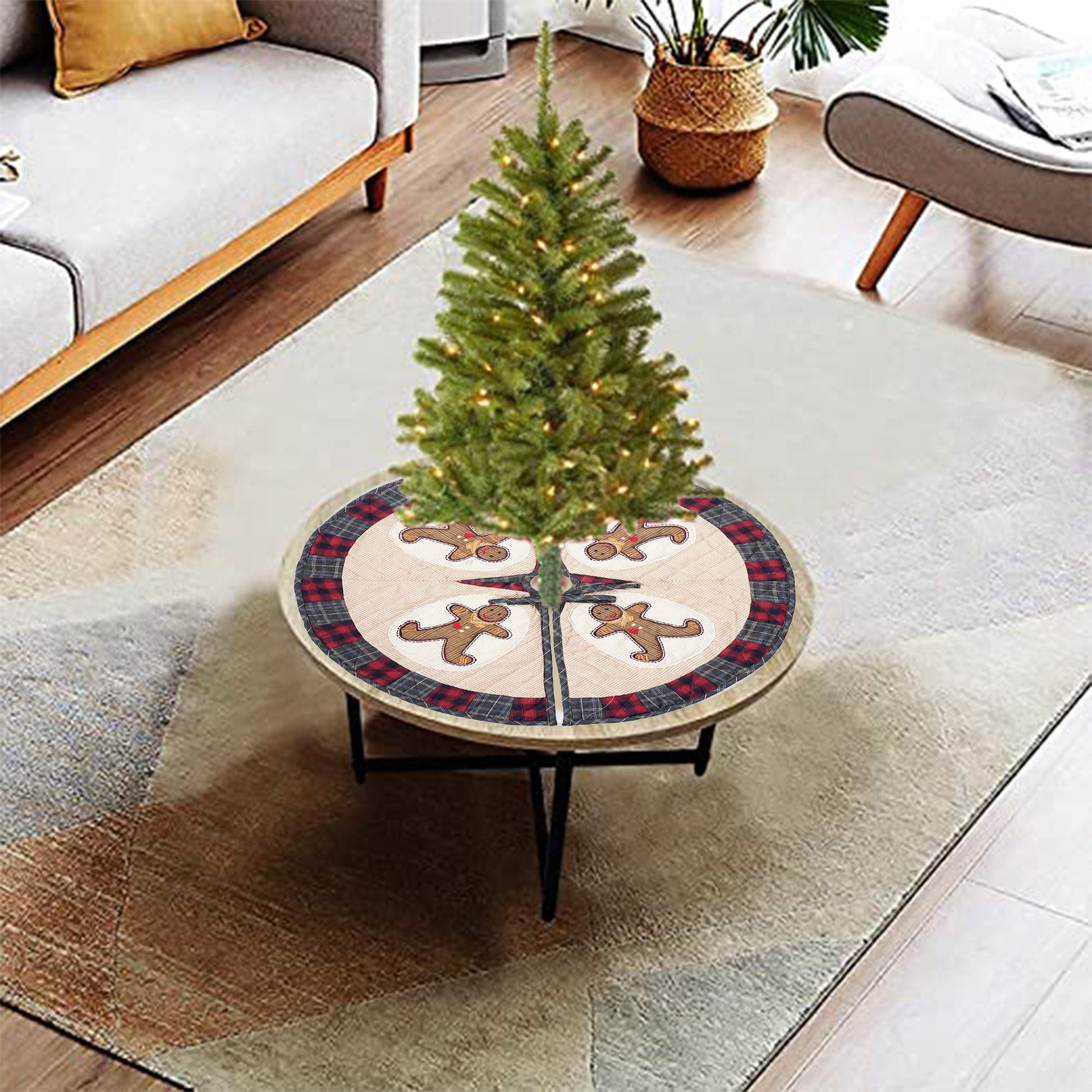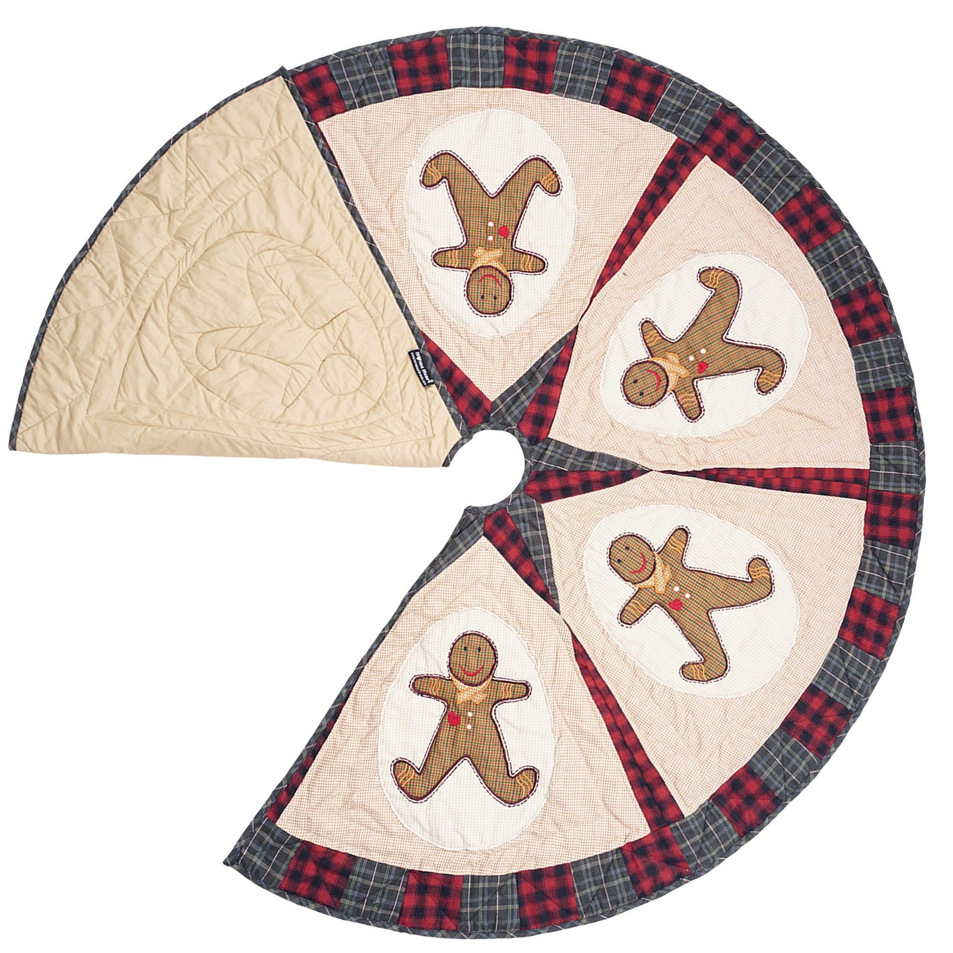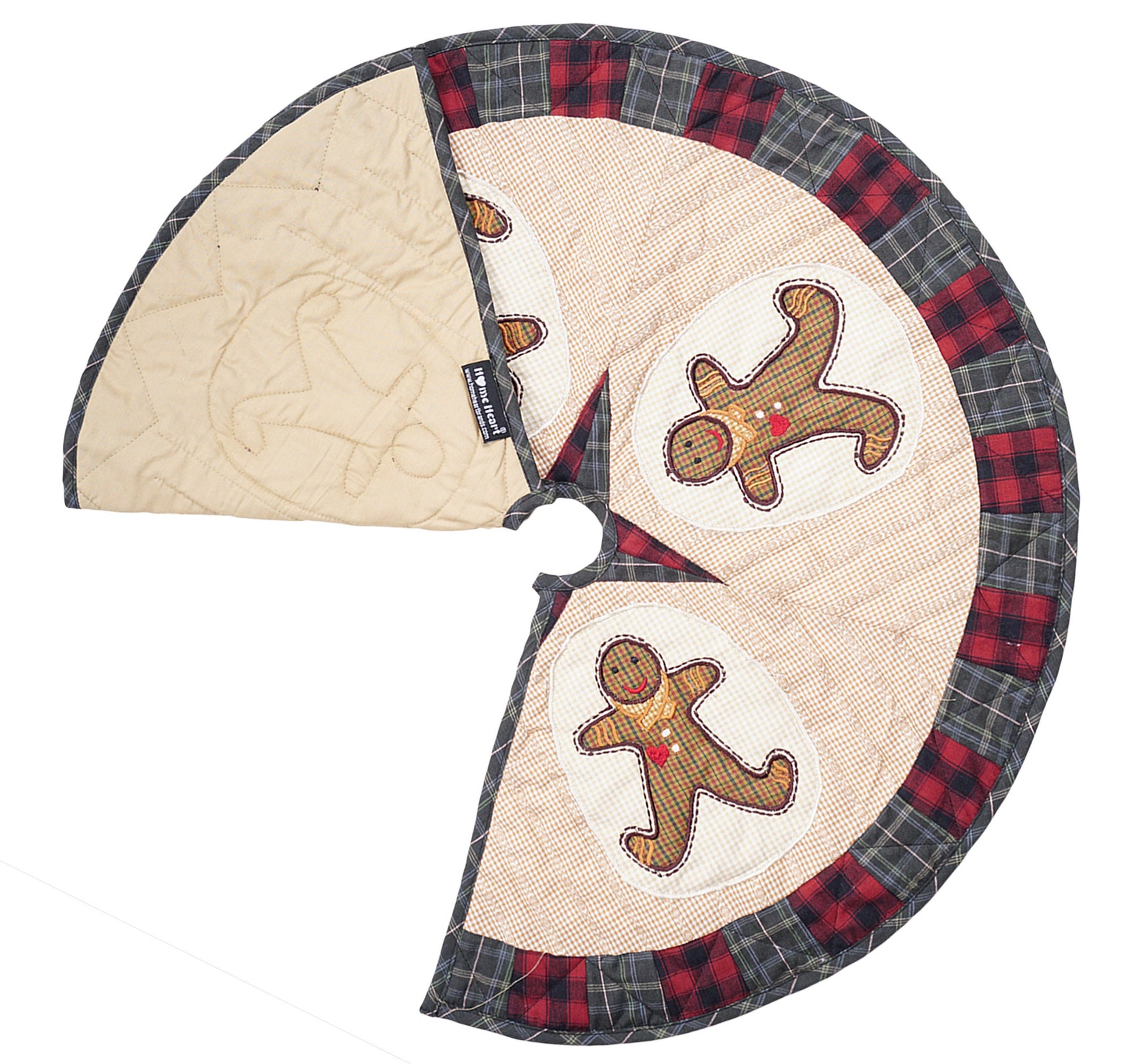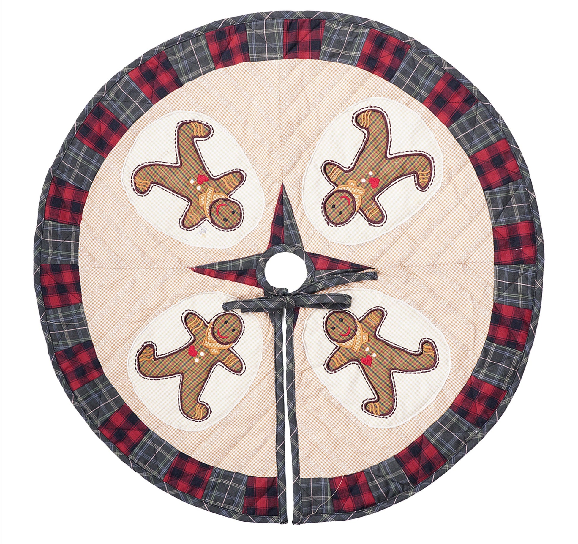 Christmas tree skirt quilted patchwork embroidered Ginger bread plaid thick Double Layer Heirloom by HOME HEART Brands(Made in India)