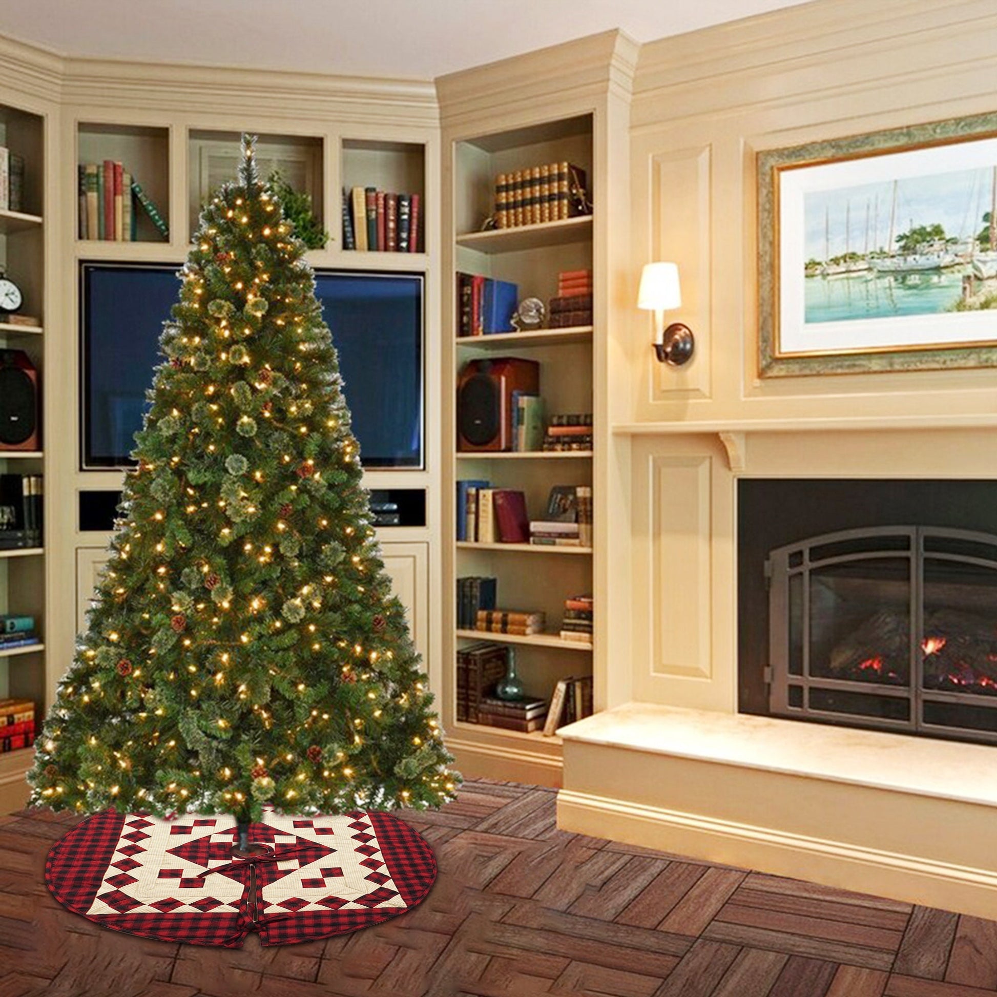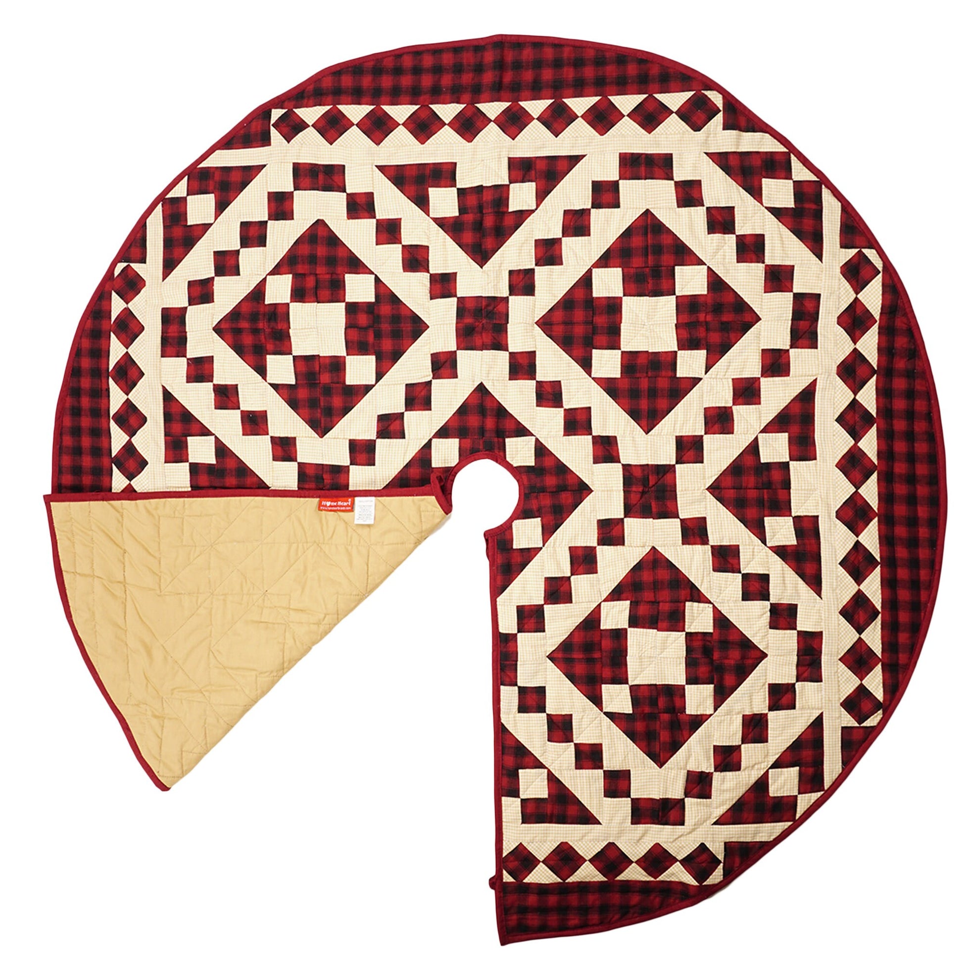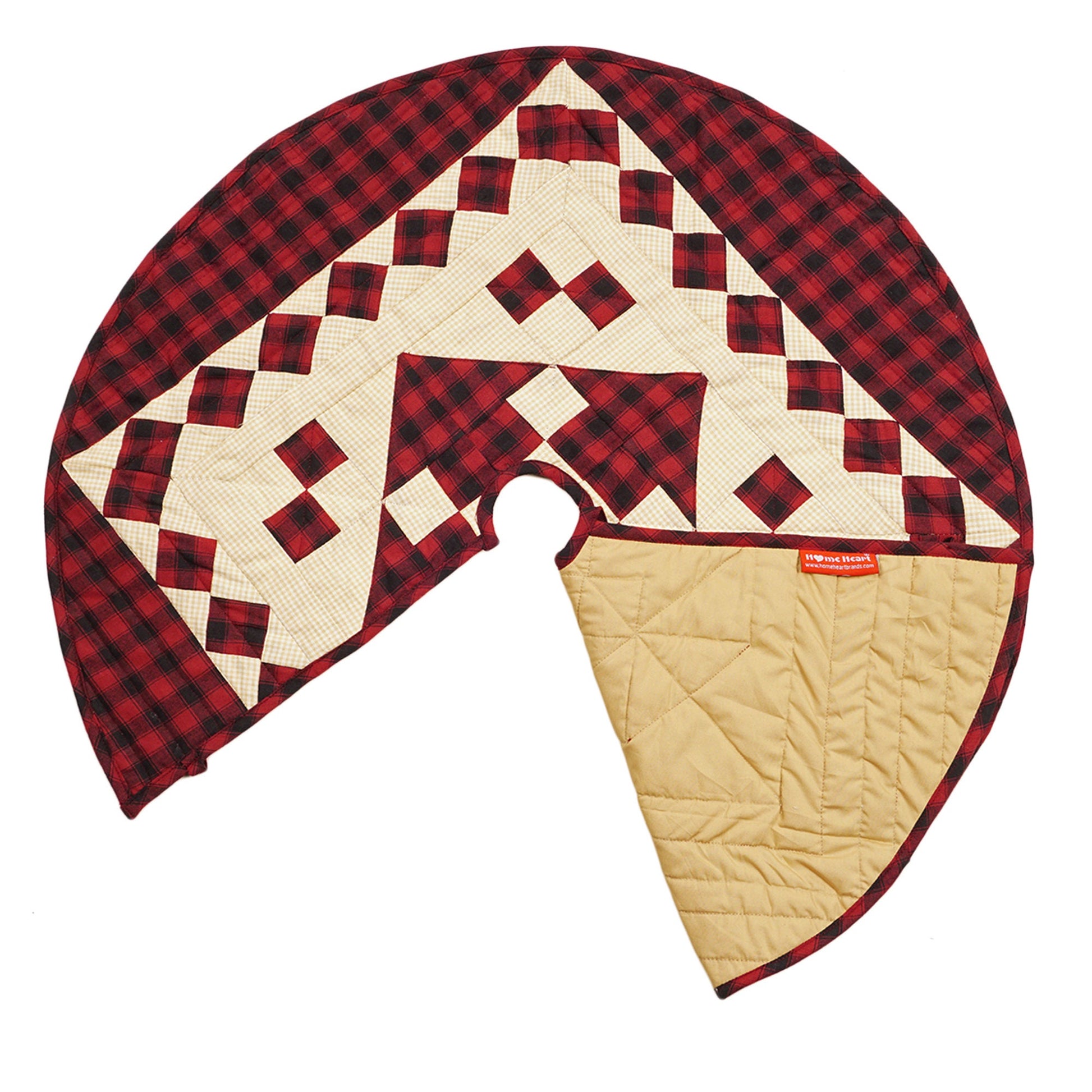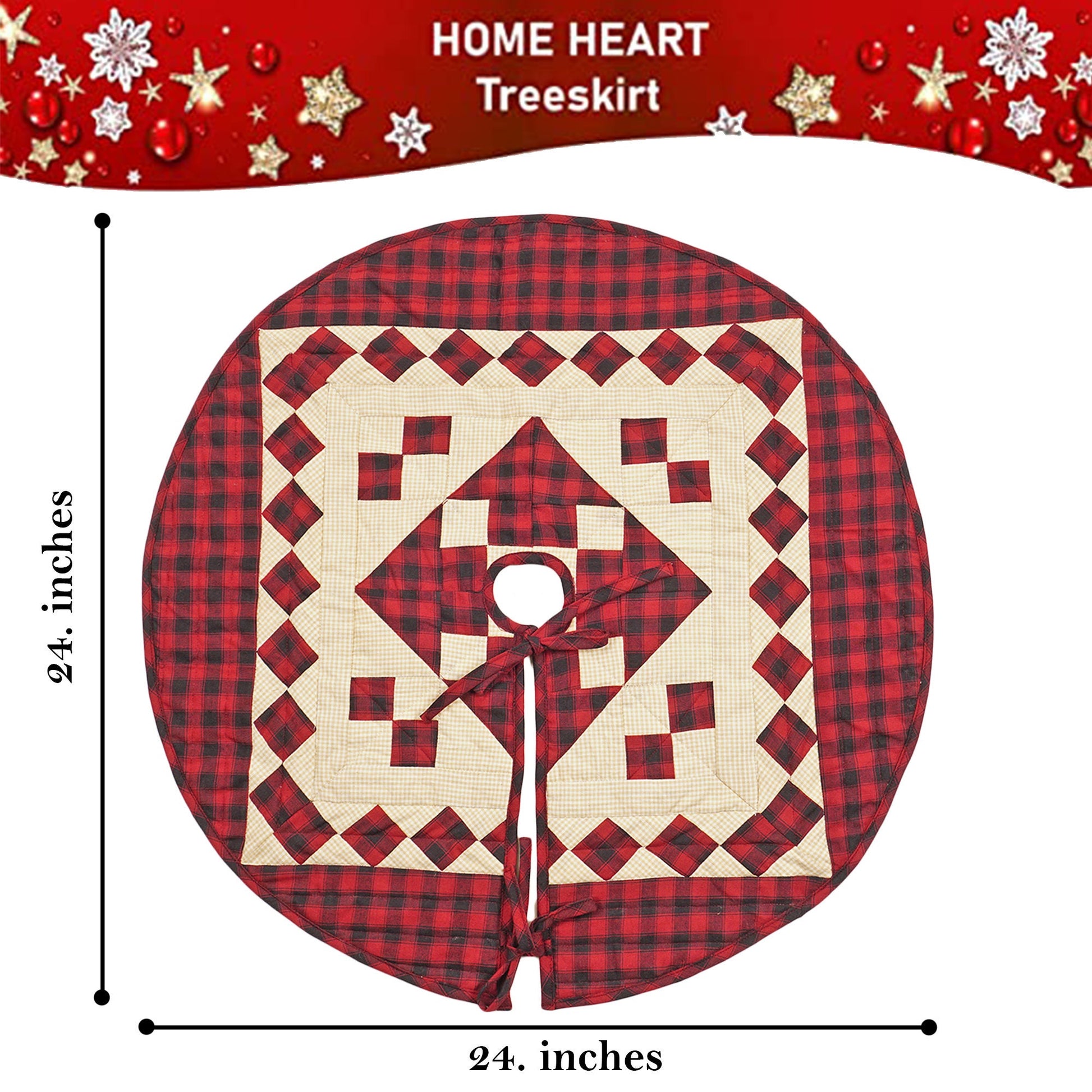 Christmas tree skirt quilted patchwork Red diamond square plaid Thick Double Layer Heirloom Quality by HOME HEART Brands(Made in India)