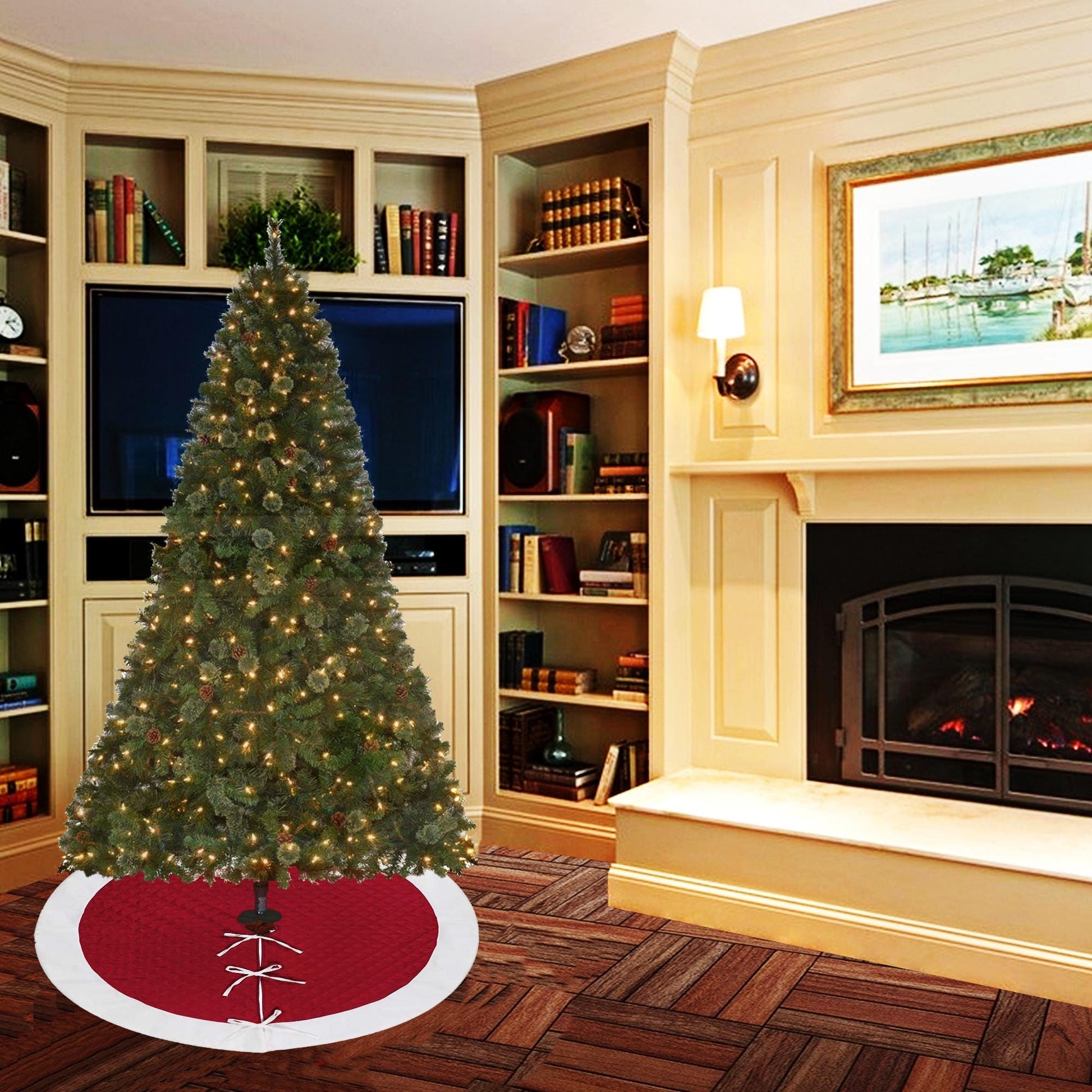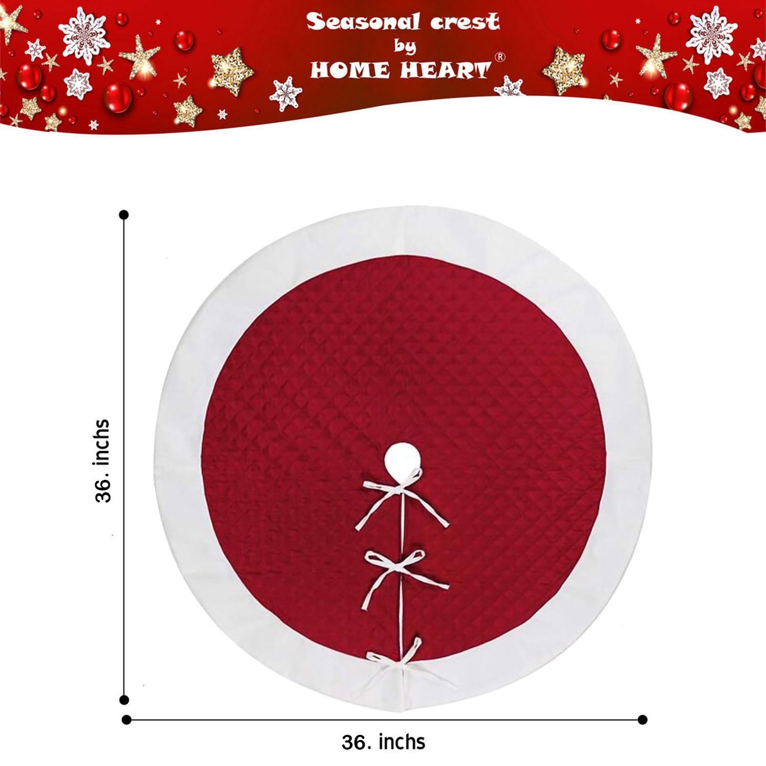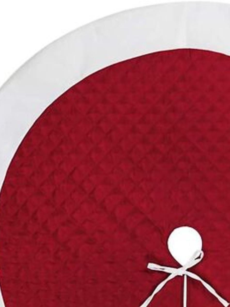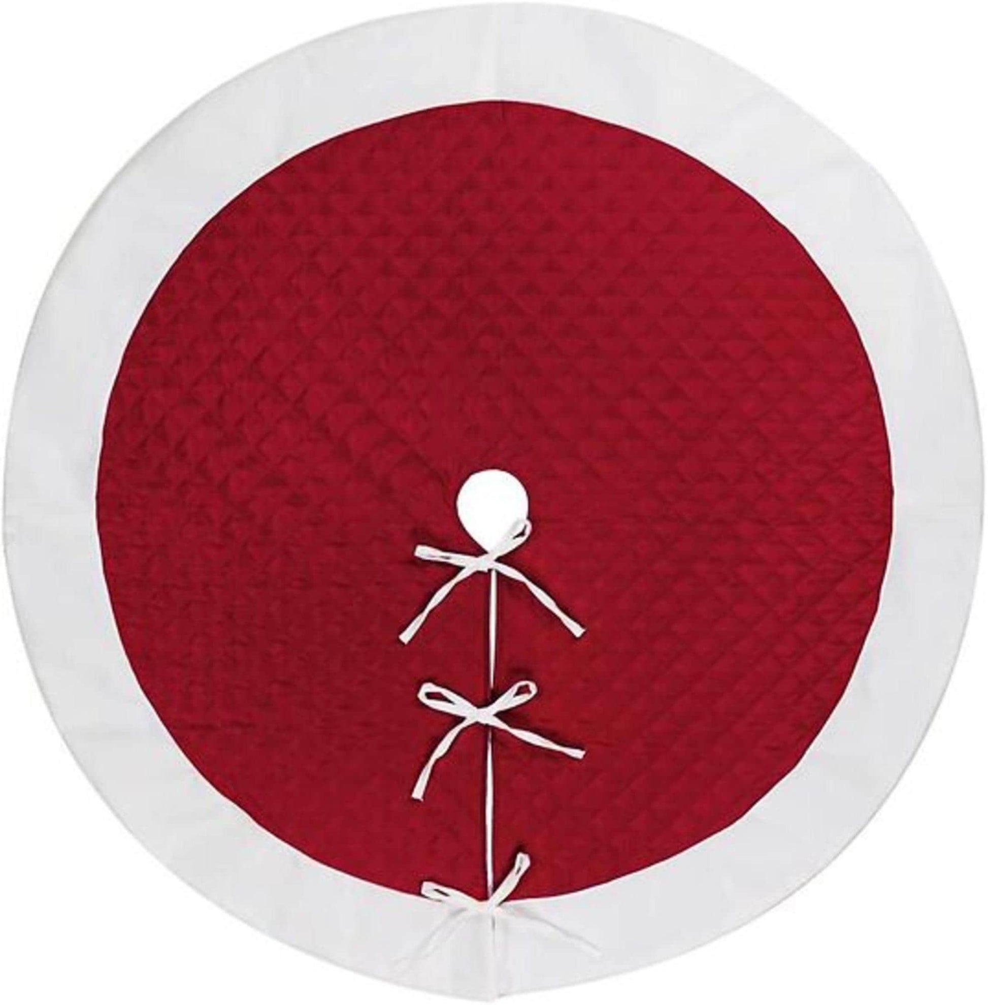Christmas tree skirt red faux silk plush white border quilted Thick Double Layer tree skirt by HOME HEART Brands