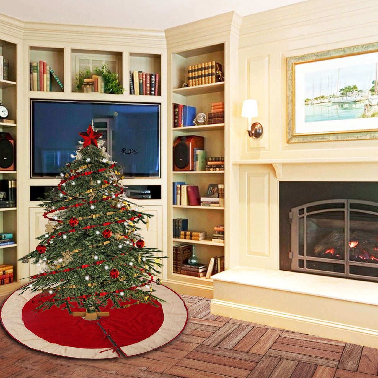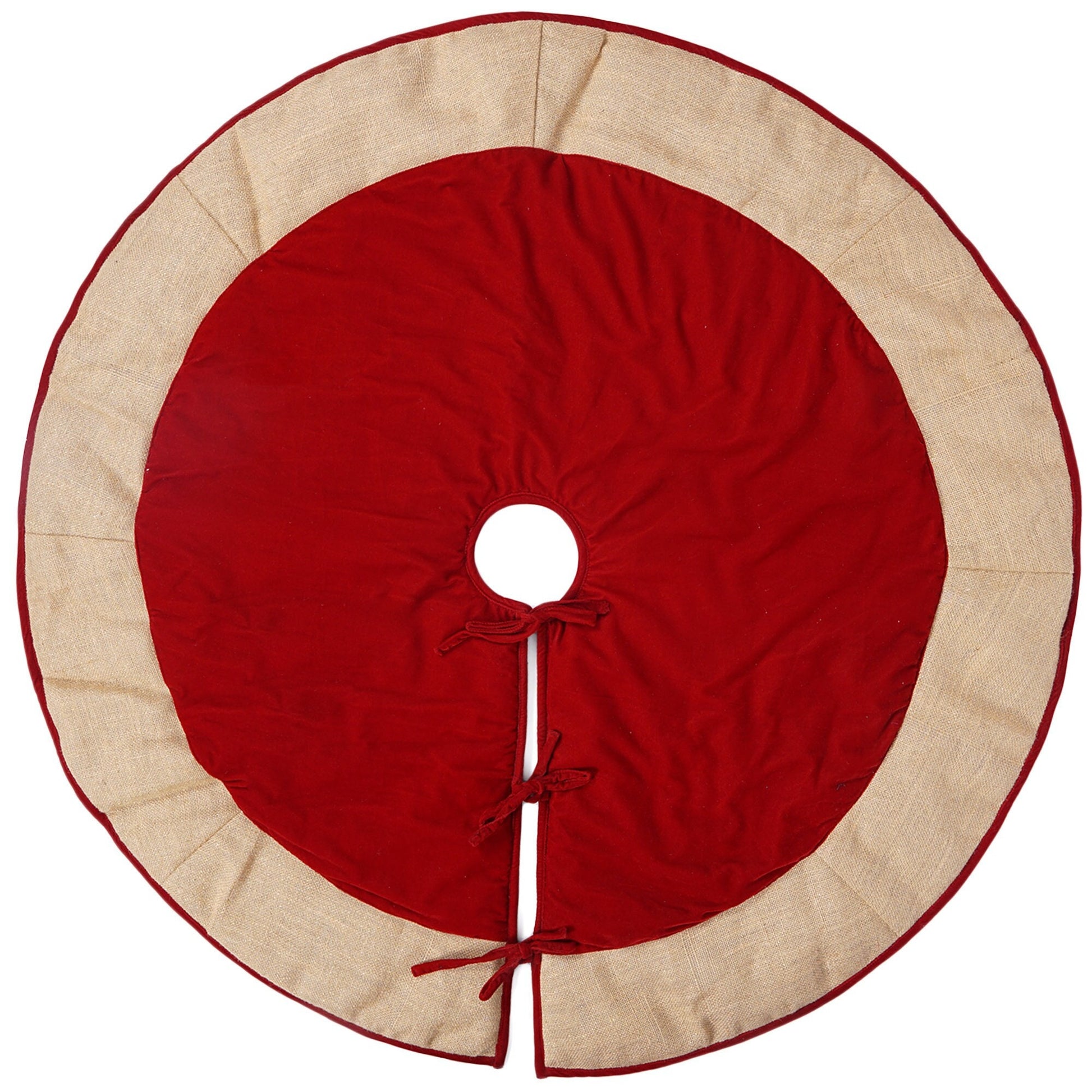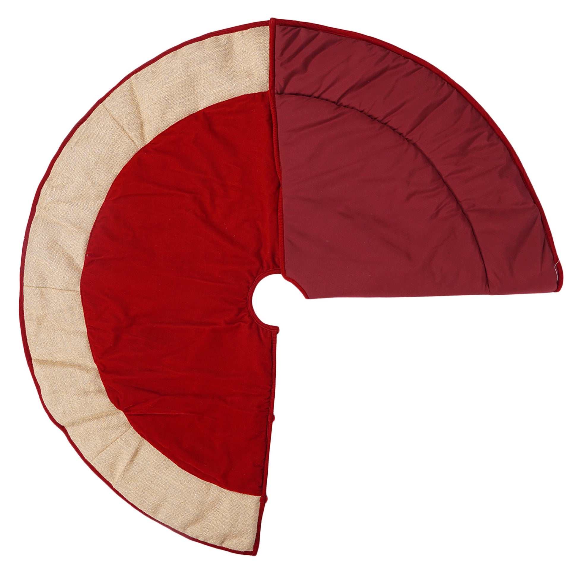 Christmas tree skirt red micro velvet with brown lurex burlap Thick Double Layer Heirloom Quality by HOME HEART Brands(Made in India)