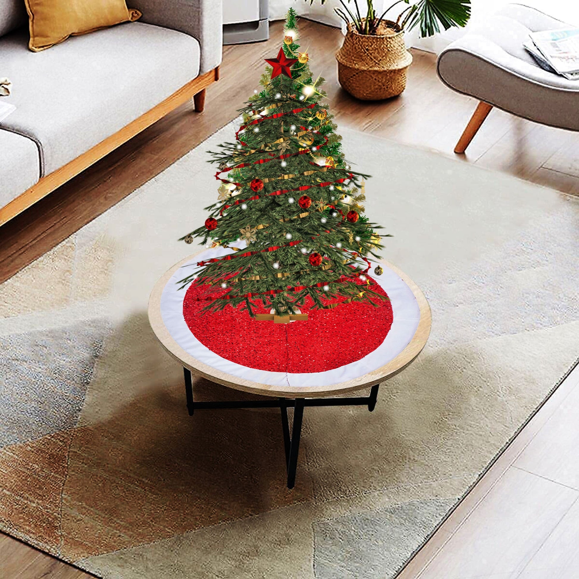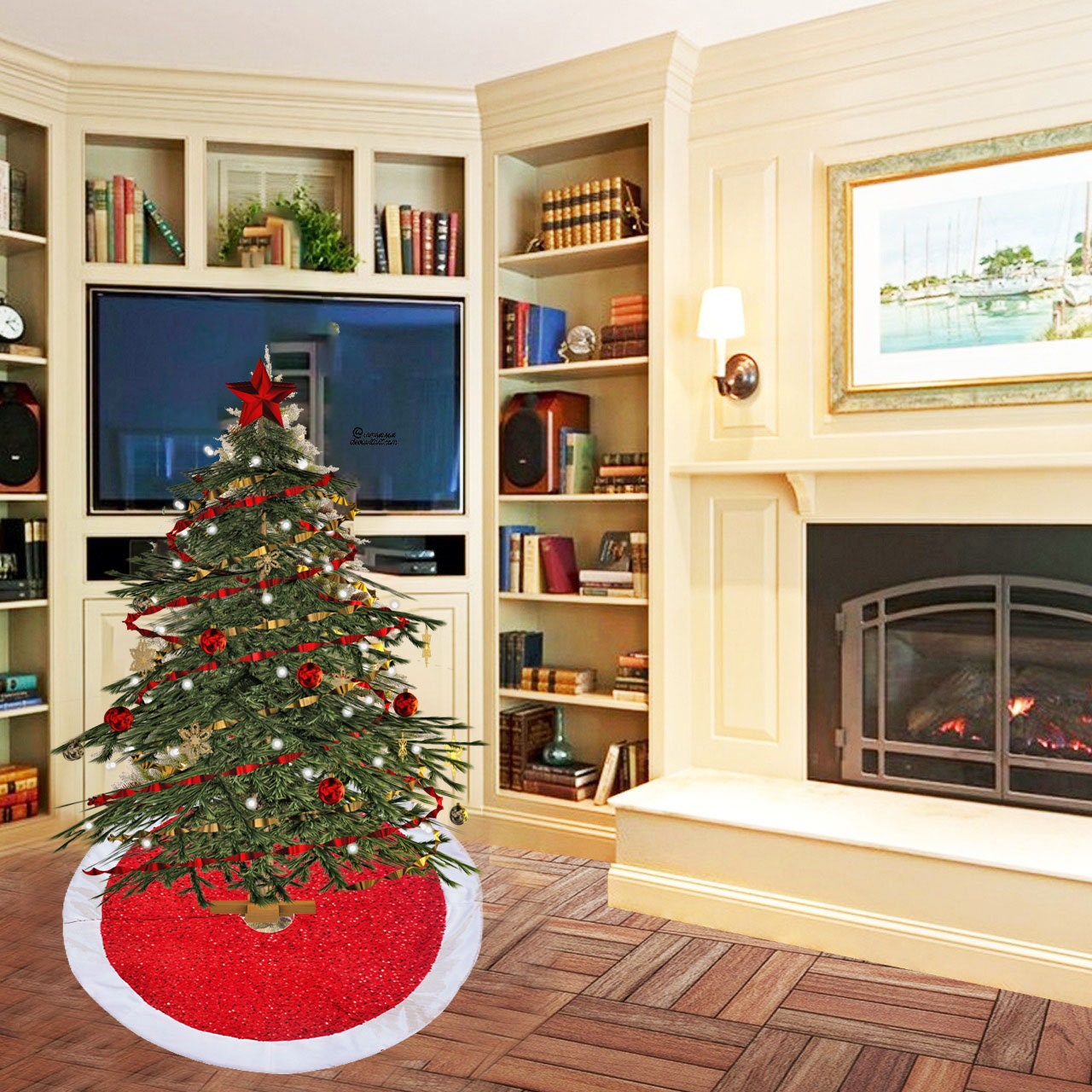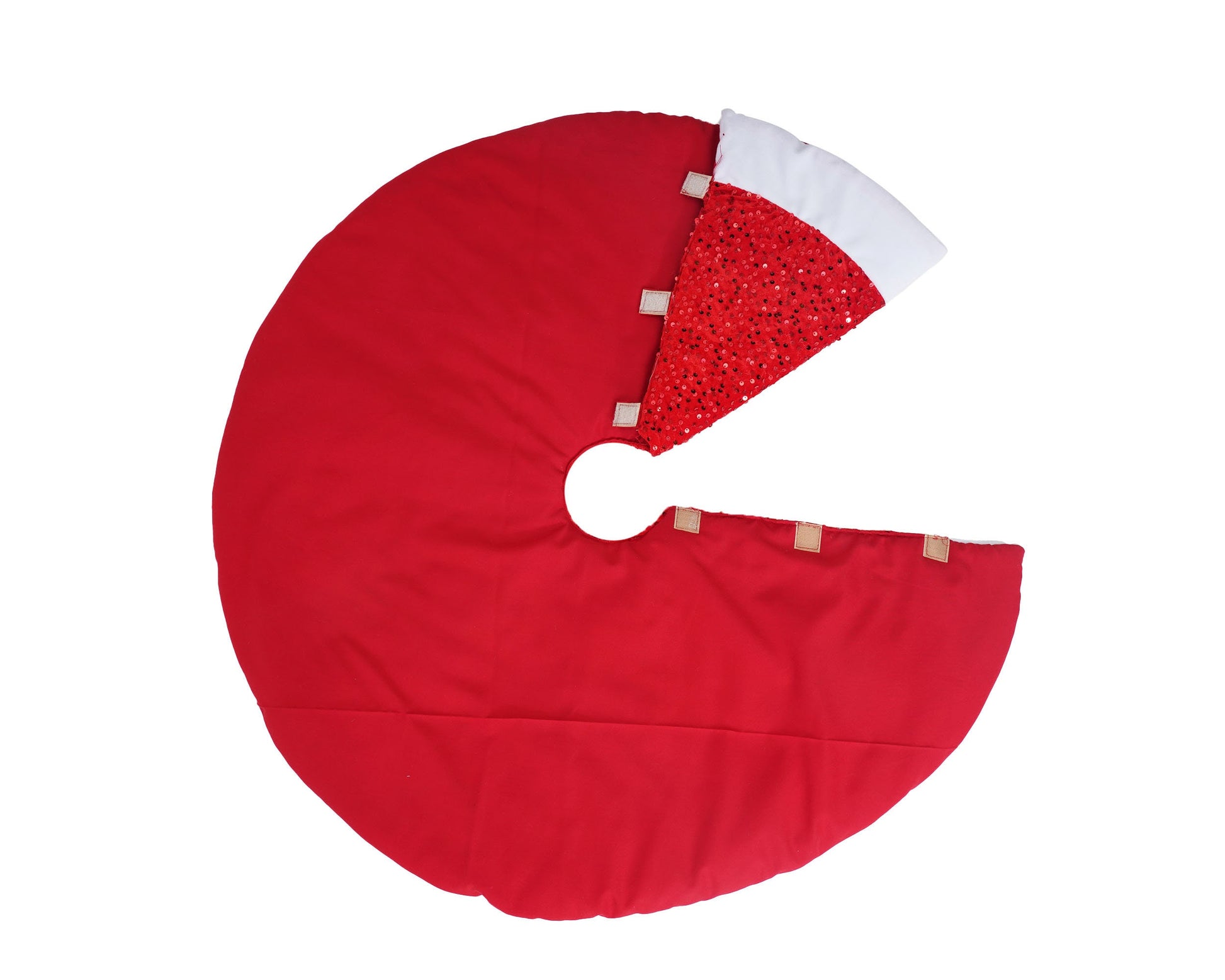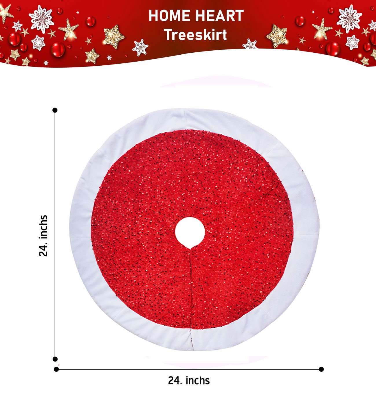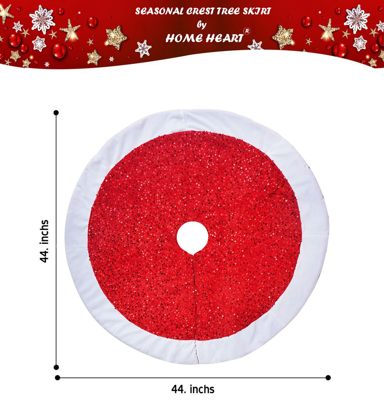 Christmas tree skirt Red Sequin Faux Velvet with White Faux Velvet Fabric Border Thick Double Layer by HOME HEART Brands
