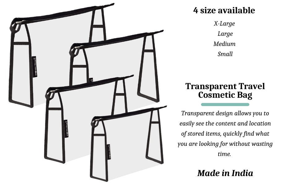 Clear Vinyl Organizer Toiletry Cosmetics Makeup Pouch Multi-purpose 4 ,3,2 pack X-Large Size 12"X7"X4" by HOME HEART Brands (Made in India)