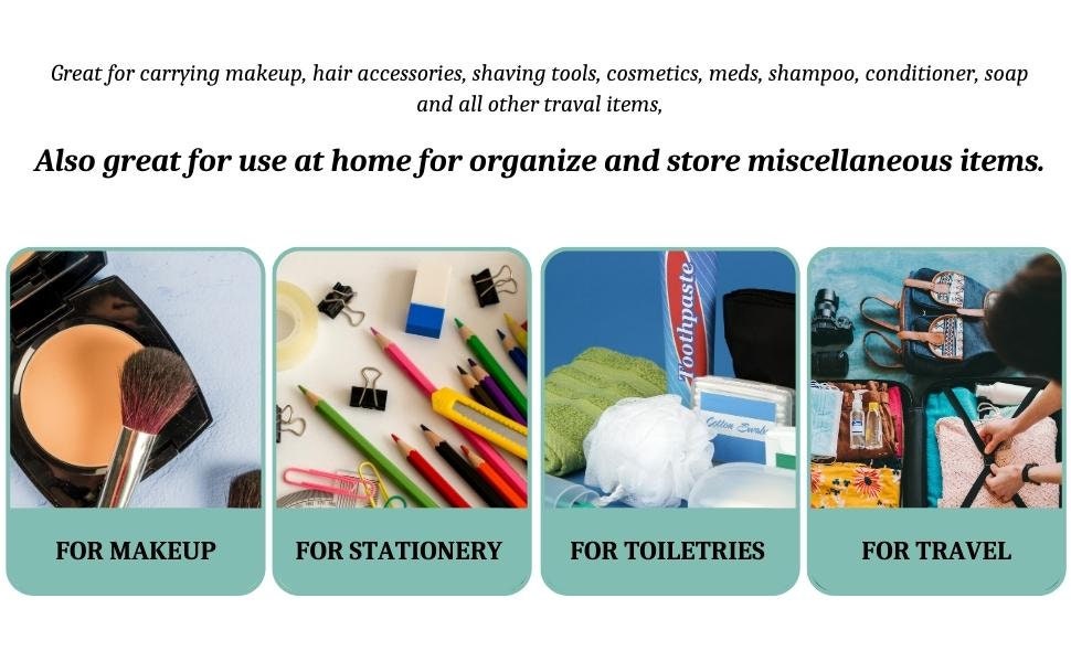 EVERYDAY USE -- Perfect for use at home, work, school. Best to organize cosmetic, baby's diaper, medicine, travel kit, makeup kit, laptop mobile accessory kit, undergarments kit