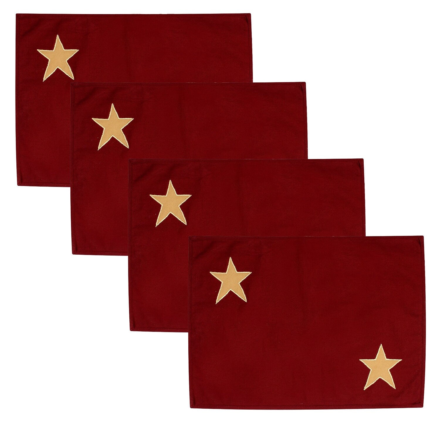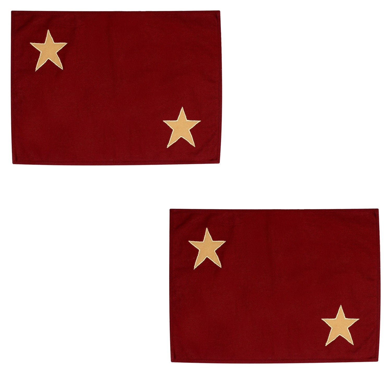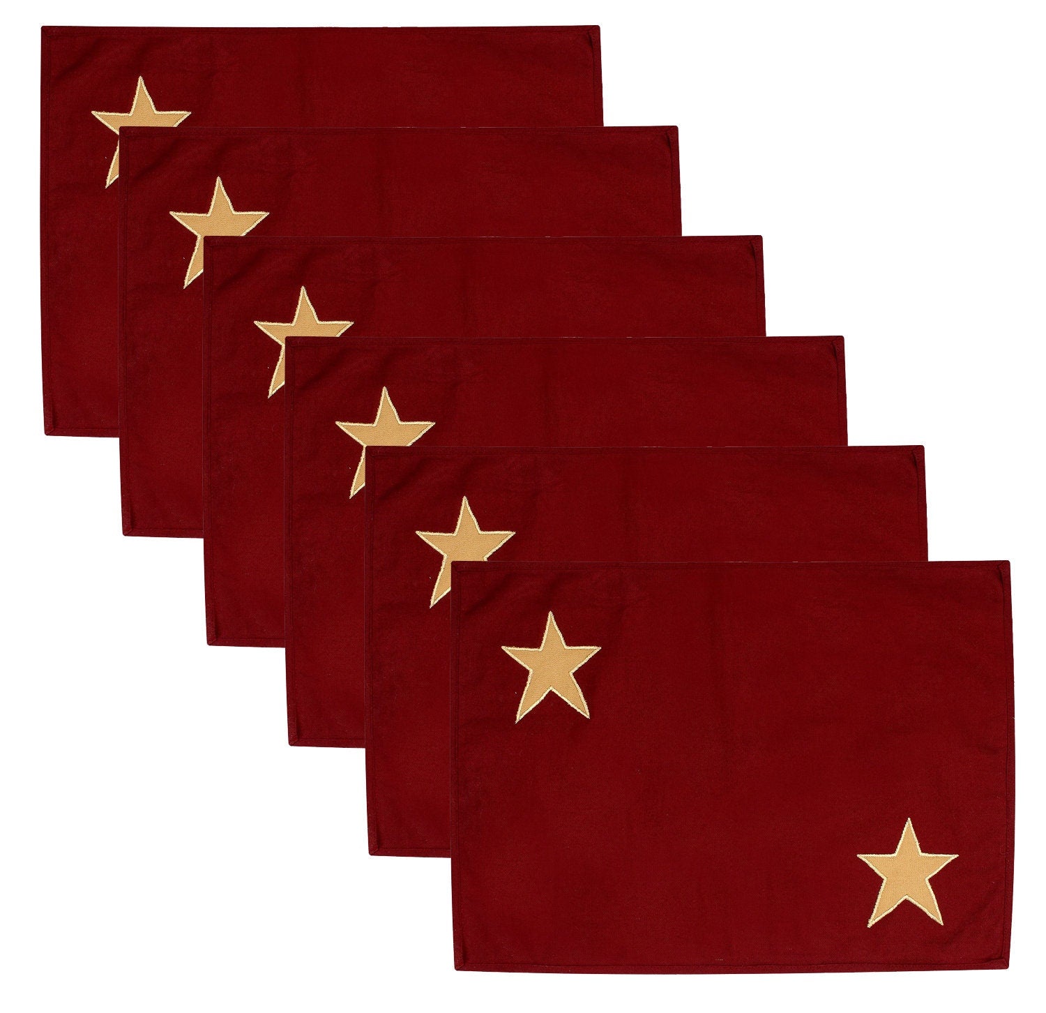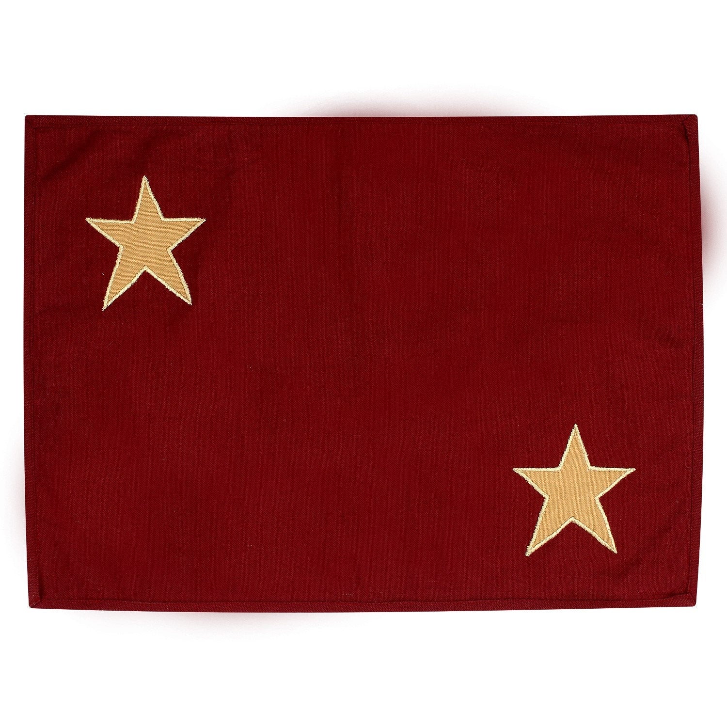 The placemat are made with dark red duck cotton fabric and beige star applique embroidered on it.