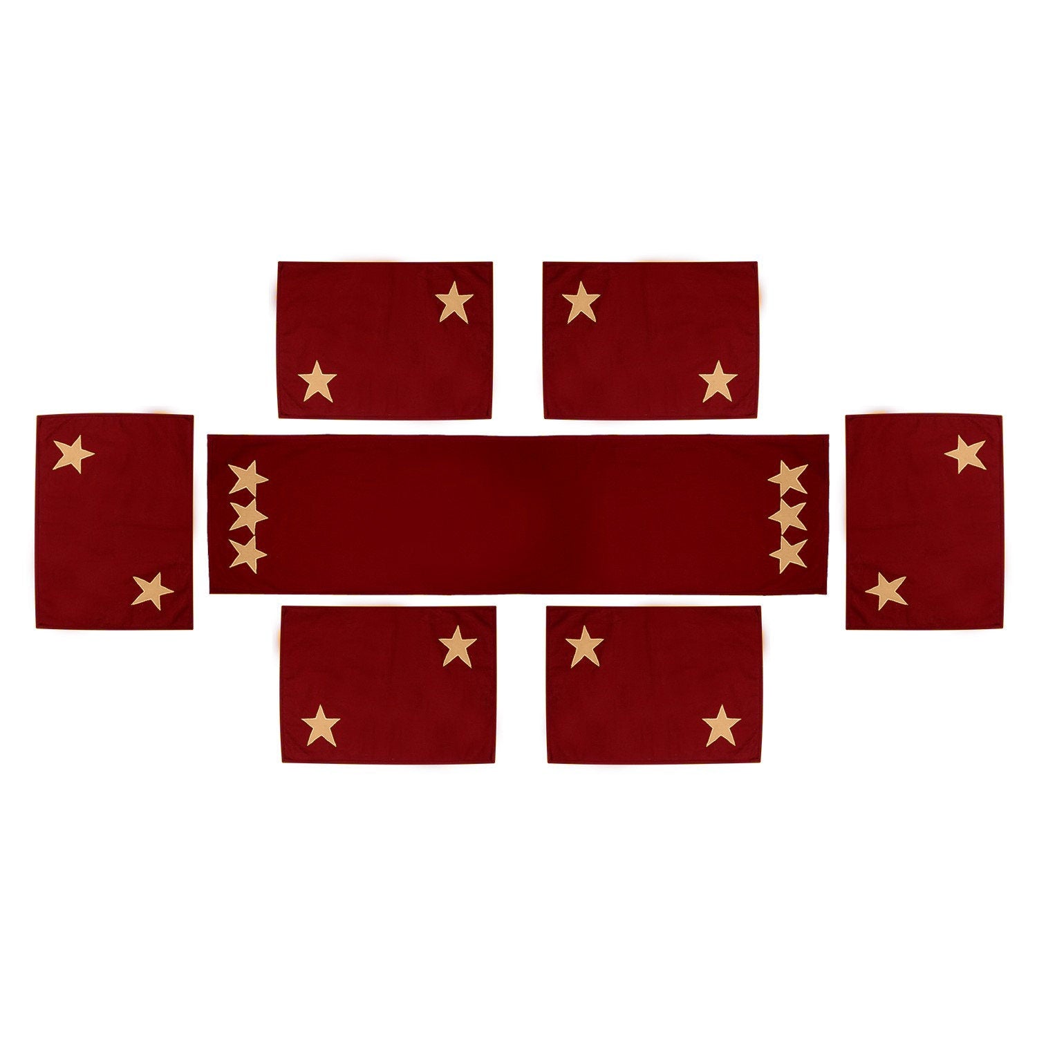 Cotton placemat & Toppers Premium tapestry cotton fabric dark red with beige star applique embroidered by Home Heart Brands(Made in India)