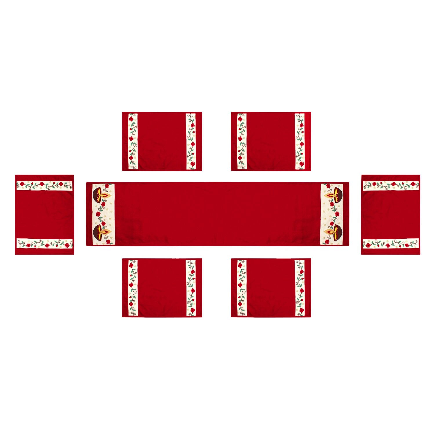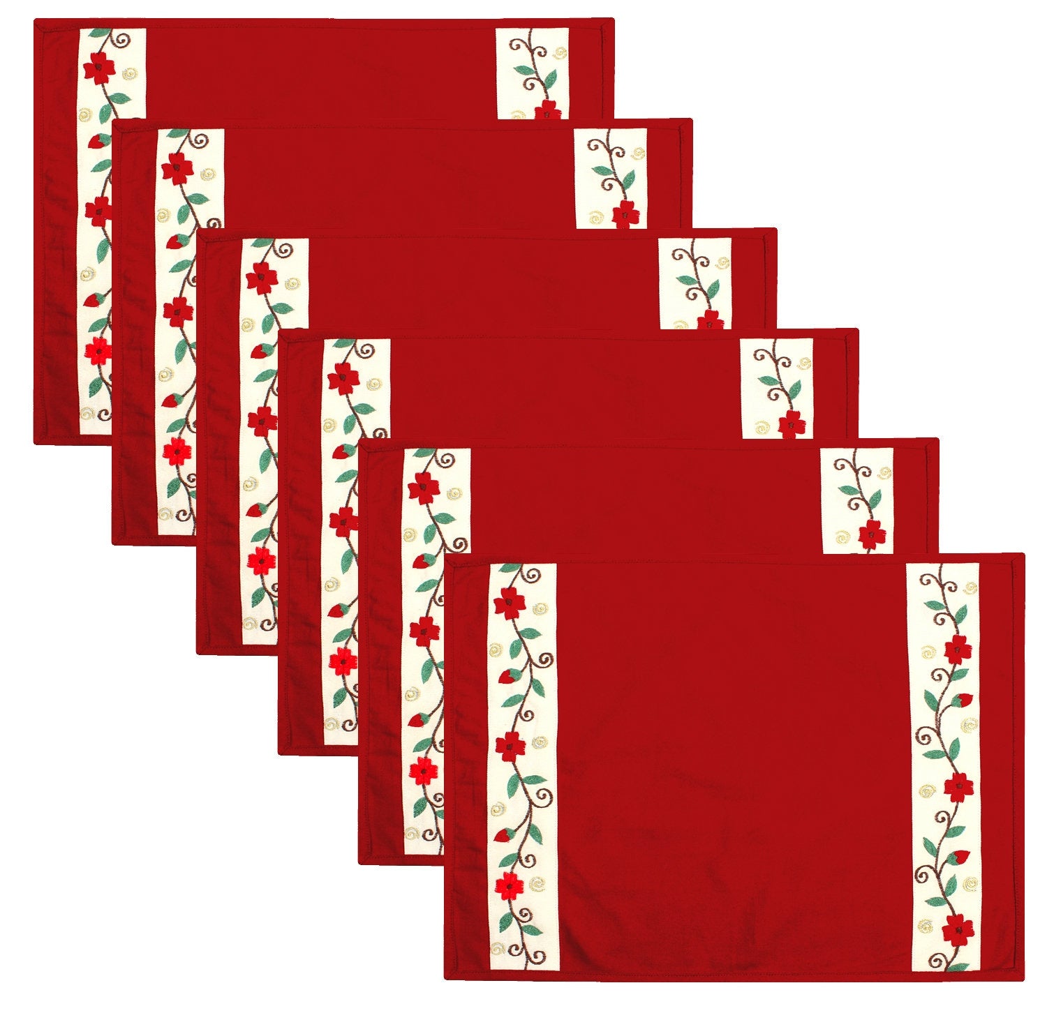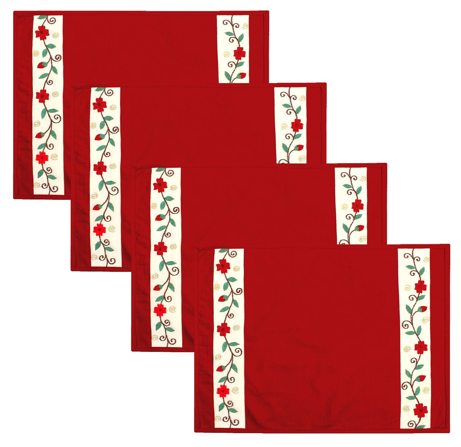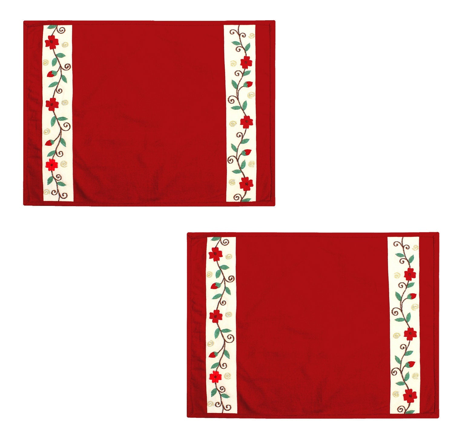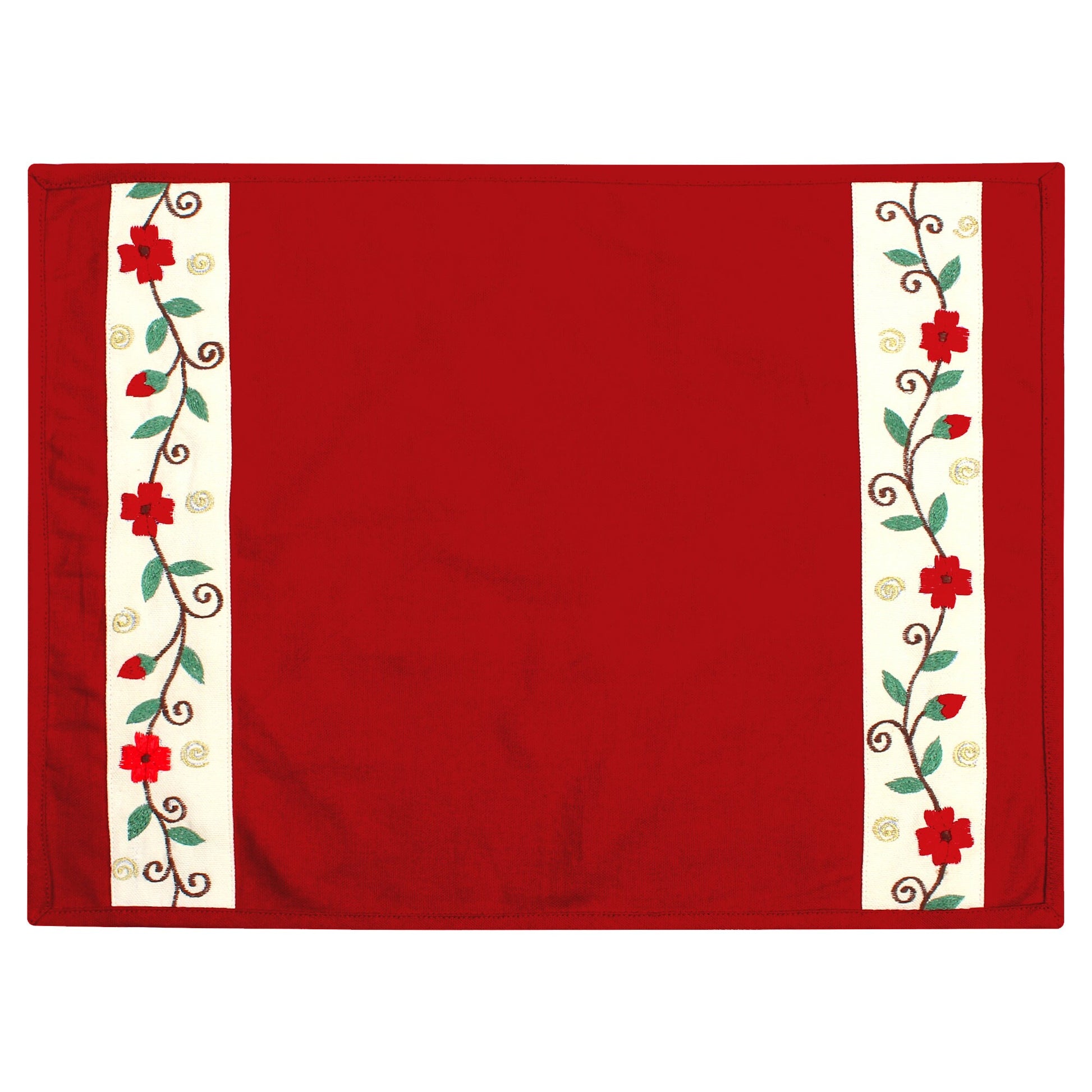 Cotton placemat & Toppers Premium tapestry cotton fabric red applique floral embroidered by Home Heart Brands(Made in India)
