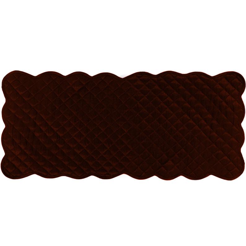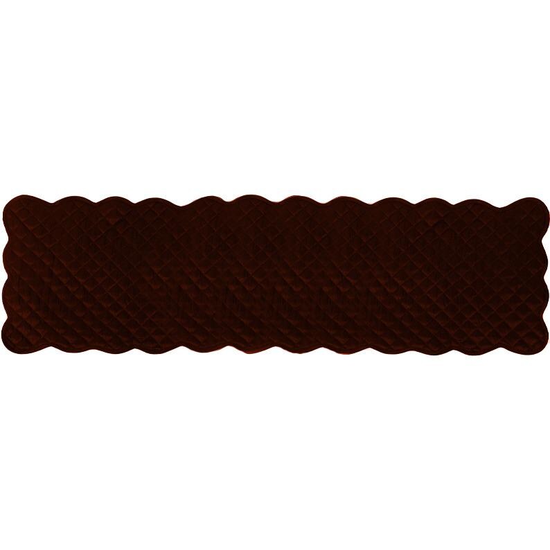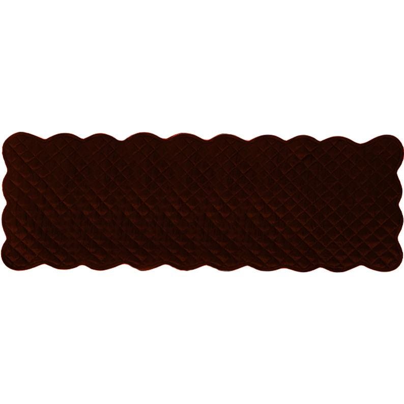 Design: The brown dupioni silk table runner features all-over quilting with a scalloped border.