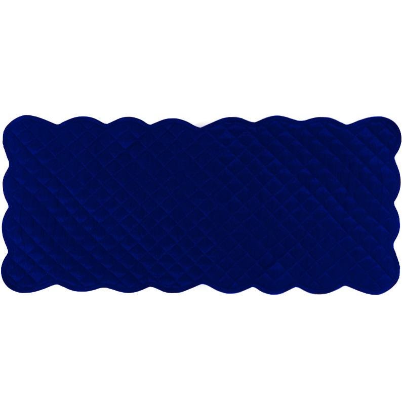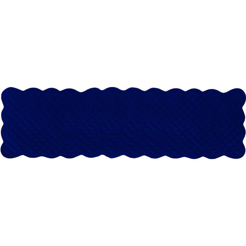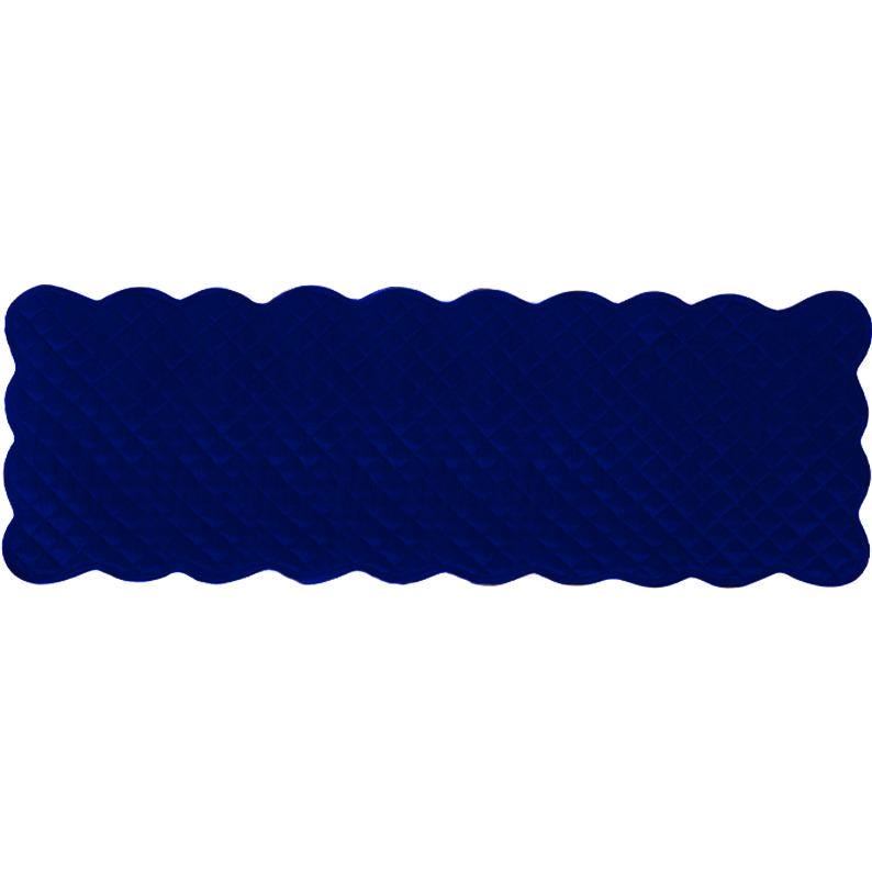 Design: The royal blue dupioni silk table runner features all-over quilting with a scalloped border.