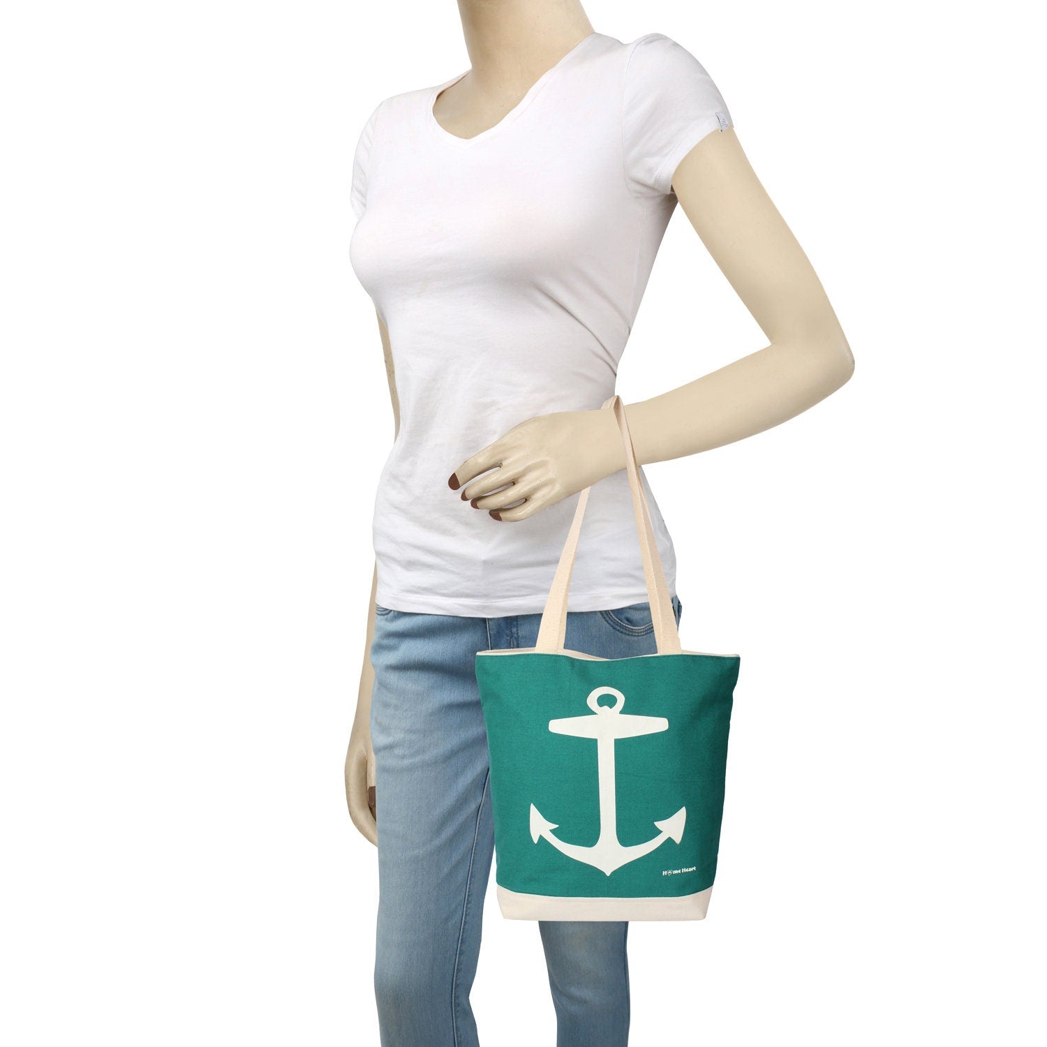 Hand bag Canvas shoulder duck cotton Tote Bag Nautical Anchor Theme 12oz with Pocket, Top for Shopping, Picnic, School , Travel, Beach