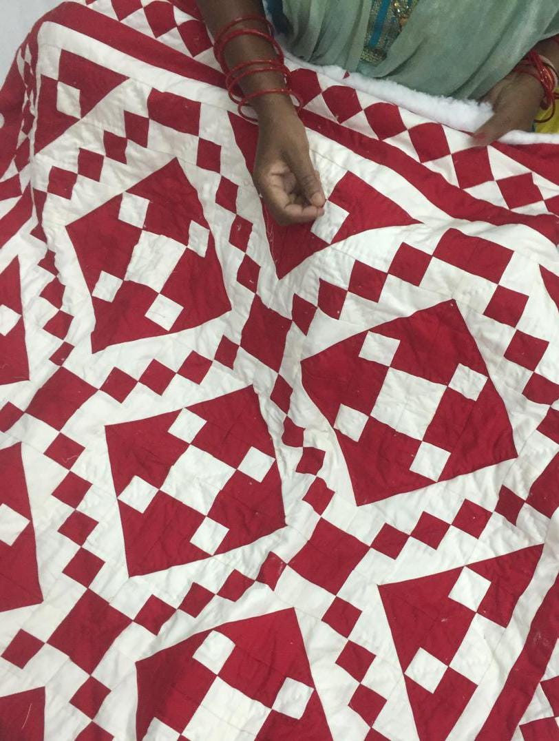Hand crafted quilt Hand Quilted bedspread heirloom red diamond square calico cotton fabric patchwork Design by HOME HEART Brands