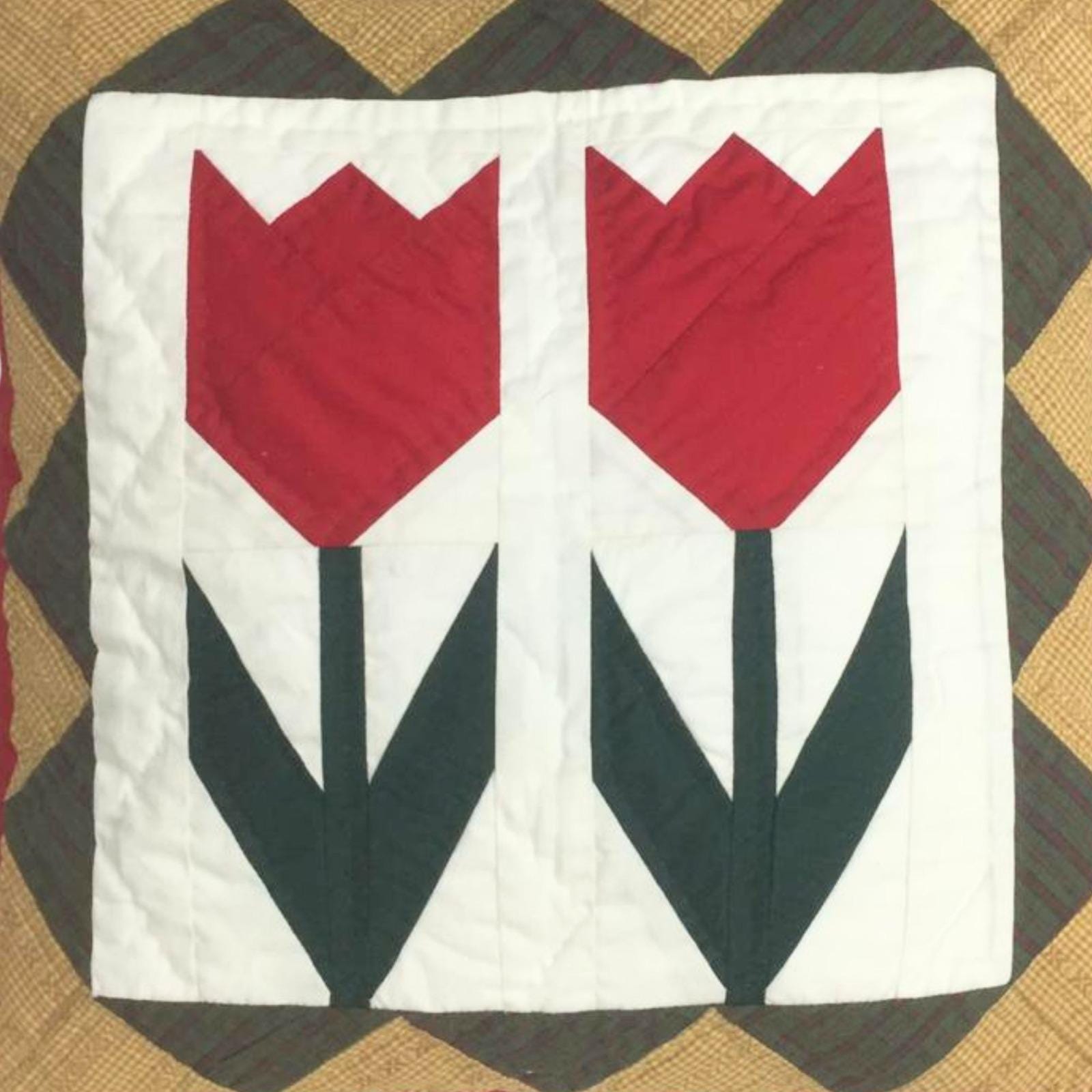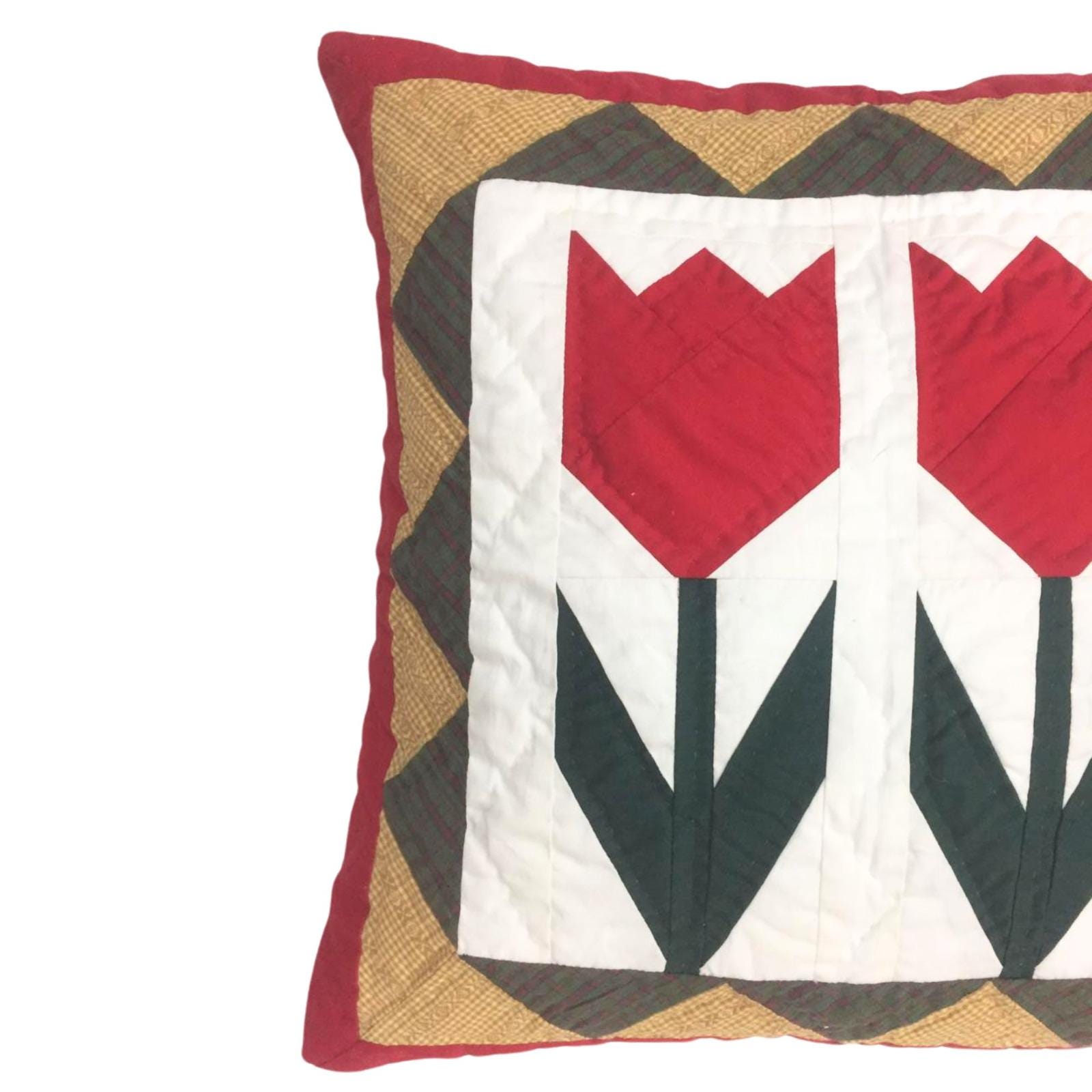Hand mad hand Quilted TULIP patchwork pillow cover, cushion cover, throw pillow Calico red offwhite by HOME HEART Brands(made in India)