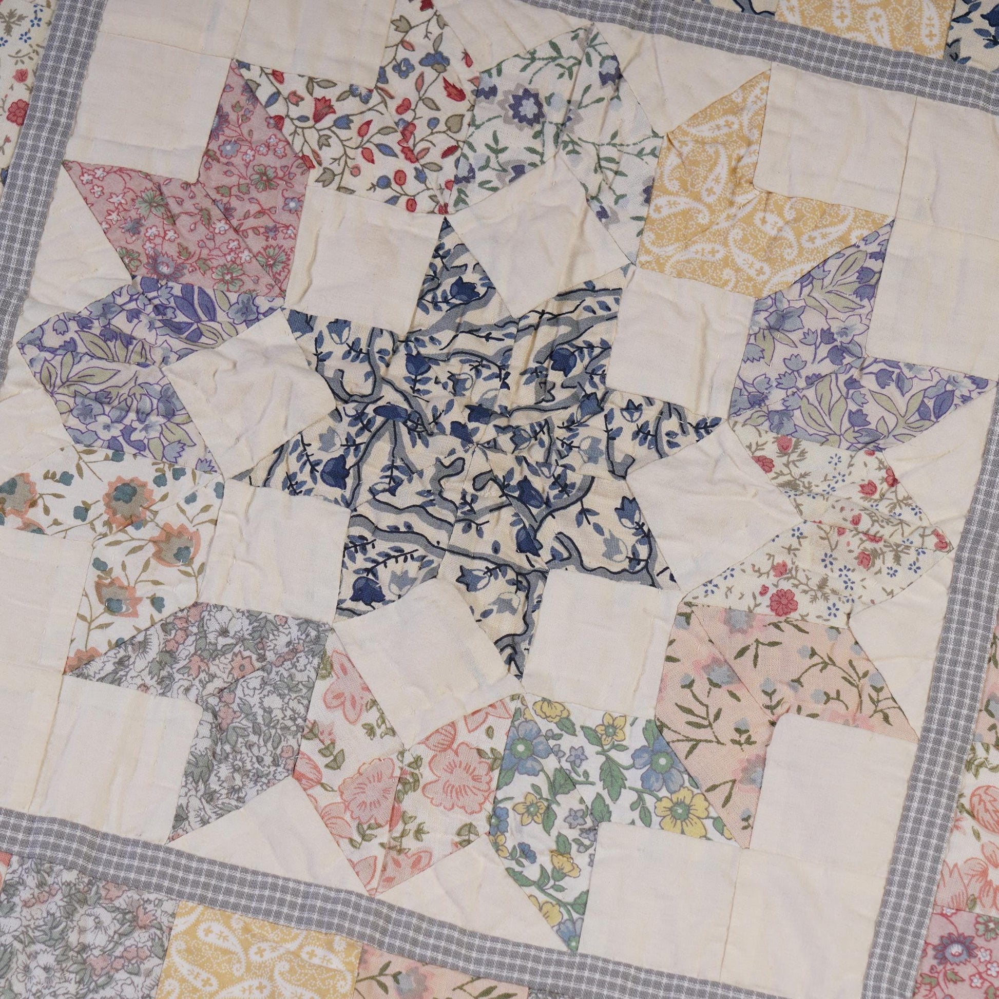 Hand made Calico Floral North Star 44"x44" country Cotton Hand Quilted patchwork Wall hanging & Toppers, baby quilt by HOME HEART Brands