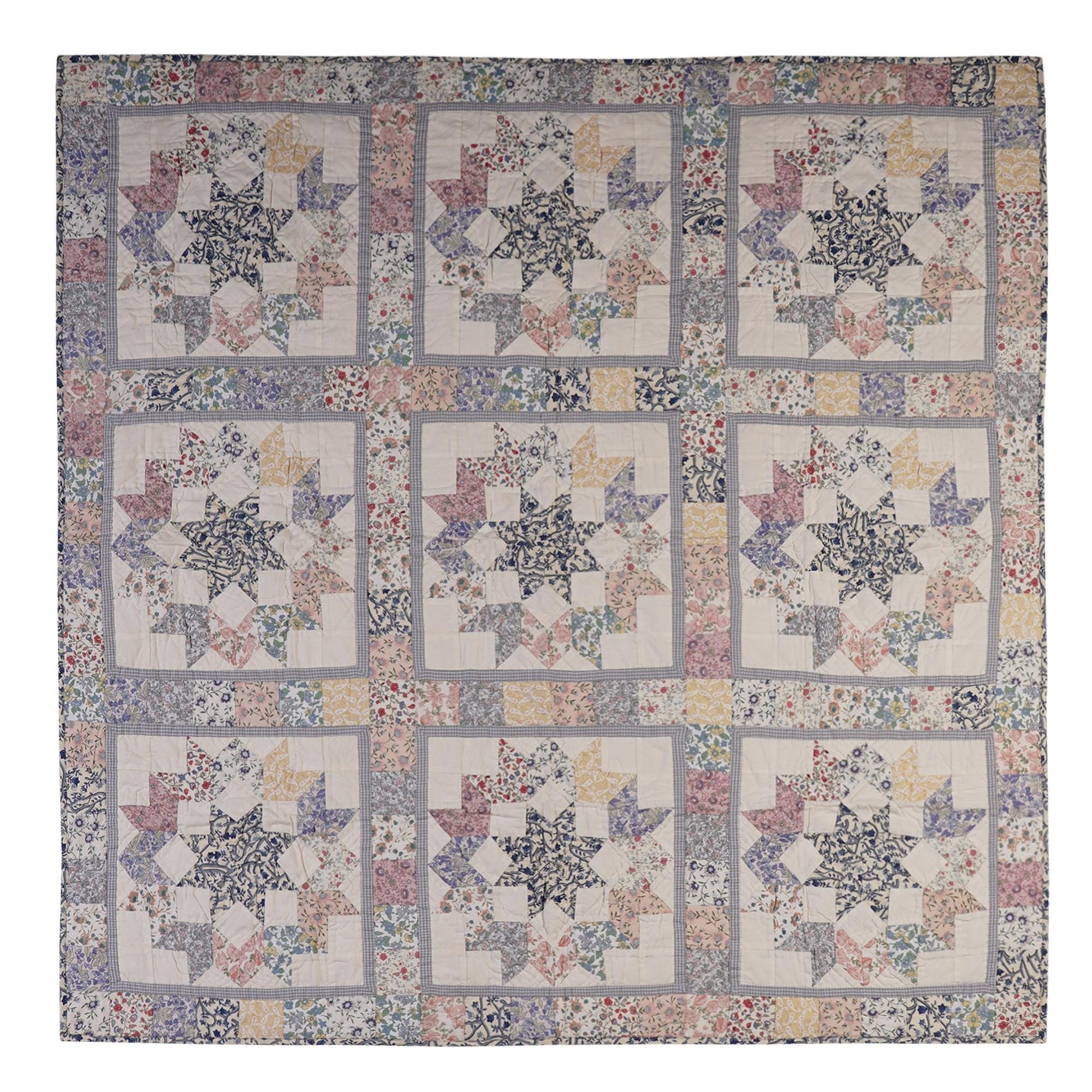 Made of Patchwork mix prints and Off-White Calico cotton fabric padded with surgical type cotton for a beautiful hand quilting creating a north star pattern.