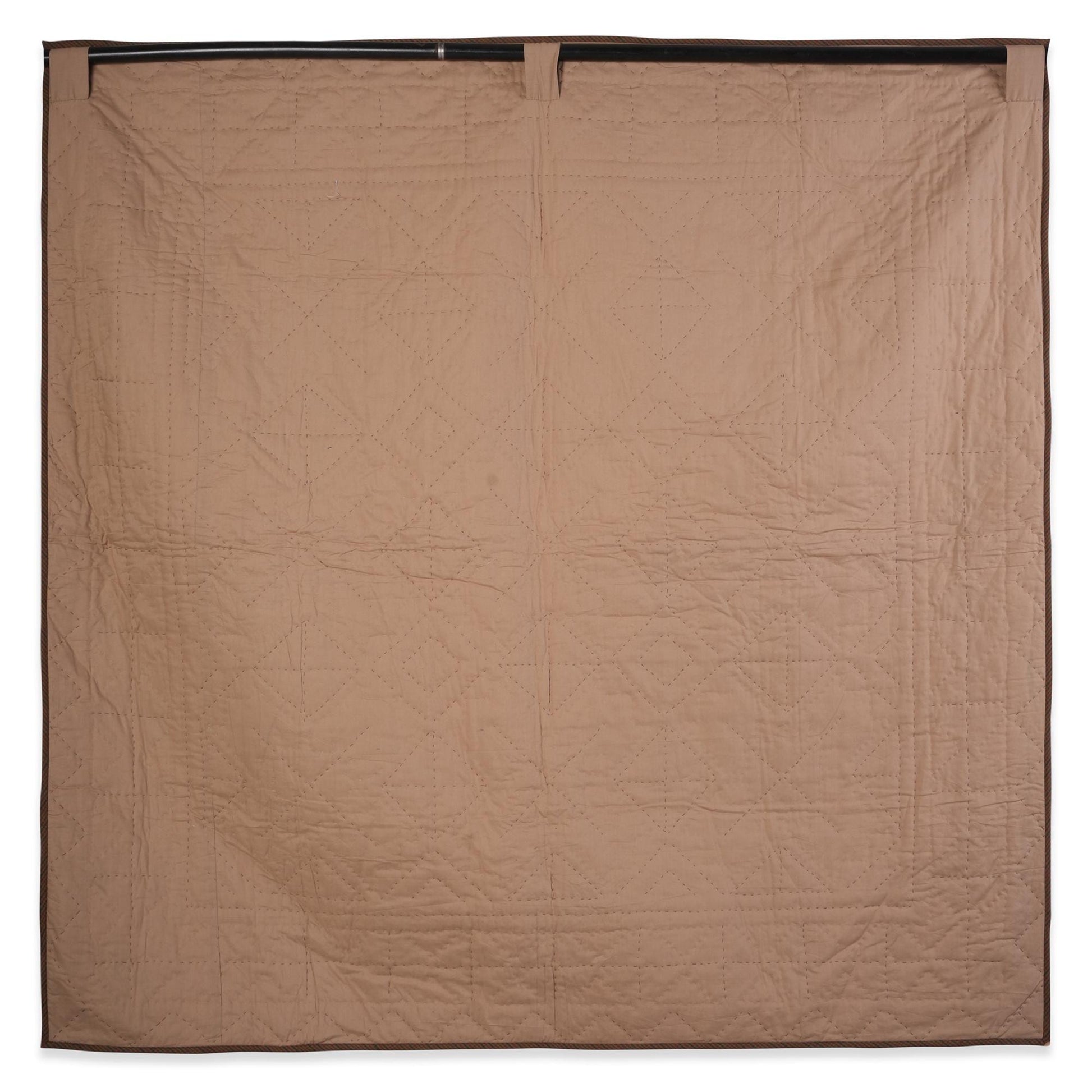 Reverse side is solid khaki and hand quilting is nicely visible.