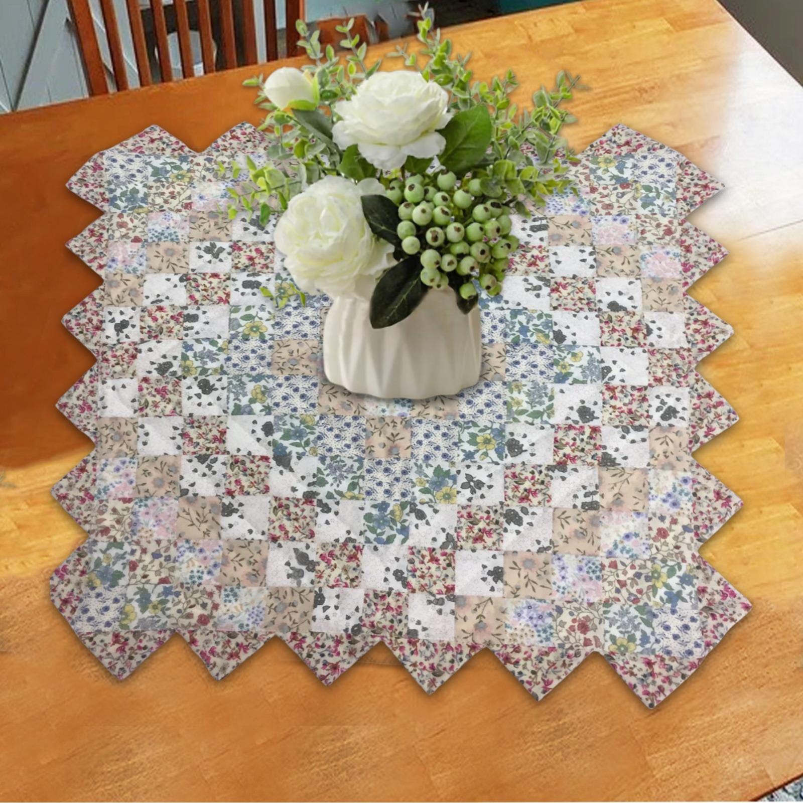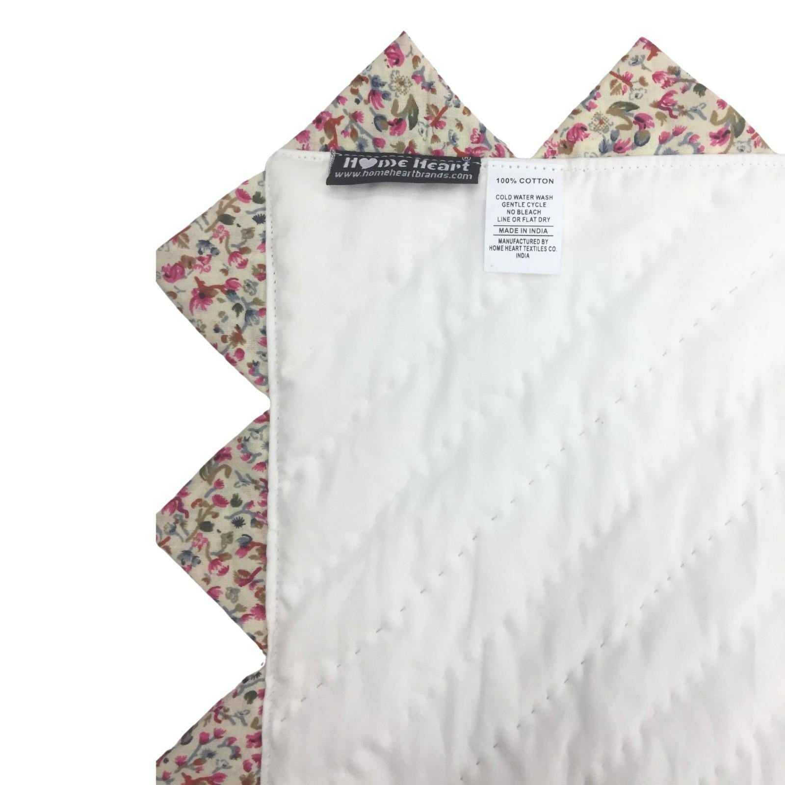 Hand made Hand quilted Block Quilt, Table Topper, Throw quilt calico floral cotton square zig zag quilt by Home Heart brands (Made in India)