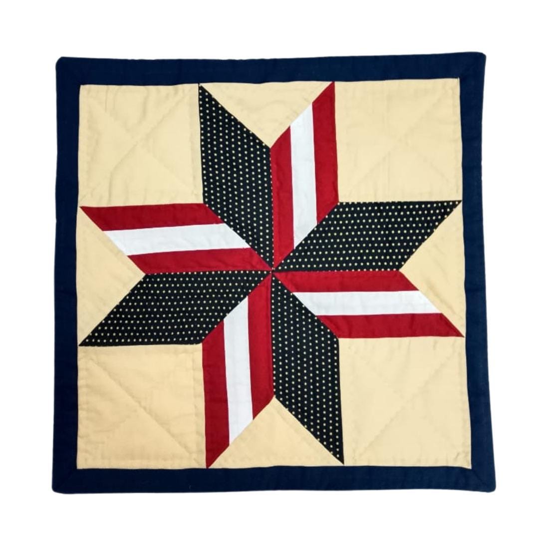 Hand made hand Quilted patchwork pillow cover, cushion cover, calico Americana Starburst pillow cover by HOME HEART Brands(made in India)
