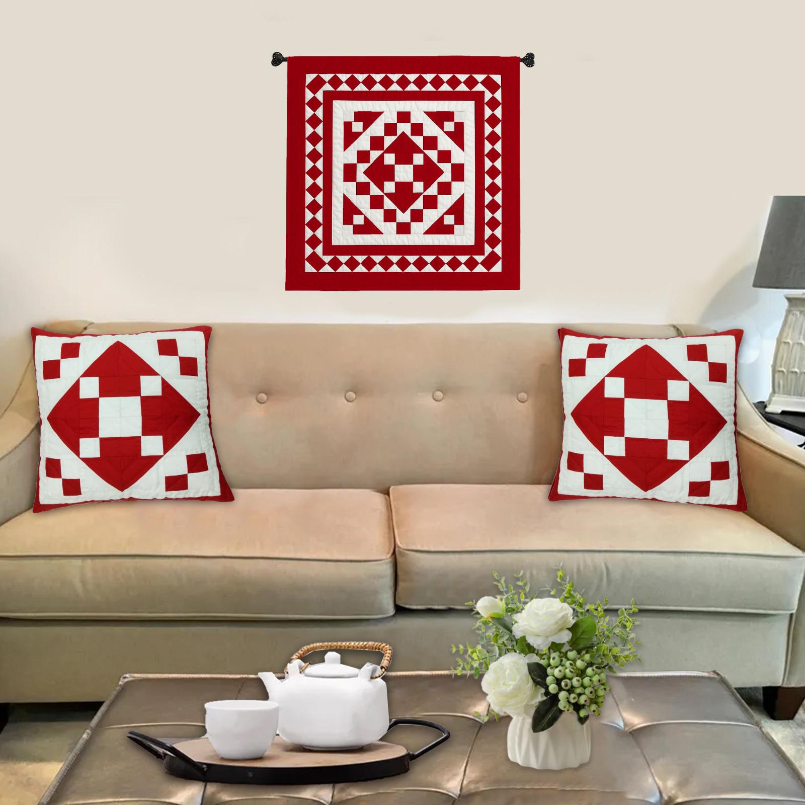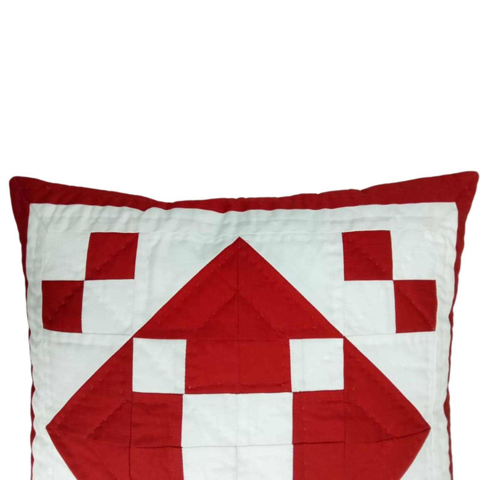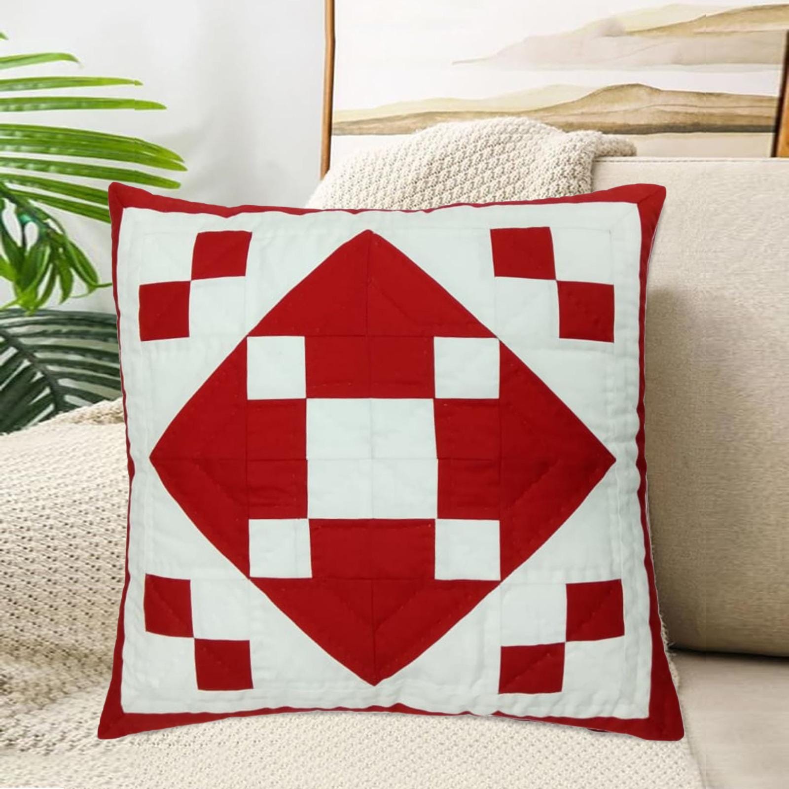 Hand made hand Quilted patchwork pillow cover, cushion cover, throw pillow cover Calico red off-white by HOME HEART Brands(made in India)