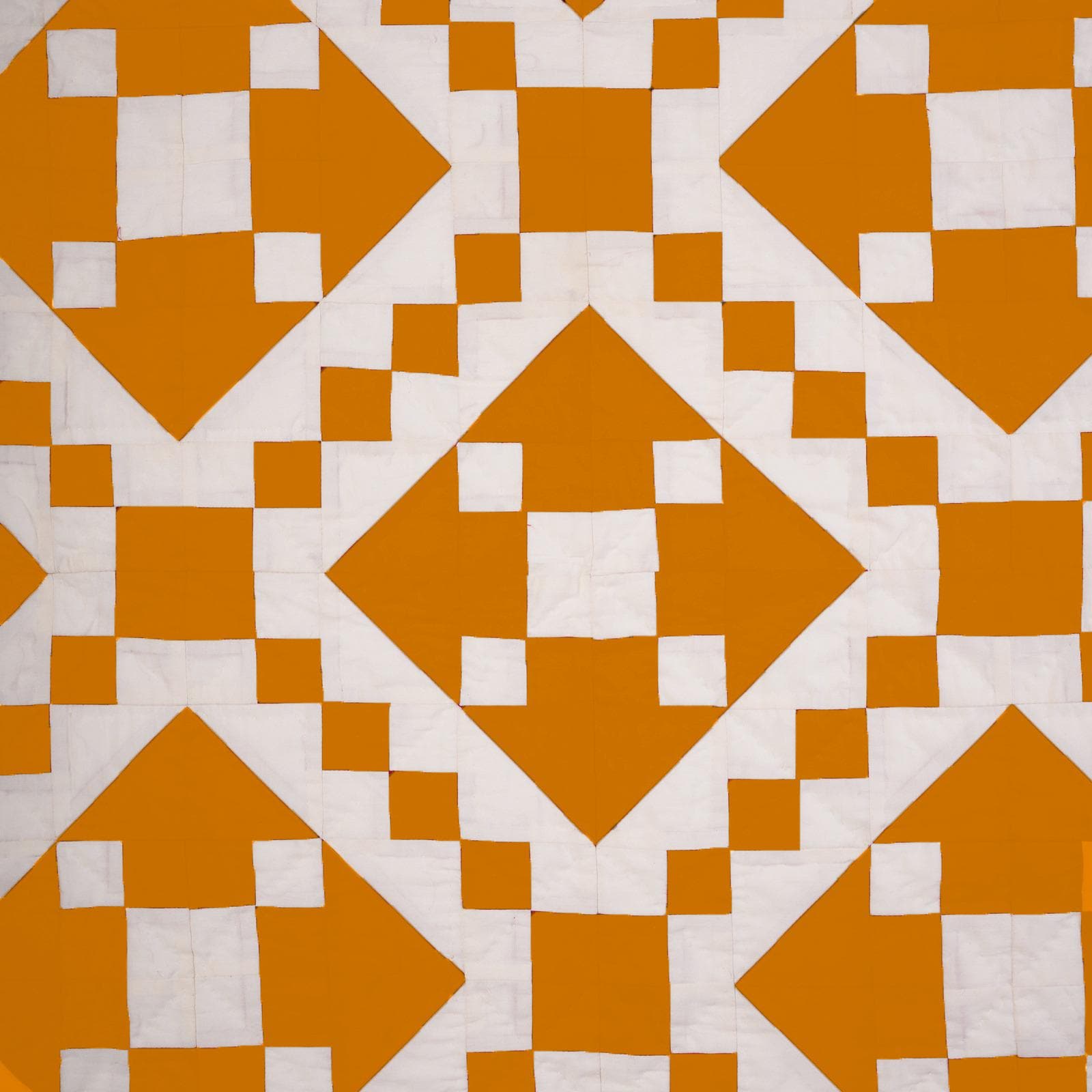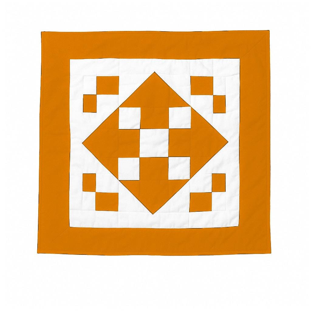 Crafted from a beautiful Patchwork of Fall orange and Off-White Calico Cotton fabric, this quilt showcases a classic Diamond and Square design.