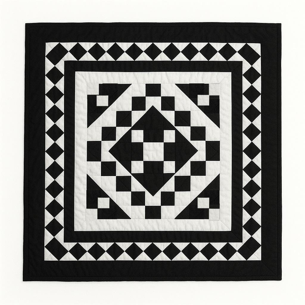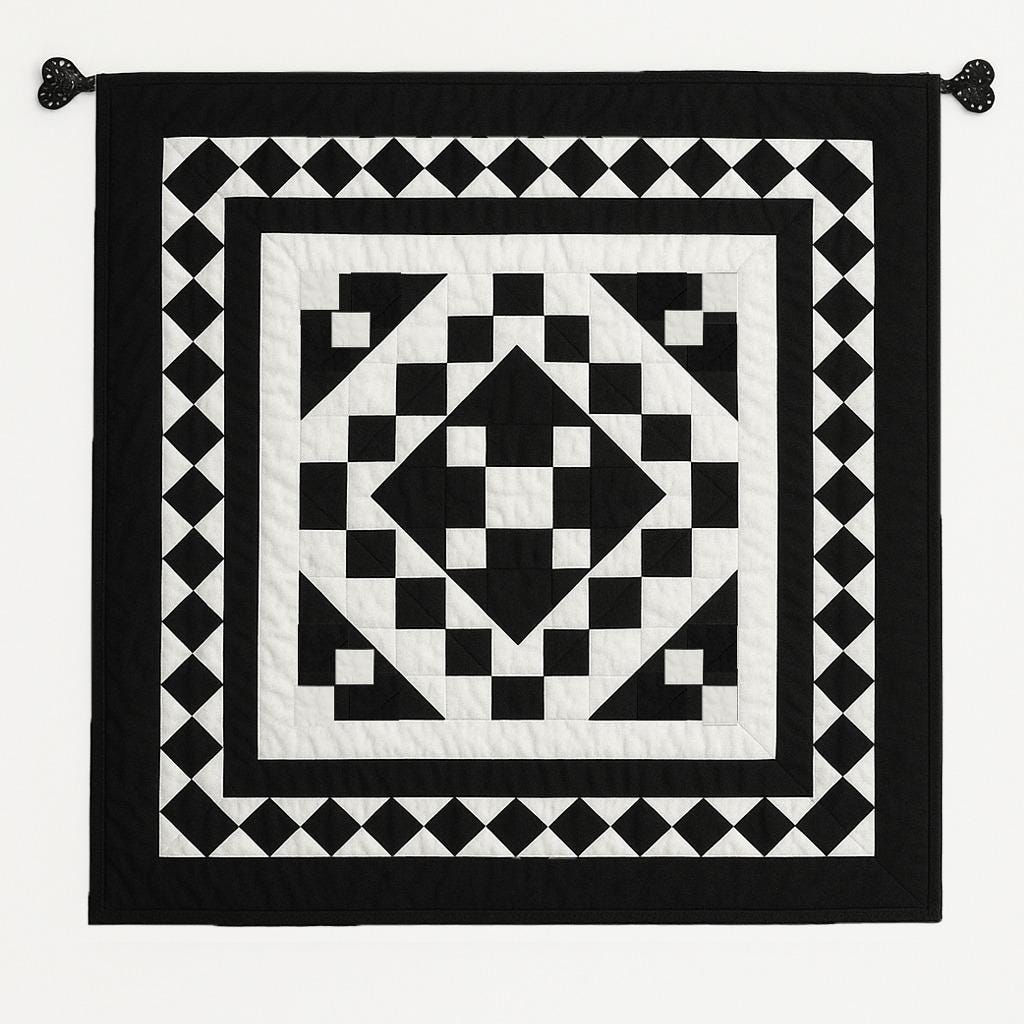Hand made hand quilted quilt, table accent piece, Table topper Black Diamond square quilt 100% Cotton Heirloom Quality by HOME HEART Brands