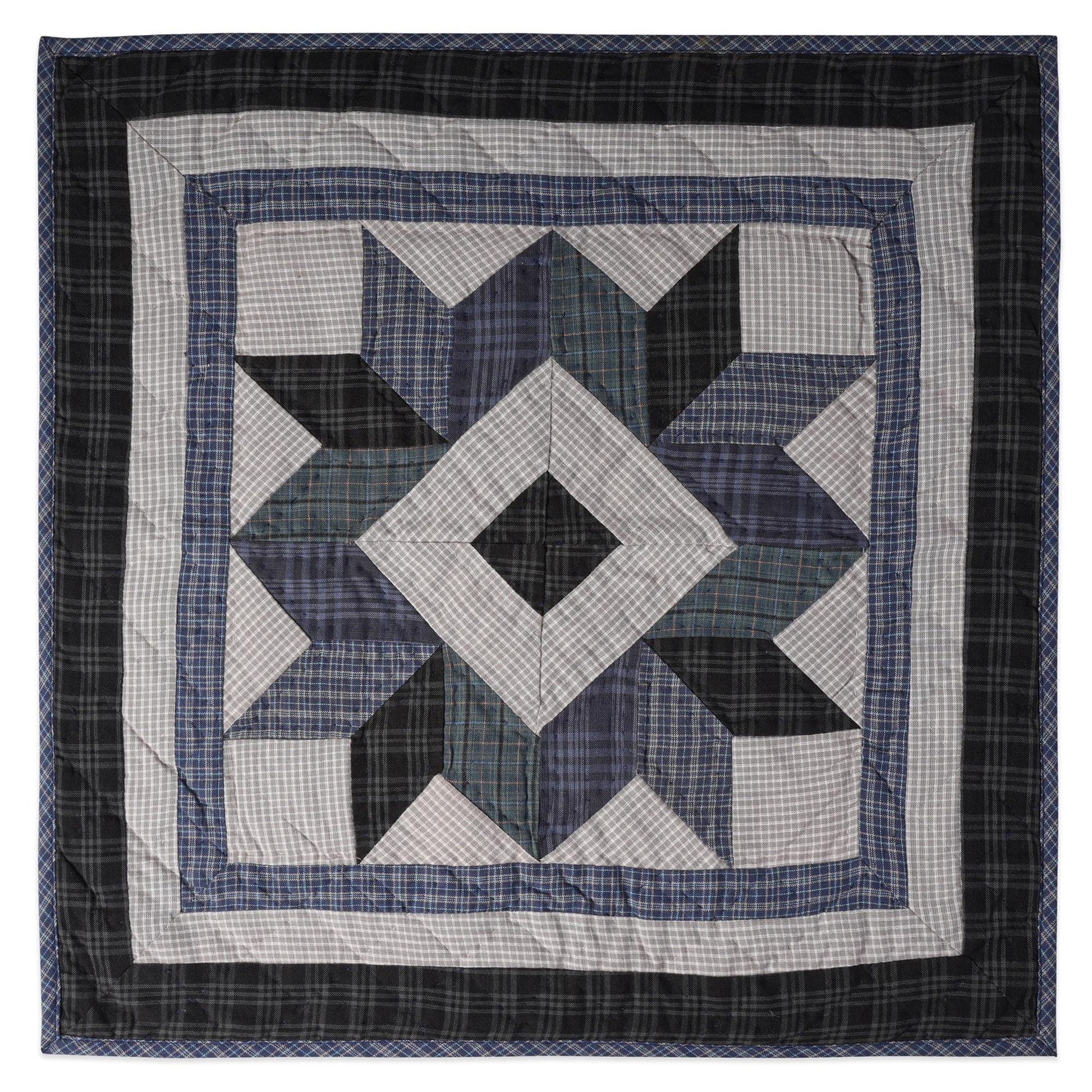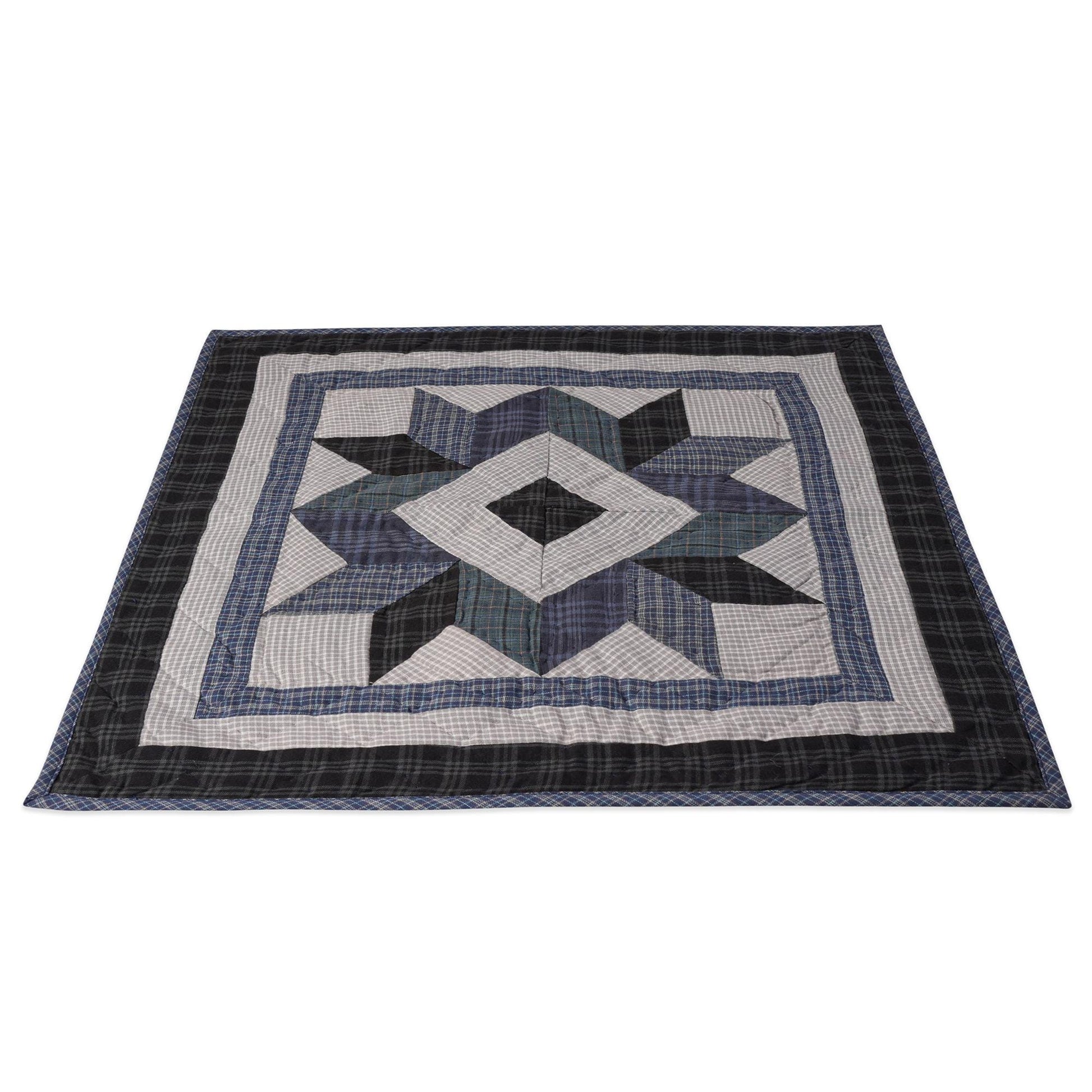 Hand made Hand quilted Throw Quilt, Table Topper 20"x20" Broken star blue plaid quilt by Home Heart brands (Made in India)