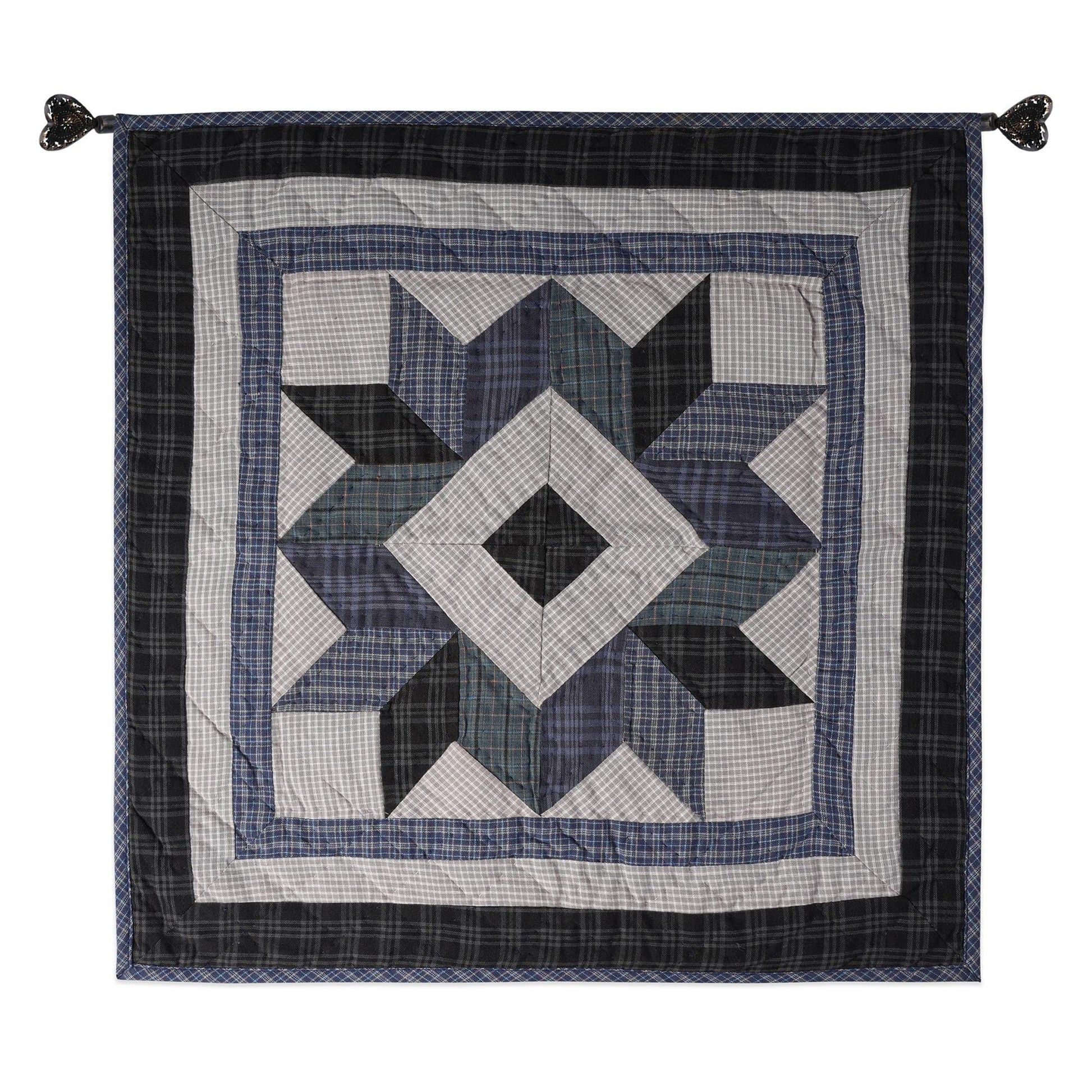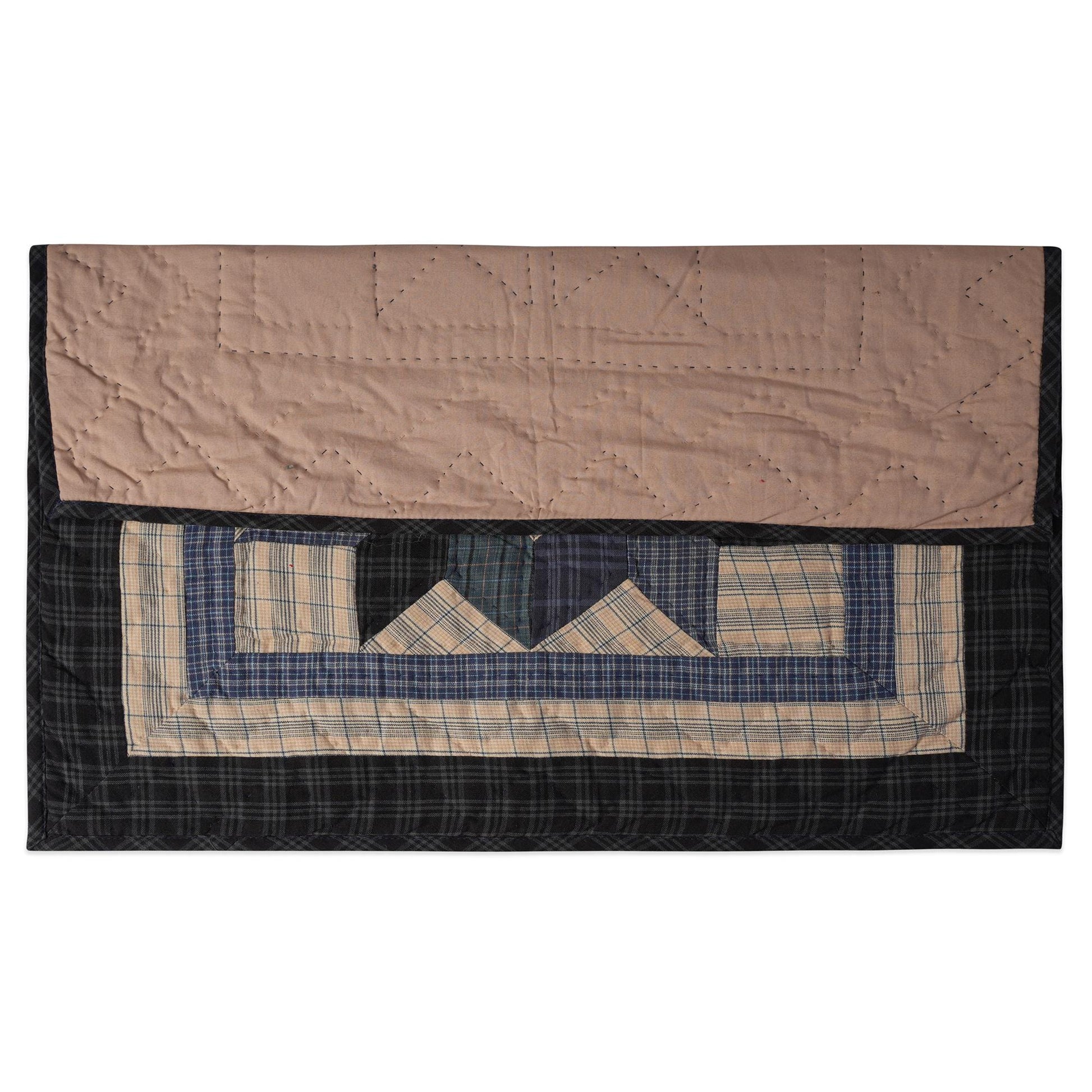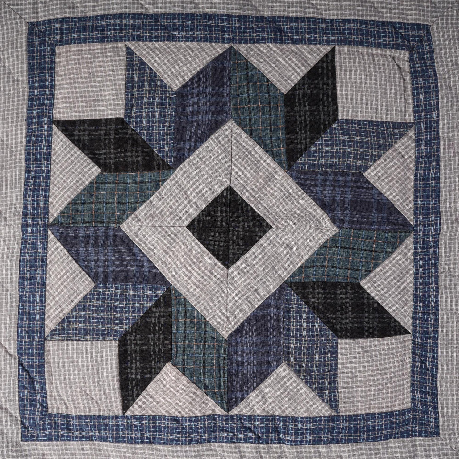 MATERIAL:100% high quality cotton fabric with blue plaid cotton creating broken star hand made quilt. Have small patches and pieced together tightly to last after years of use. Padded with cotton layer for extensively quality hand quilting for durability. Reverse side is solid khaki.