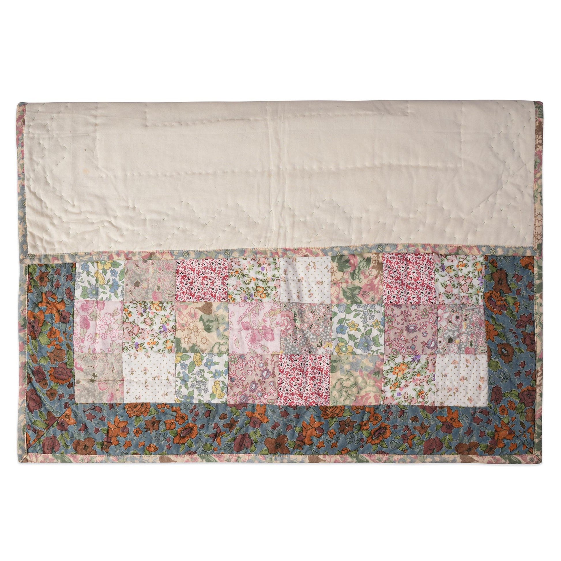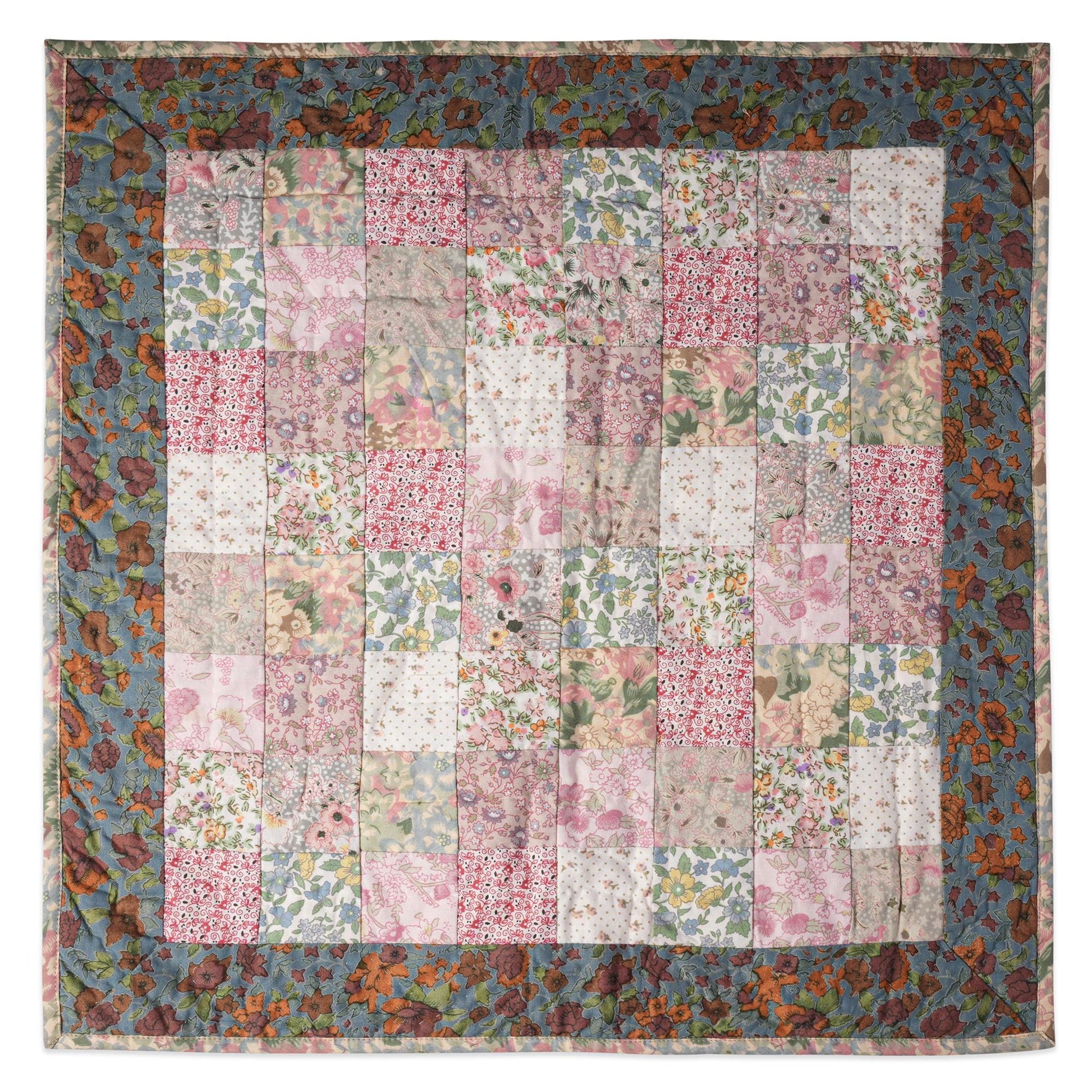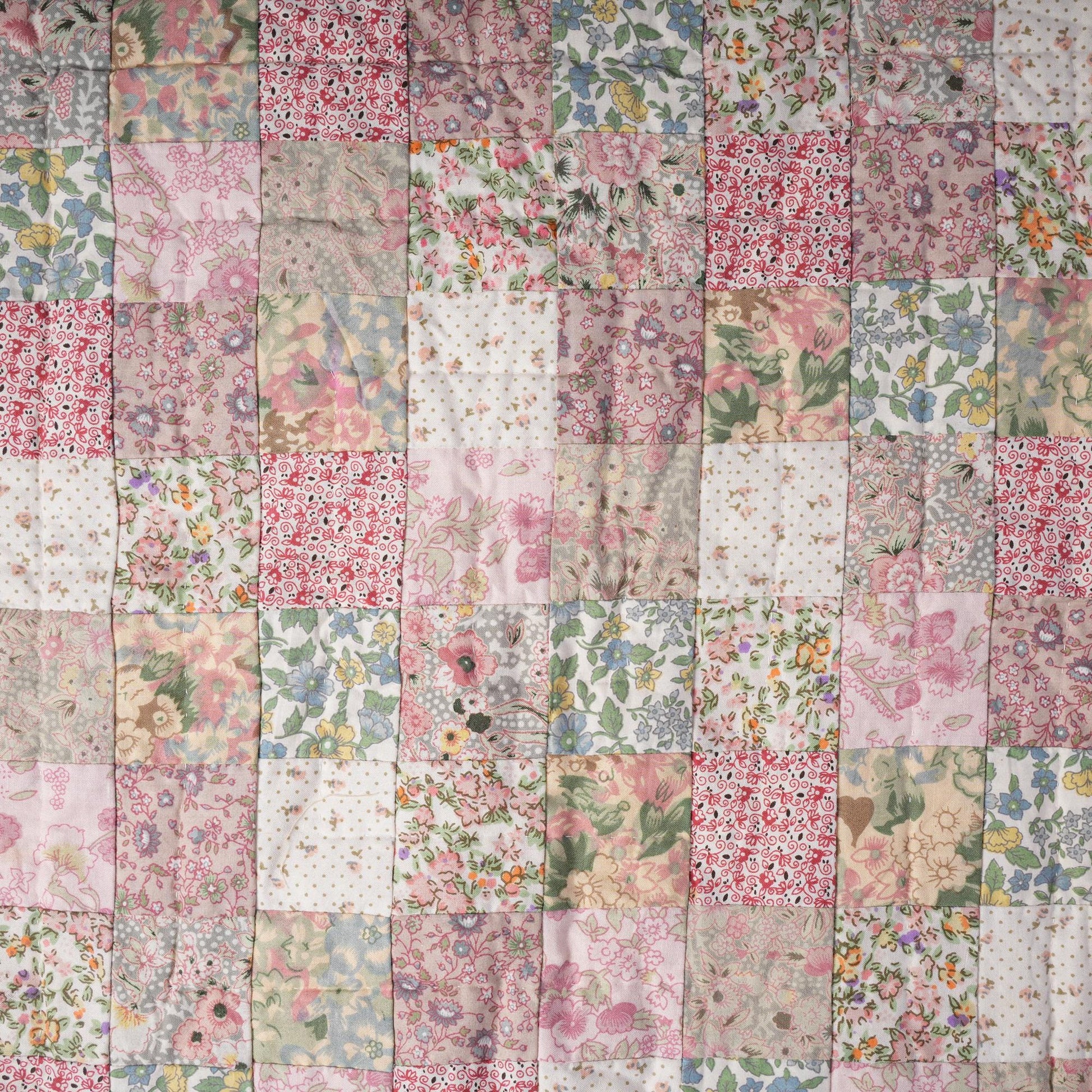 MATERIAL:100% high quality cotton fabric with Pink, green, red & offwhite calico floral cotton creating floral square hand made quilt. Have small patches and pieced together tightly to last after years of use. Padded with cotton layer for extensively quality hand quilting for durability. Reverse side is solid offwhite.