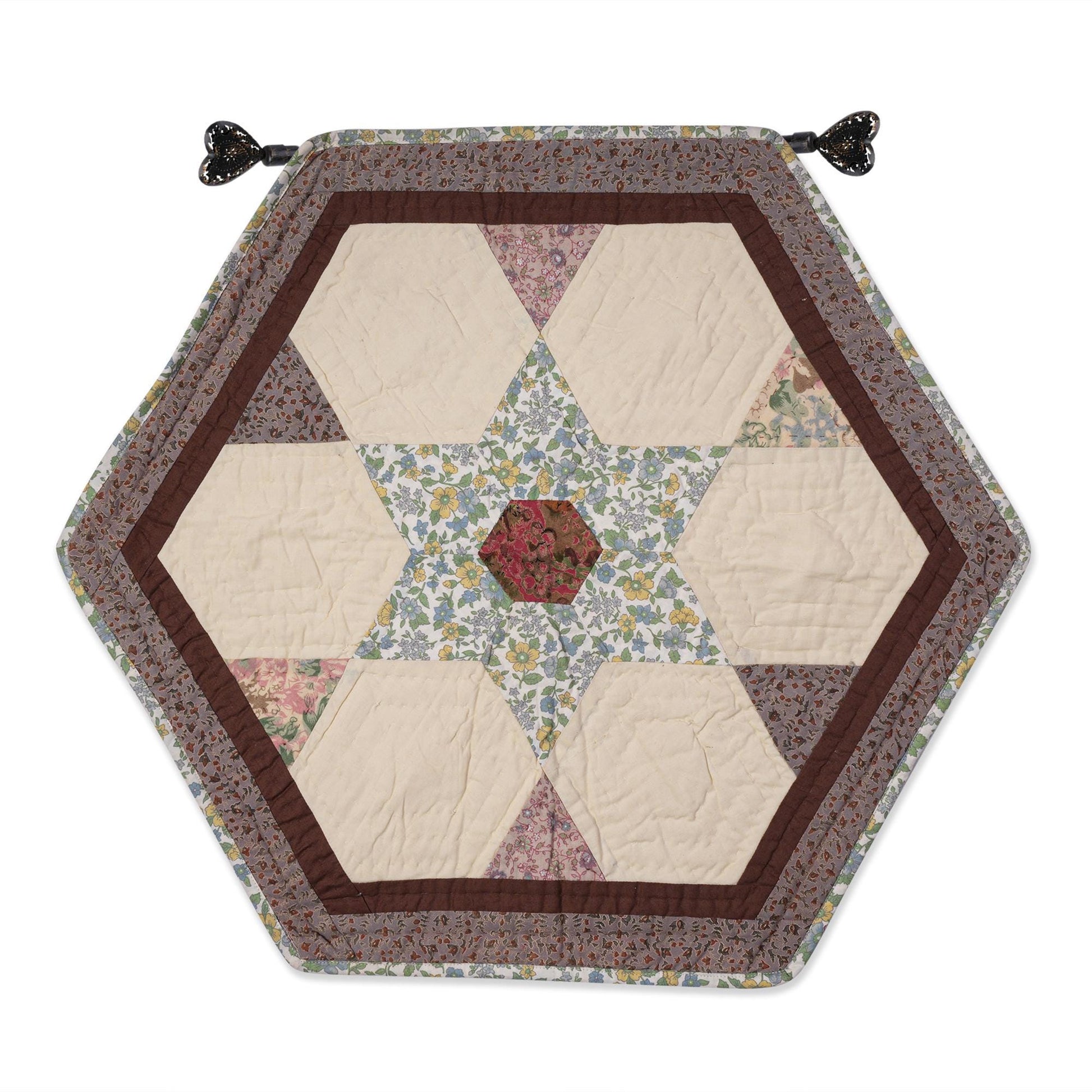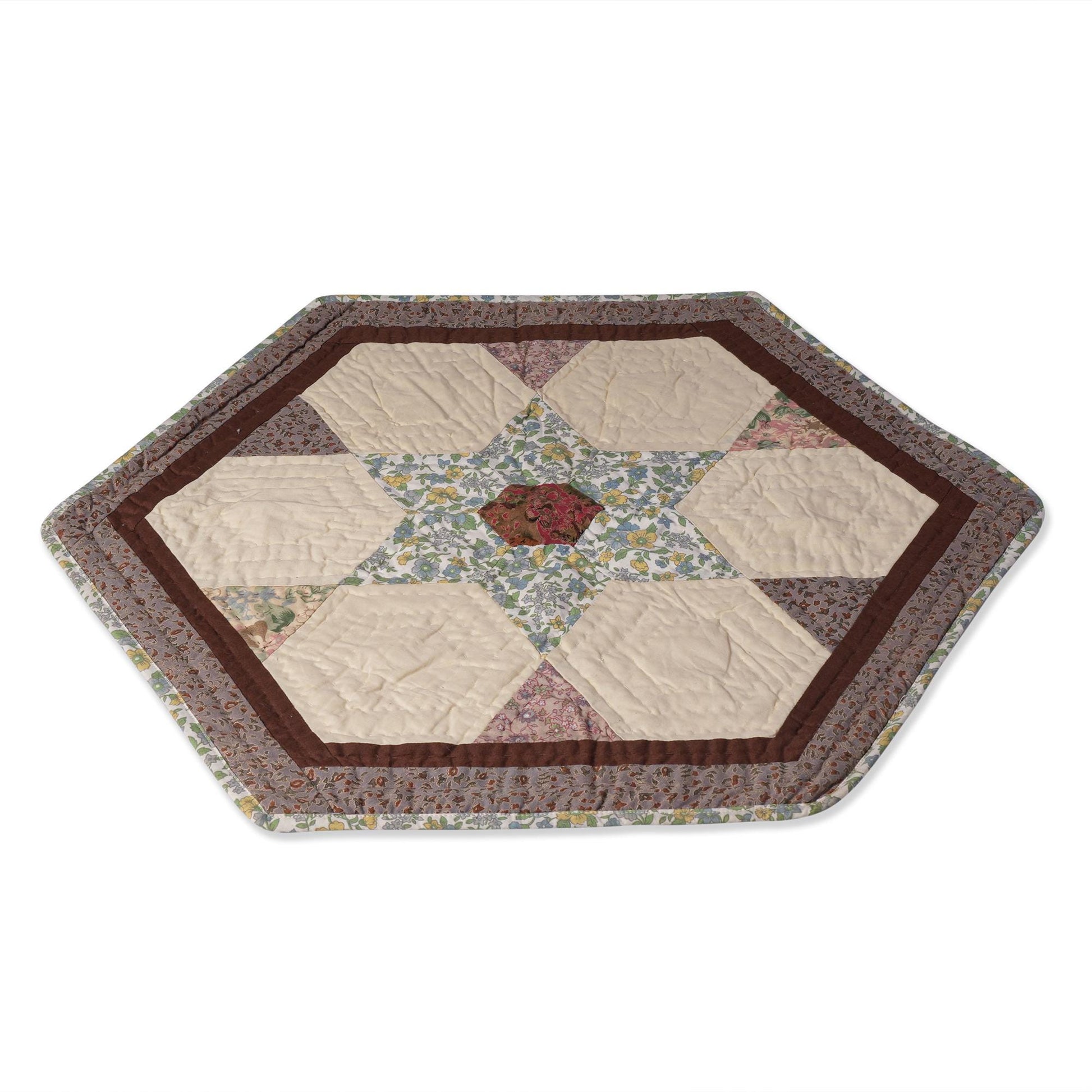 Hand made Hand quilted Throw Quilt, Table Topper 20"x20" hexagon star quilt by Home Heart brands (Made in India)