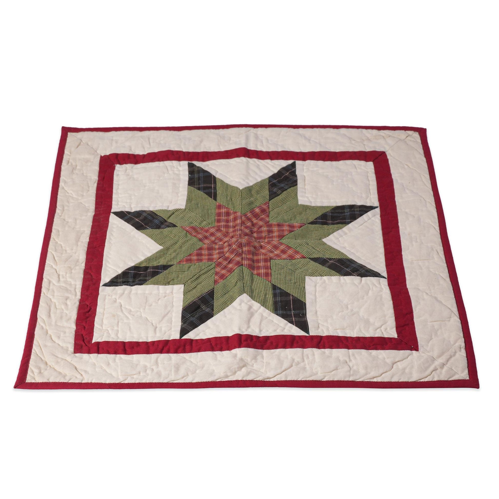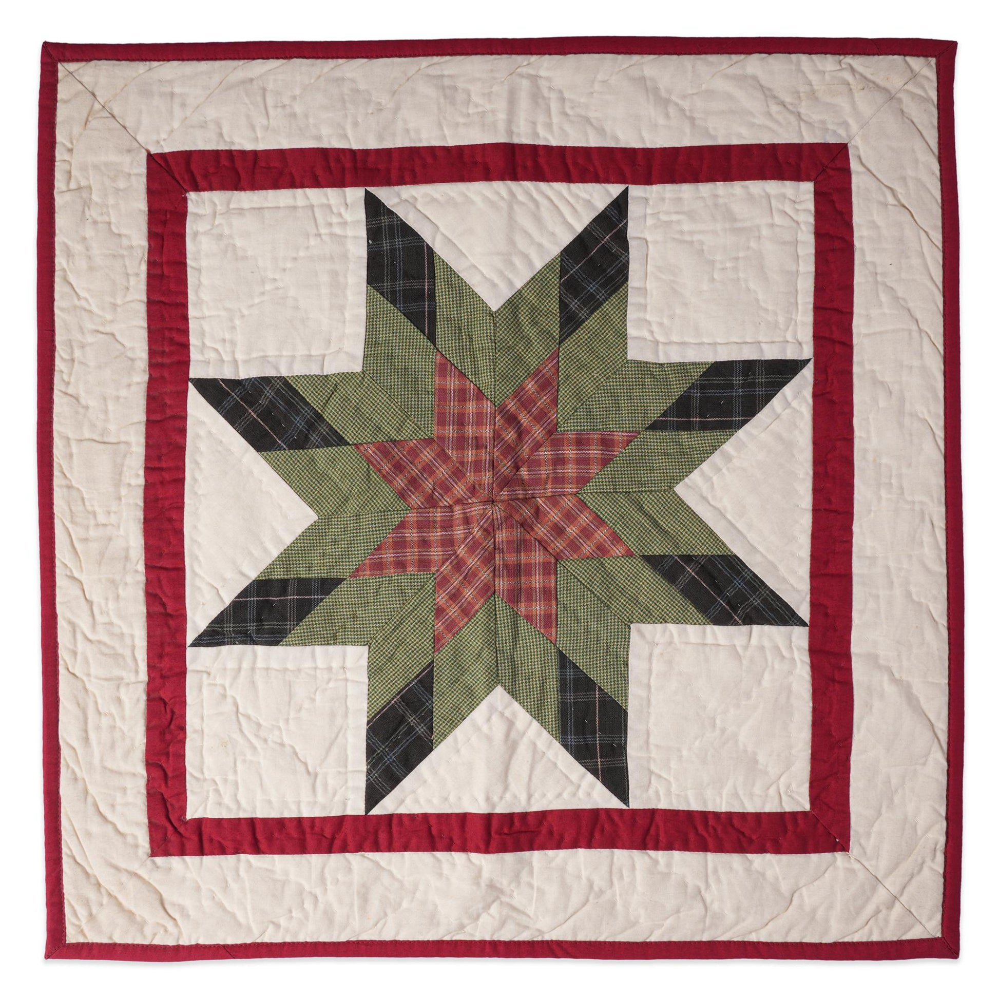 Hand made Hand quilted Throw Quilt, Table Topper 20"x20" Lone Star red green plaid calico quilt by Home Heart brands (Made in India)