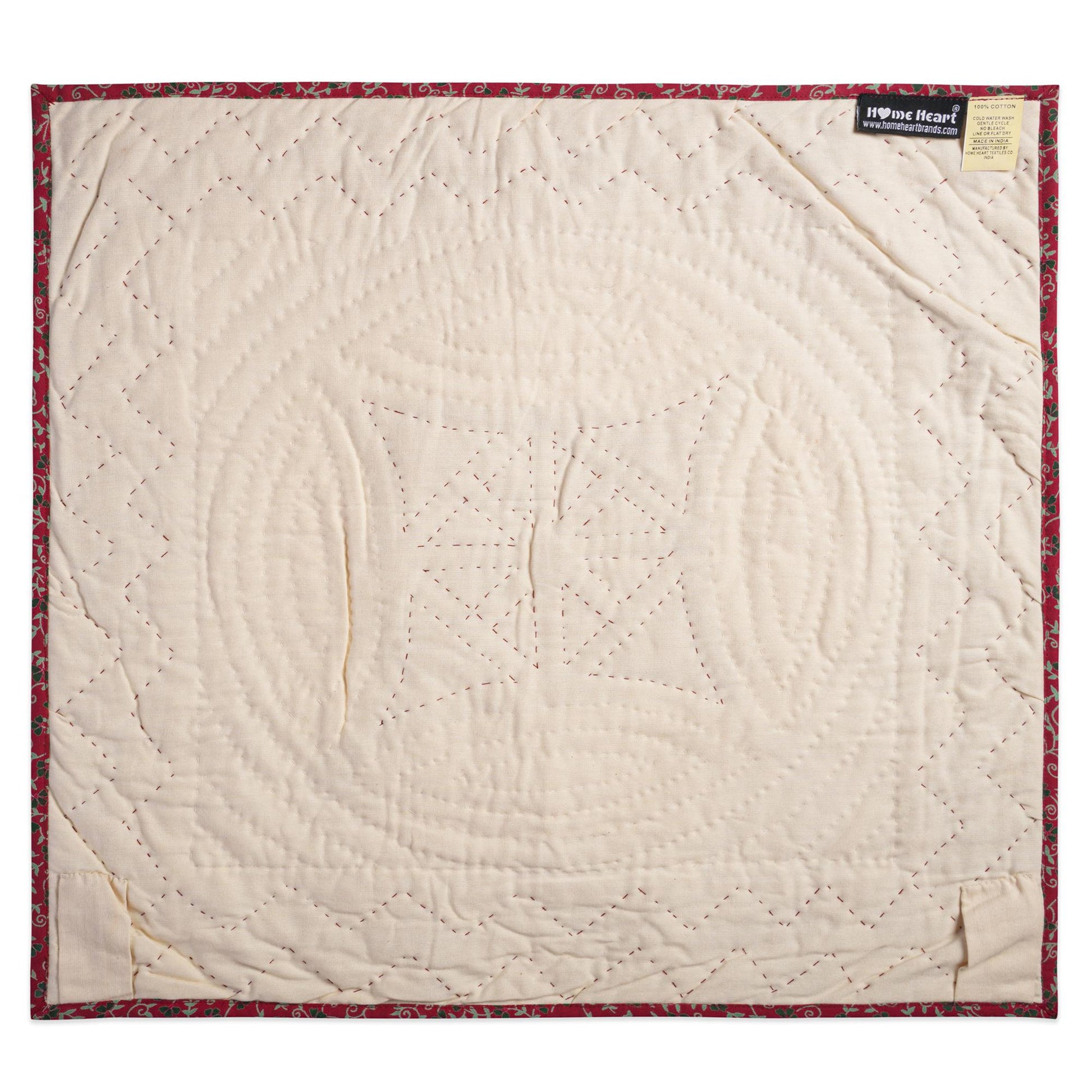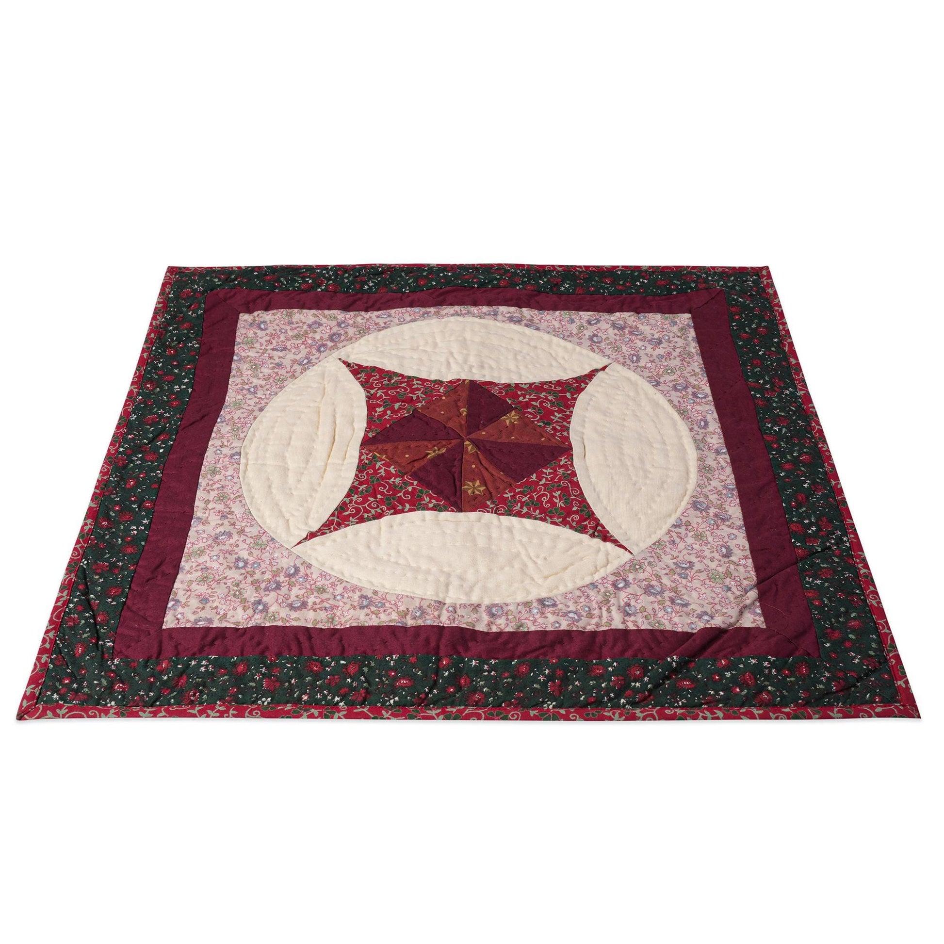 Hand made Hand quilted Throw Quilt, Table Topper 20"x20" Pinwheel red green calico quilt by Home Heart brands (Made in India)