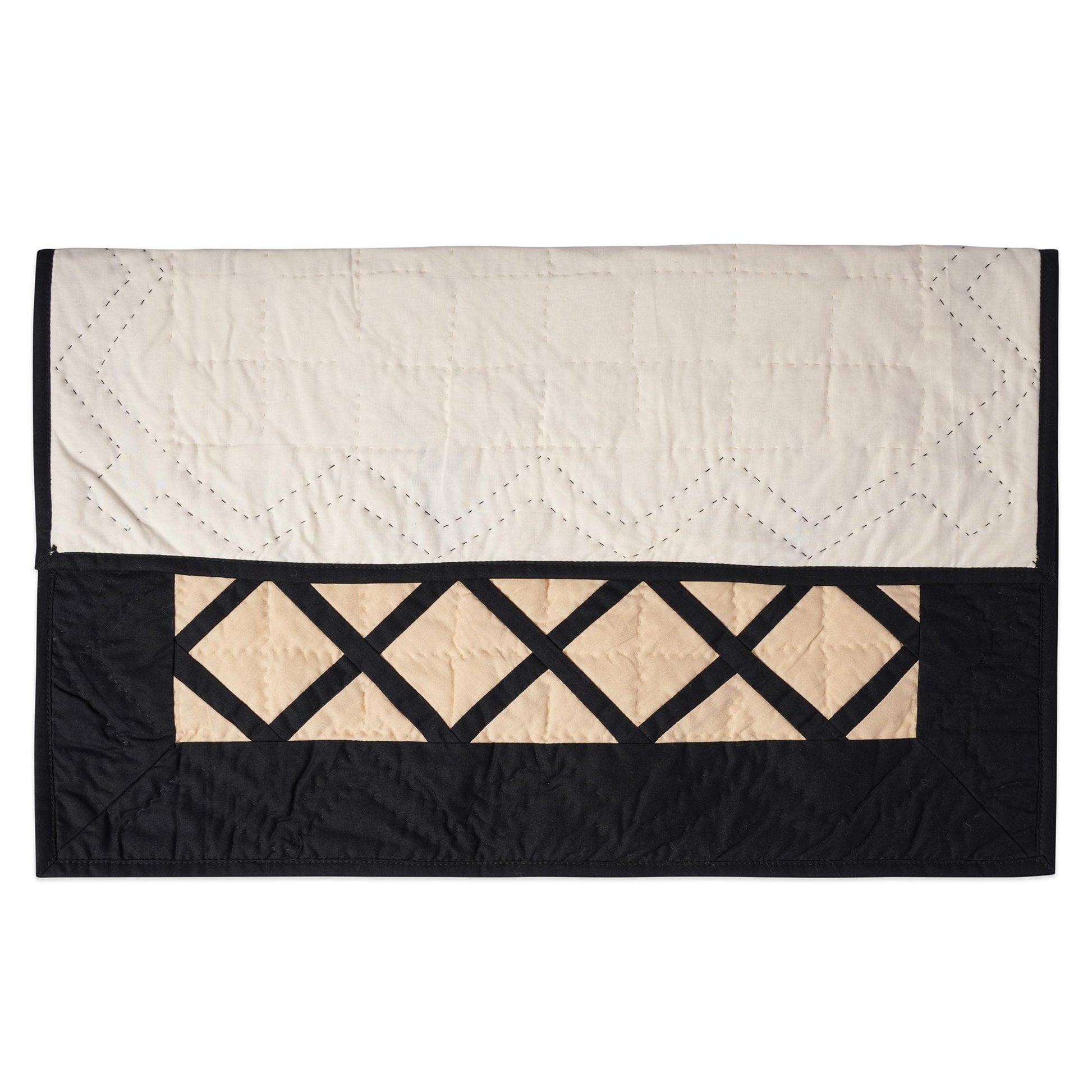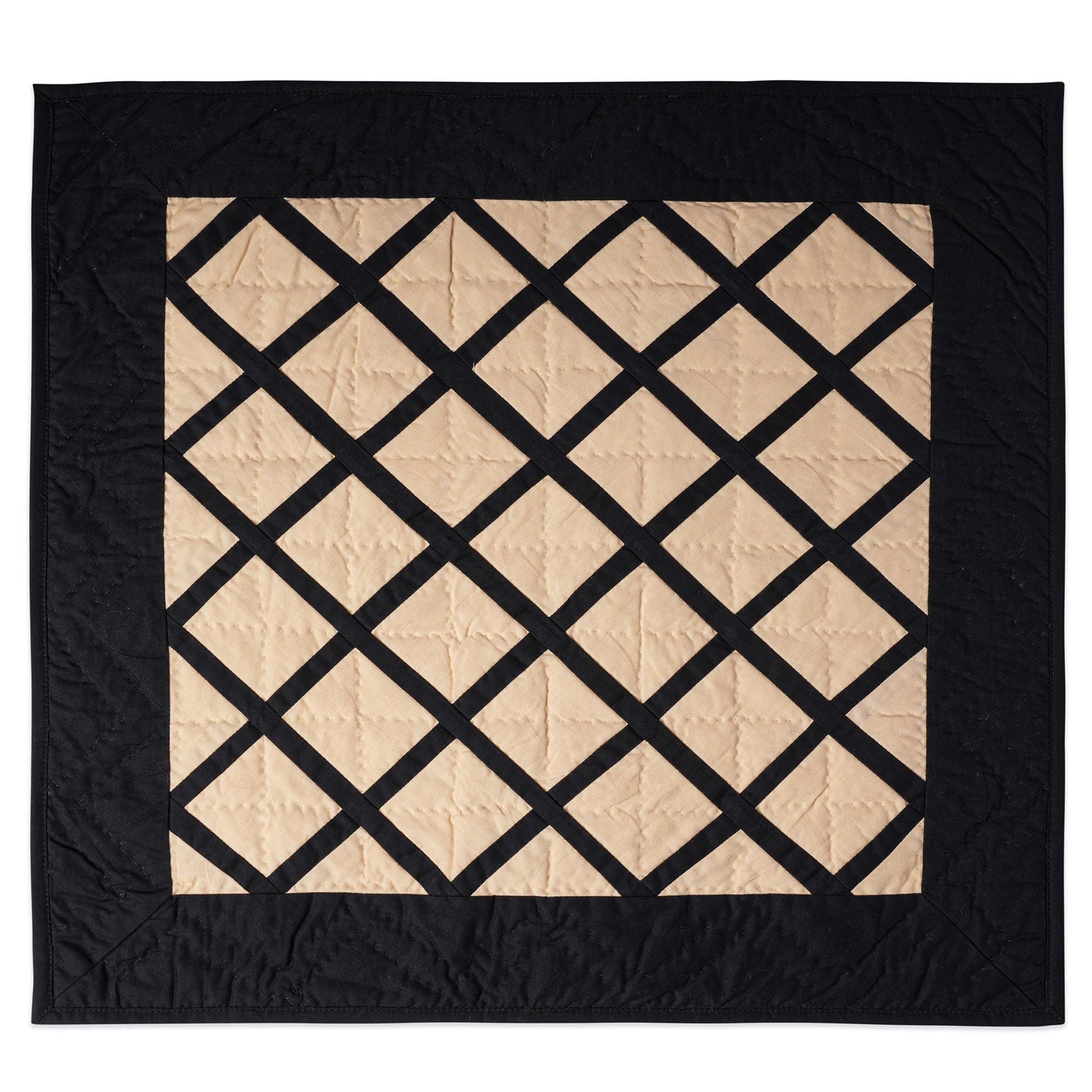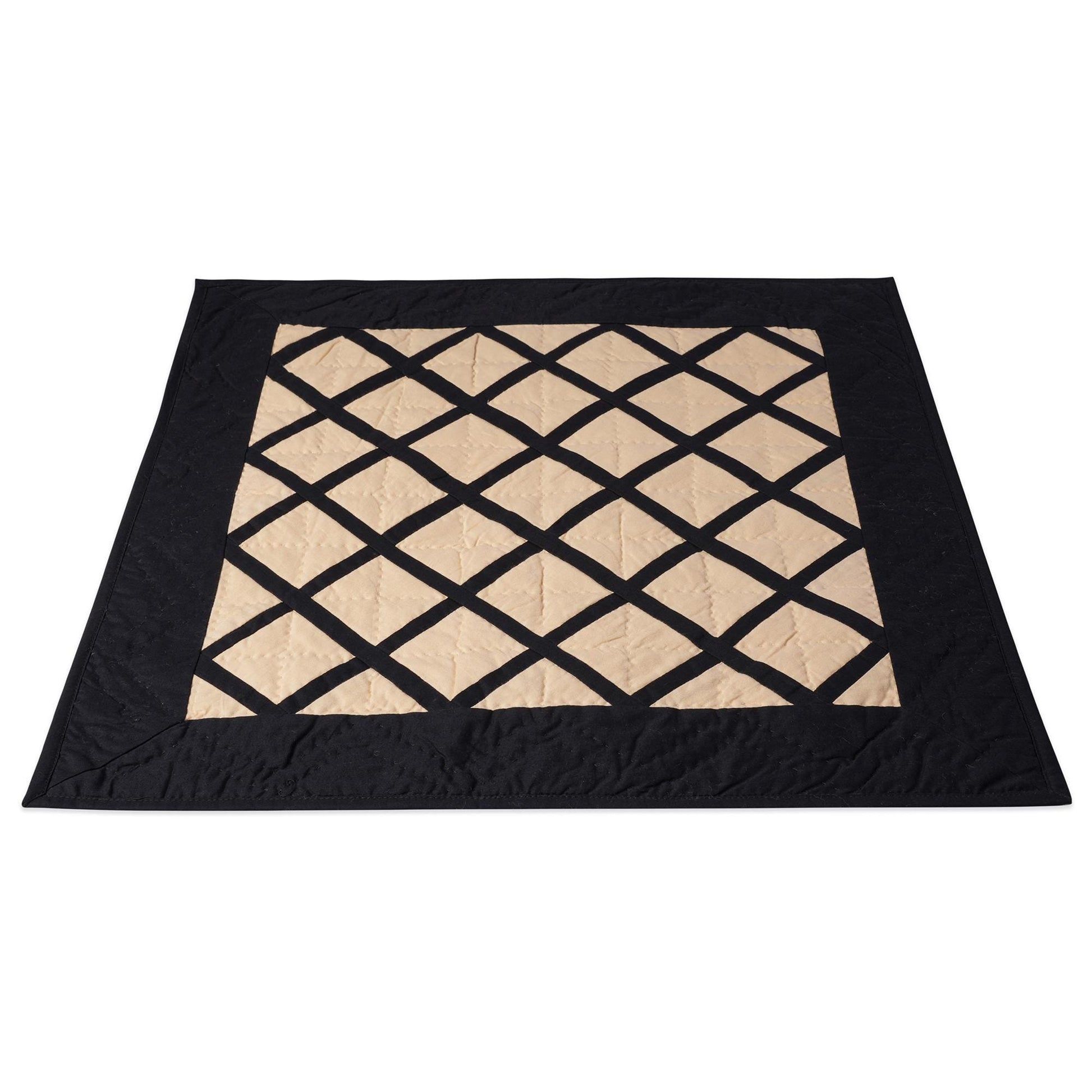 Hand made Hand quilted Throw Quilt, Table Topper Fishing net beige & black patchwork quilt by Home Heart brands (Made in India)